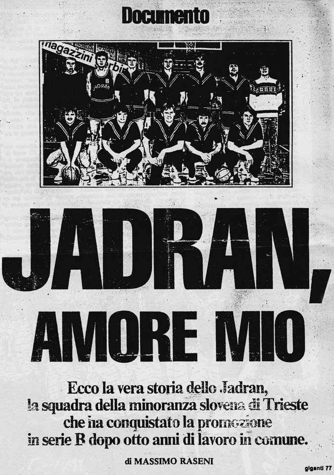 La data del 25 maggio 1985 rimarrà scolpita indelebilmente nella storia non solo del nostro basket, ma di tutto il nostro sport. In quel fatidico sabato al palazzetto di Chiarbola, gremito in ogni ordine di posti, lo Jadran sconfisse nella terza e decisiva partita dei play-off per l’accesso alla Serie B la Stefanel di Treviso. I festeggiamenti dei 5000 spettatori ed appassionati toccarono vette mai raggiunte prima (nè dopo) nella storia del nostro sport.