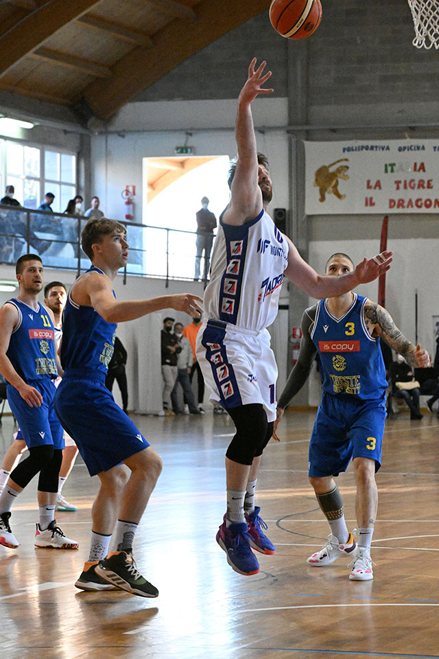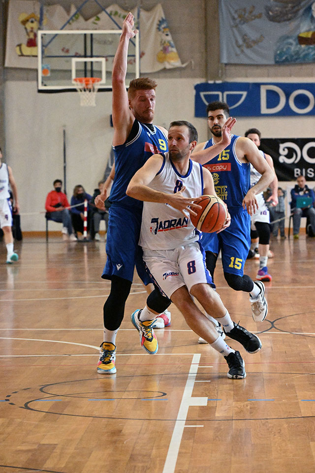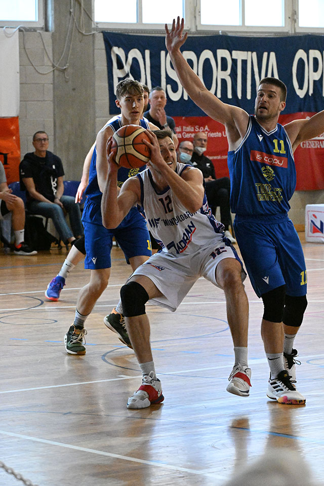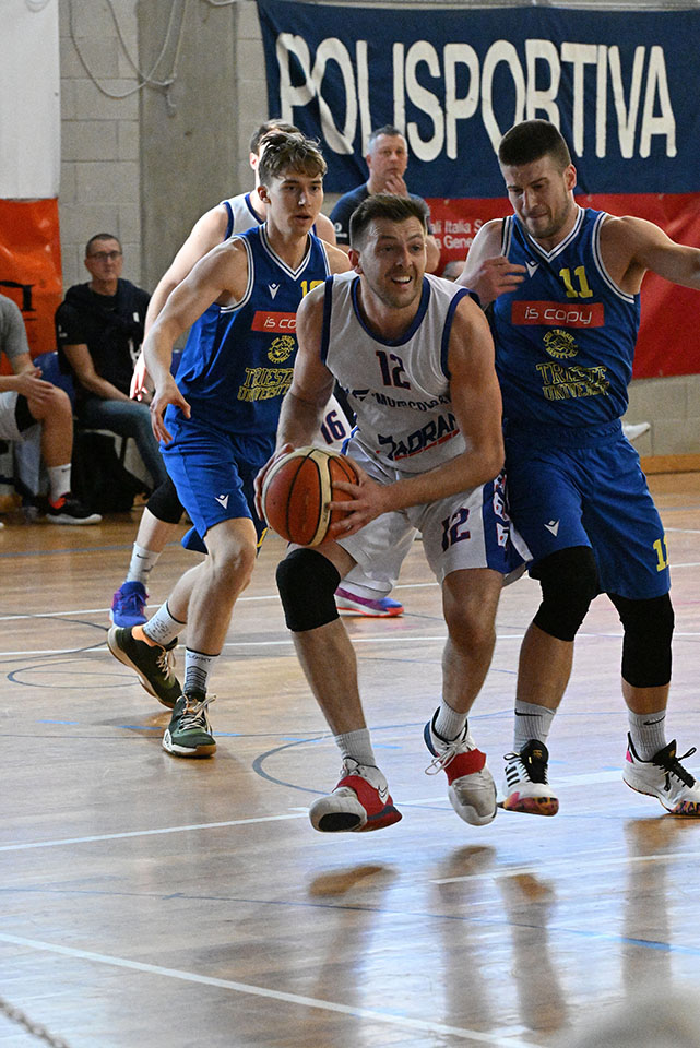 Nel derby cittadino a decidere è il terzo quarto di gioco. In quei dieci minuti l’ottima difesa dello Jadran (concessi agli ospiti solo sei punti!) ha consentito alla compagine di Oberdan di scavare un solco con gli avversari chiudendo il quarto con 16 punti di vantaggio (ma si eran otoccati anche i +25!). Da sottolineare la prestazione di tutti, ma in particolare di Matija Baticha, il play ha gestito ottimamente la squadra ed ha realizzato 15 punti. Lo Jadran sarà ora impegnato già mercoledì (ad Opicina alle 21.00) nel recupero contro il Mirano.