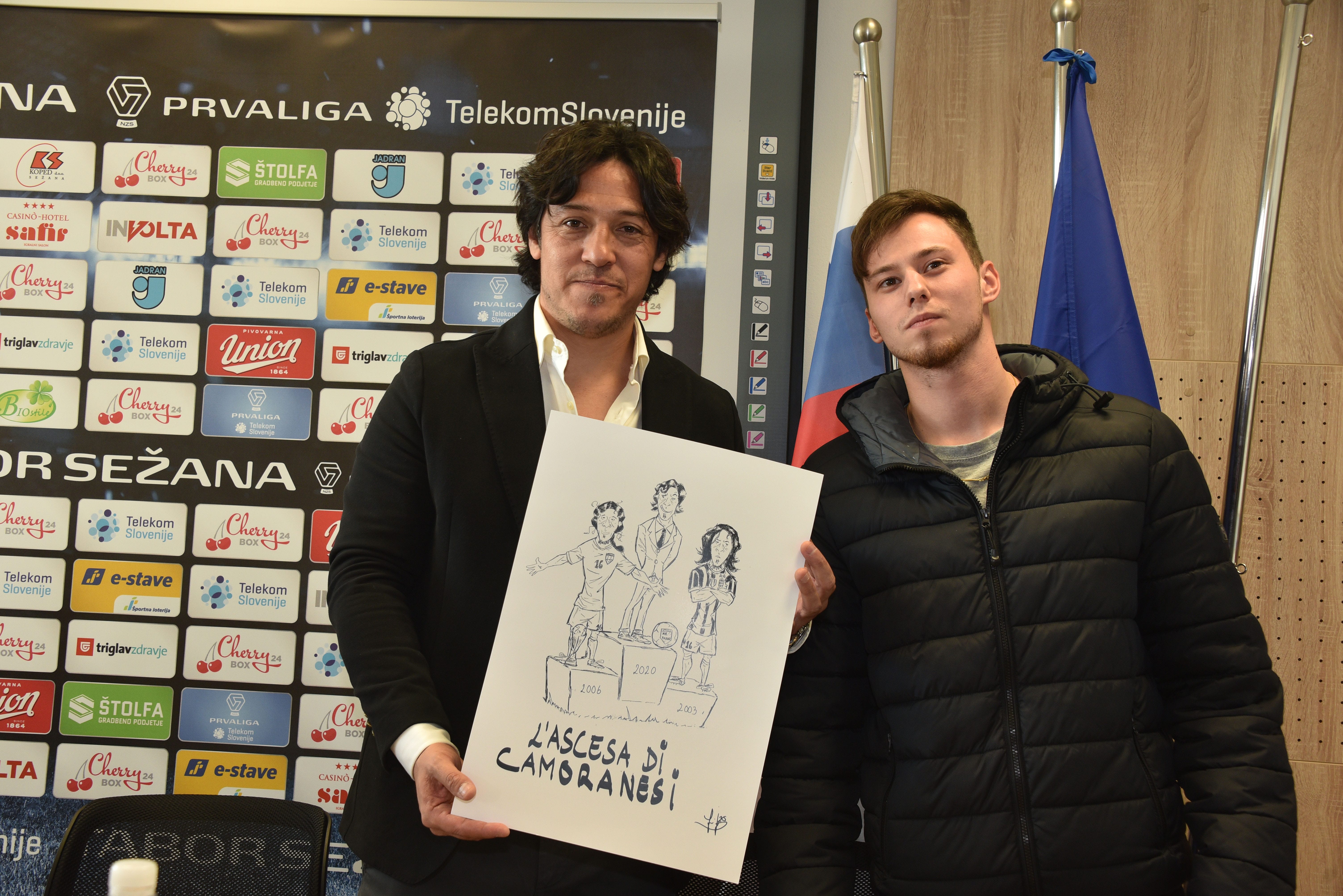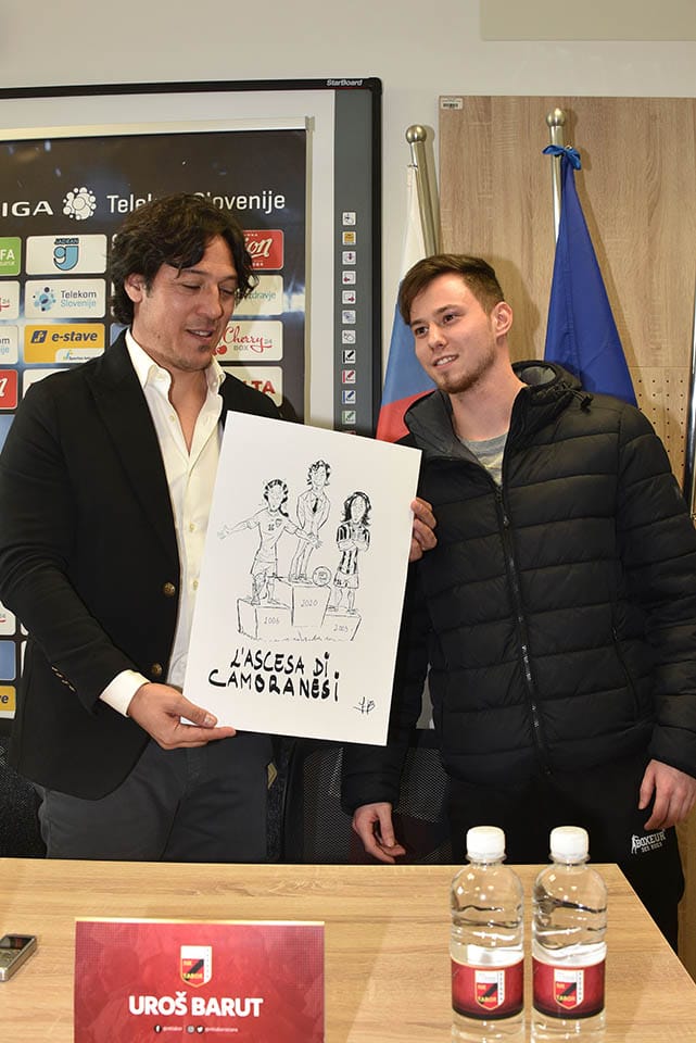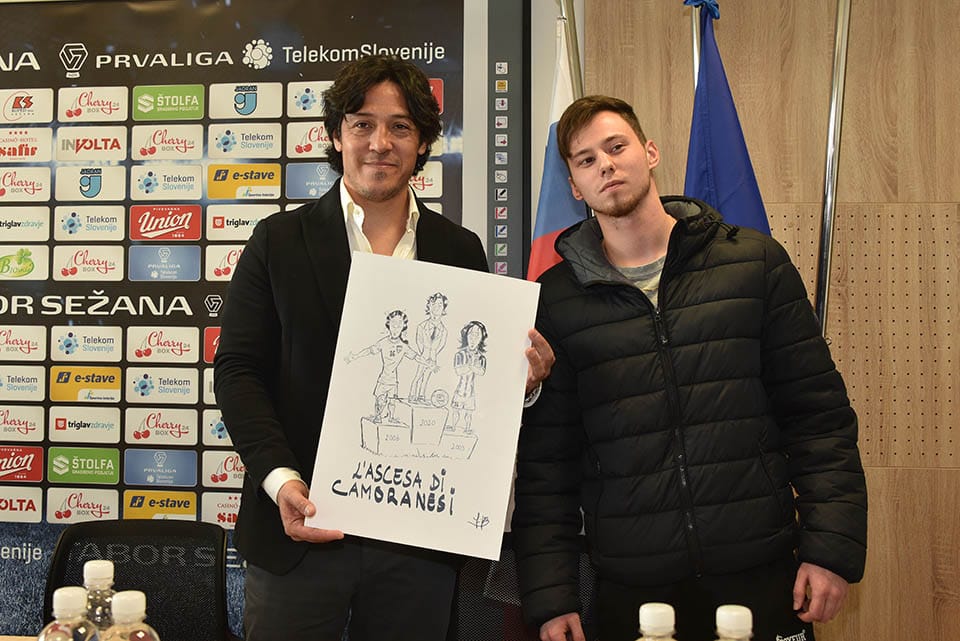 Nella foto di copertina: Camoranesi con il vignettista Jurij Devetak