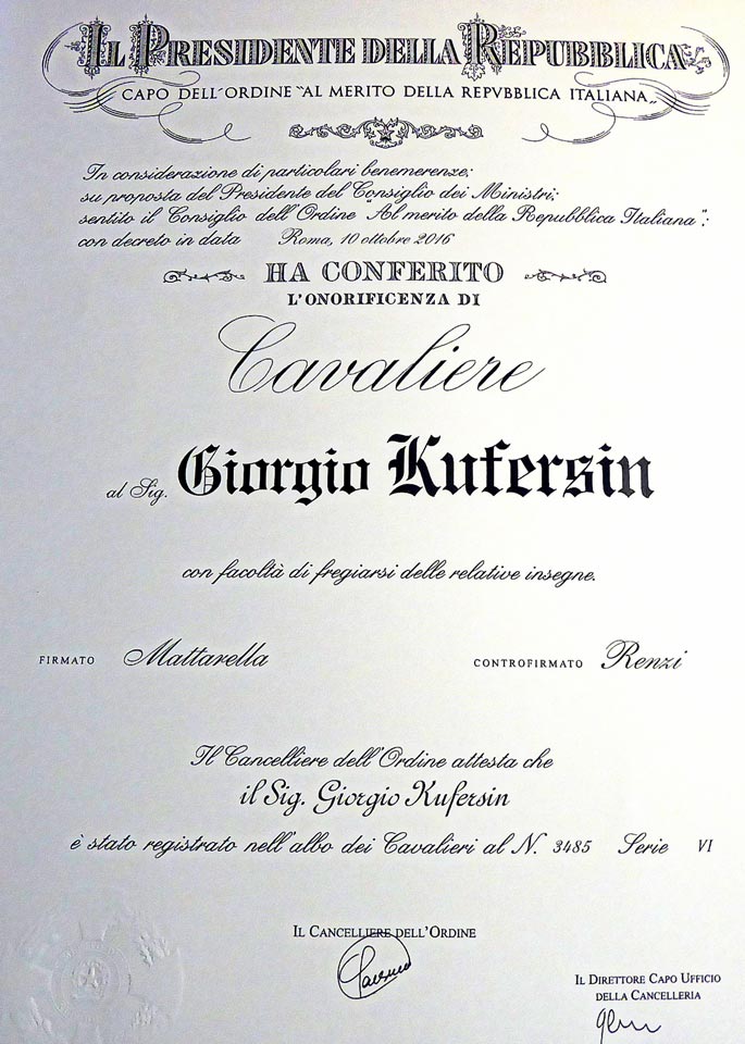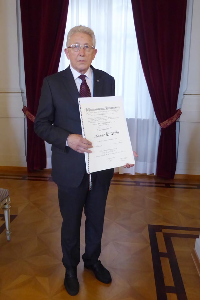 TRIESTE – Il nostro operatore sportivo (nato a Trieste il 14 luglio 1944) Jure Kufersin è stato insignito del titolo di Cavaliere Ordine al Merito della Repubblica Italiano. A consegnarli il riconoscimento è stato il prefetto di Trieste Annapaola Porzio, che ha così premiato il pluriennale lavoro svolto nel mondo dello sport di Kufersin, che è stato inoltre presidente dello ZSŠDI dal 1991 al 2013.
