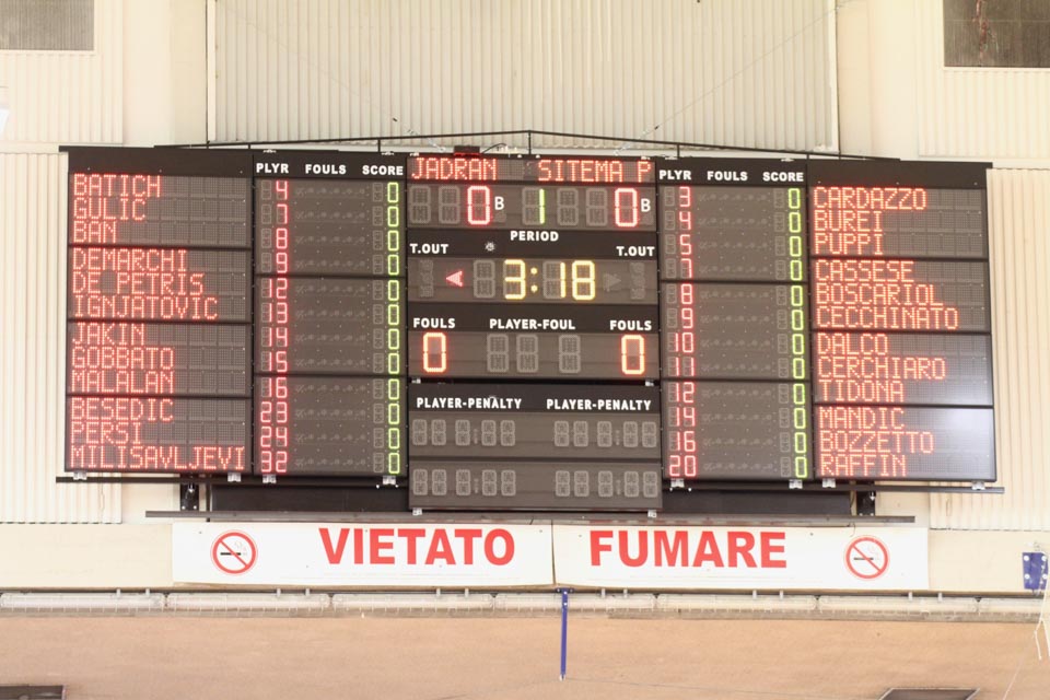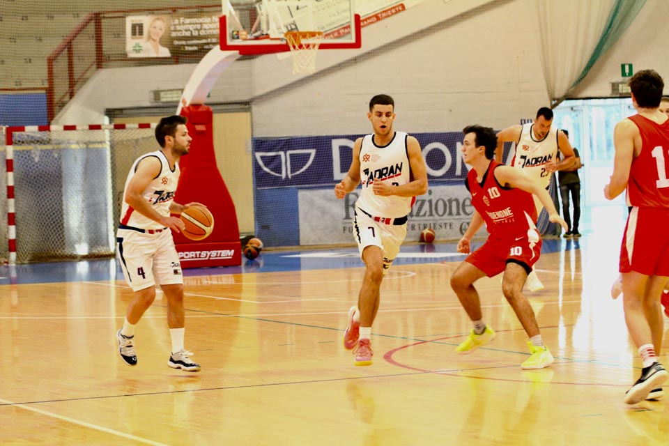 JADRAN: Batich 15 (1:1, 7:7, 0:3), Ban 18 (1:2, 4:7, 3:6), Demarchi 3 (1:1, 1:3, 0:3), Gulič 5 (-, 1:1, 1:2), De Petris 8 (2:2, 3:7, -), Ignjatović 5 (-, 1:2, 1:1), Jakin, Gobbato 0 (-, 0:1, 0:1), Malalan nv, Persi o (-, -, 0:1), Besedič 10 (1:2, 3:6, 1:7), Milisavljevic 4 (-, 2:2, 0:3); all. Bazzarini.