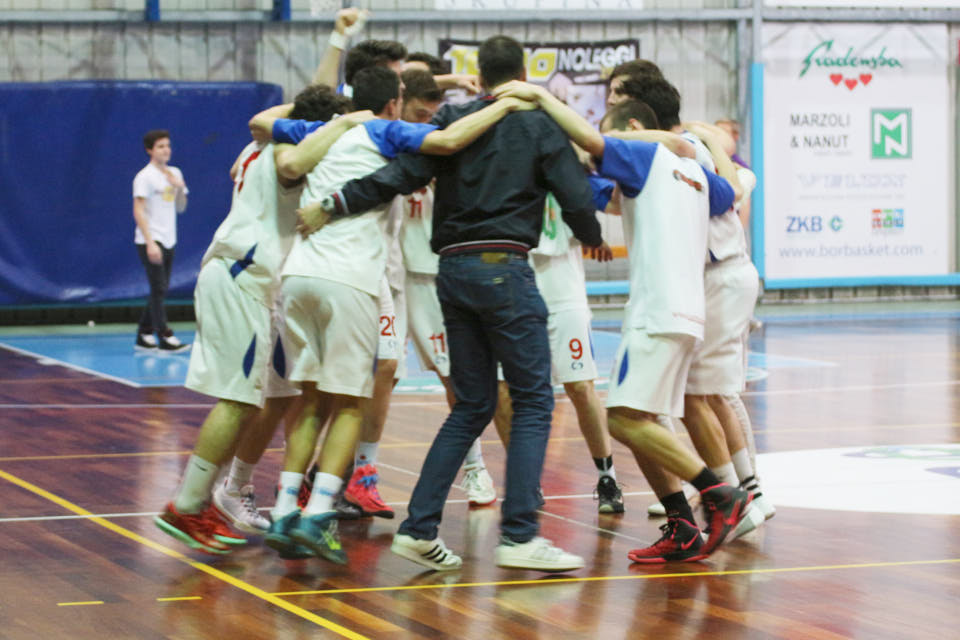 Contro gli udinesi, ormai certi del penultimo posto e proiettati ai play-out salvezza, i padroni di casa soffrono un po’ nel primo periodo per poi mettere le cose a posto dal secondo quarto in poi. All’ultimo intervallo sono invece già ben 25 le lunghezze di vantaggio. Ancora una volta a decidere è la difesa, in attacco invece ognuno mette il proprio mattoncino. I tifosi del Primo maggio alla fine premiano i ragazzi con un sincero applauso, in campo invece meritati caroselli con spumante al raggiungimento del prestigioso traguardo. Va ancora rimarcato che l’obiettivo è stato centrato con un grande lavoro di squadra e staff tecnico in una stagione difficilissima, caratterizzata da diversi infortuni anche gravi. Ora ai play-off il Bor Radenska si presenta con la mente sgombra e… nulla gli è precluso.