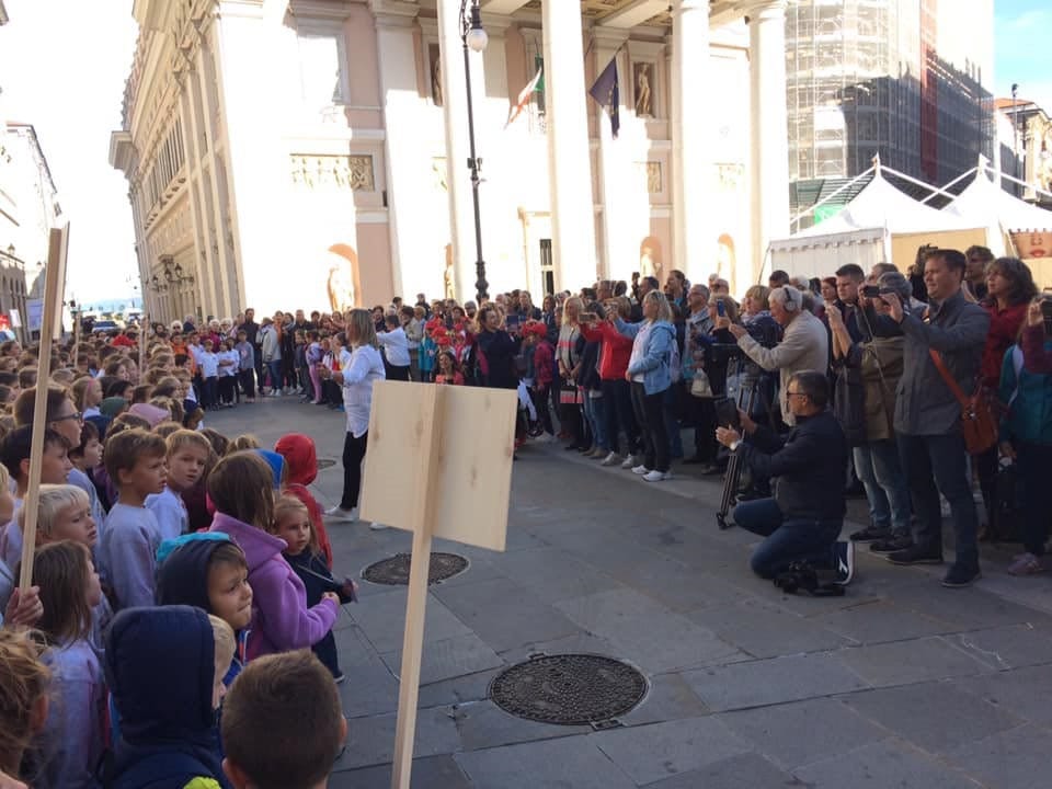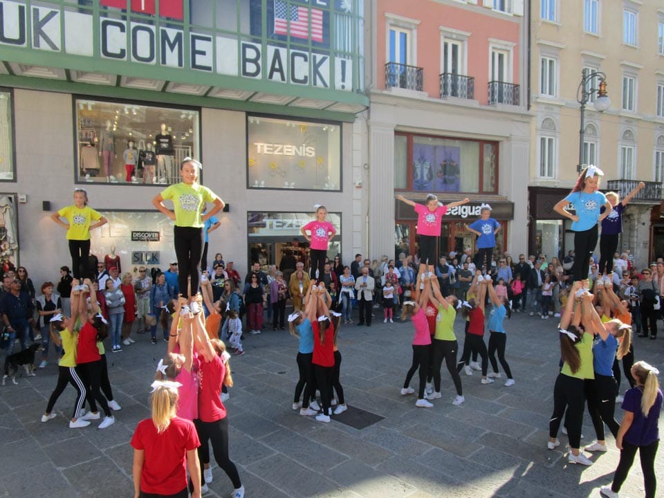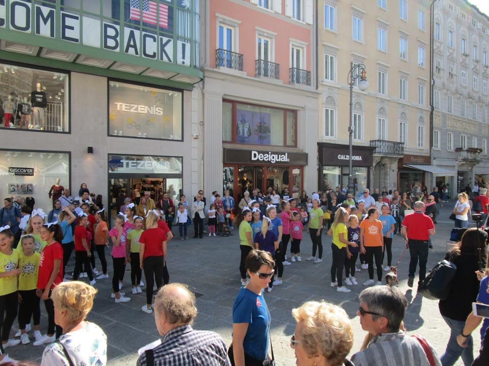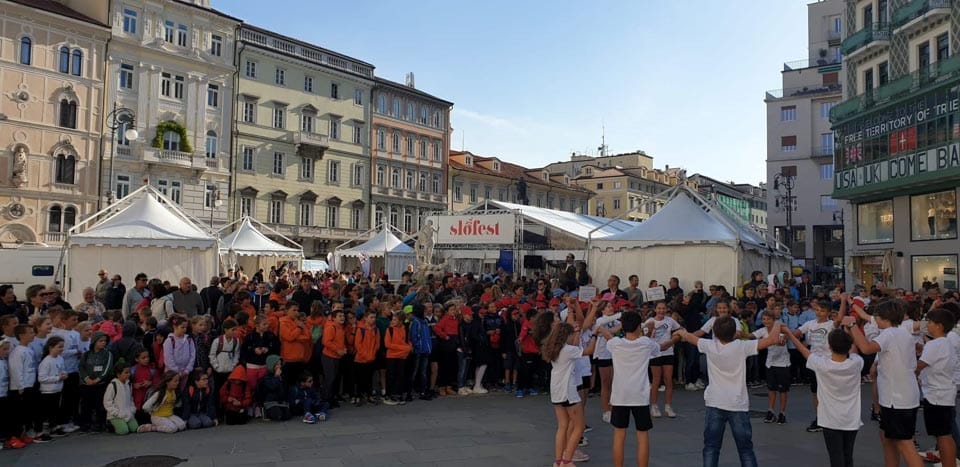TRIESTE – Da venerdì 22 settembre a domenica 24 settembre si è svolto nel centro di Trieste lo Slofest, che aveva nel programma anche alcuni eventi sportivi. Nell’ambito delle Giornate europee del patrimonio culturale e della festa Slofest si è svolta il giorno venerdì 20 settembre in piazza della Borsa a Trieste una sfilata e una dimostrazione ginnica (la Parata della gioventù) che ha coinvolto circa 450 bambini degli asili e delle scuole slovene.