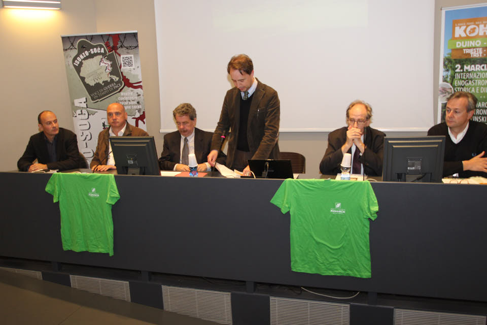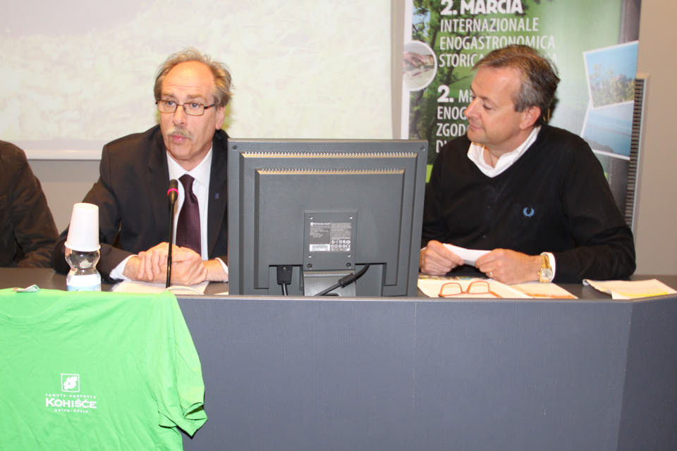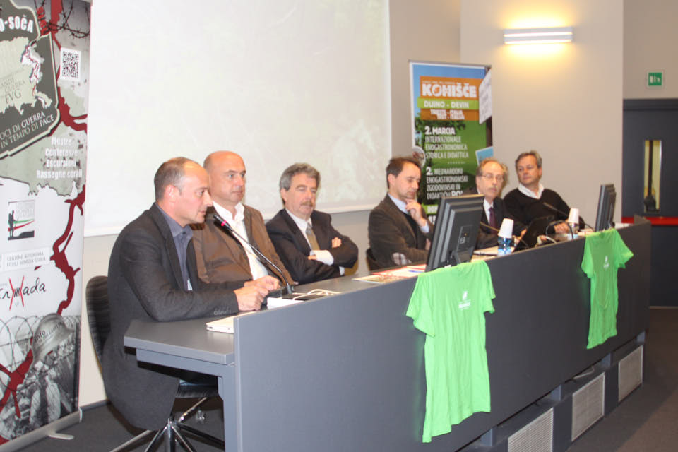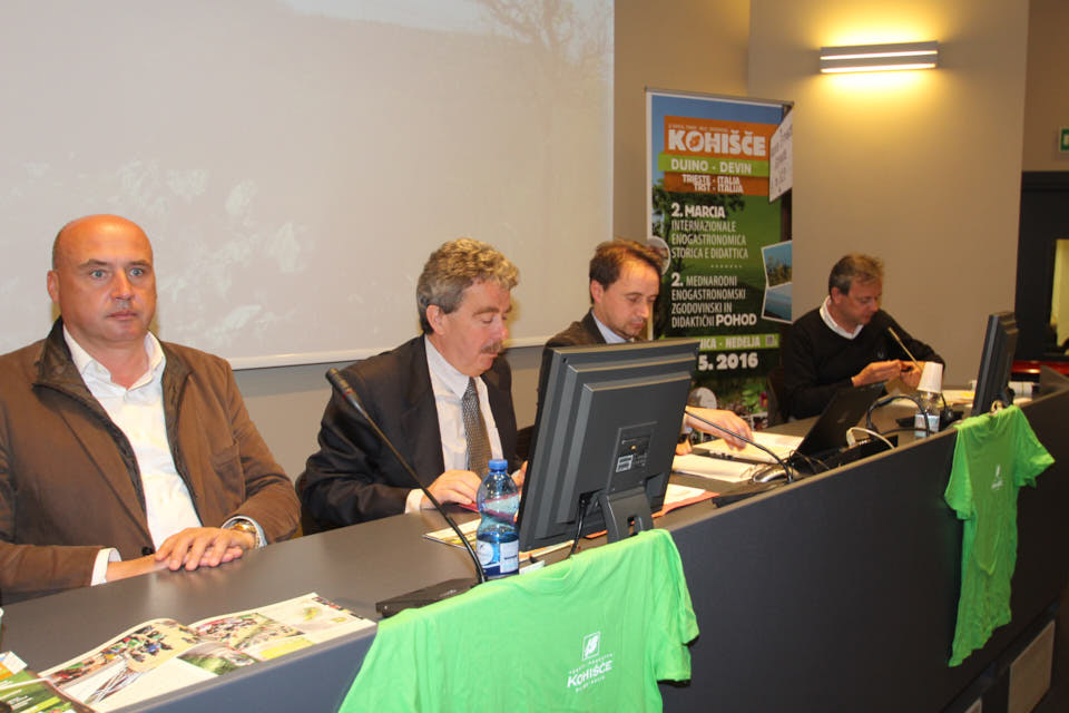 TRIESTE – Nella sala conferenziale Tessitori della Regione FVG è stata presentata giovedì 5 maggio la seconda edizione della Marcia Internazionale Enogastronomica Storica e Didattica KOHIŠČE 2016  che si svolgerà domenica 15 maggio con partenza alle ore 8. Alla conferenza stampa, condotta dal vicepresidente del Consiglio regionale Igor Gabrovec, sono intervenuti l’ùassessore regionale Gianni Torrenti, l’Assessore comunale di Duino -Aurisina Andrej Cunja, Fabio e Marko Pahor dell’Azienda Agricola Kohišče e il preisdente dello SK SK Devin Dario Štolfa. ra gli ospiti presente canche il presidente dello ZSŠDI Ivan Peterlin.