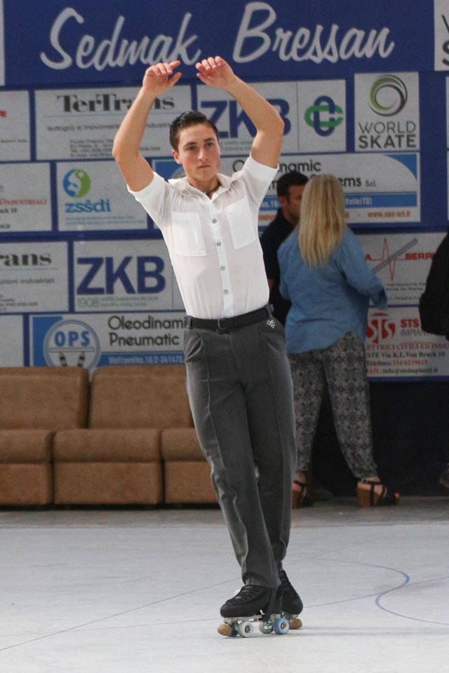 La seconda giornata del Memorial Sedmak – Bressan è iniziata all’alba con le gare negli esercizi obbligatori. Il livello tecnico era alto in tutte le categorie. Nella categoria senior femminile, vittoria netta della Campionessa del Mondo, l’argentina Anabella Mendoz, che ha gareggiato in modo impeccabile. A secondo posto si è piazzata Valeria Barossi, che ha presentato degli esercizi di ottimo livello, gareggiando a livelli vicini alla Mendoz. Al terzo posto si è piazzata la goriziana Ilaria Donati Dalla Lunga, al suo primo anno di categoria. Nella categoria seniores maschile, vittoria dell’argentino Guillermo Marconi, che ha presentato esercizi di ottima levatura. Nella categoria junior femminile ha vinto l’argentina Sofia Matich battendo la russa Viktoria Panfilova e l’argentina Carolina Burwan. Vittoria sud americana anche nella categoria junior maschile. Il colombiano Bravan Carreno ha avuto la meglio sull’italiano Matteo Fabris. Tra le jeunesse, podio interamente italiano. Il primo posto è andato alla belloni, seguita dalla Turrin e Cettul. Vittoria per la tedesca Tamiona De Silva nella categoria cadetti, che ha vinto una sfida ristretta a quattro pattinatrici, battendo rispettivamente la colombiana Lince, l’argentina Lang e l’italiana Mazzoni. Buon livello anche nelle categorie inferiori, dove le sfide per il podio erano riservate ad atleti italiani, tedeschi e sloveni.