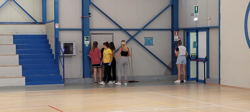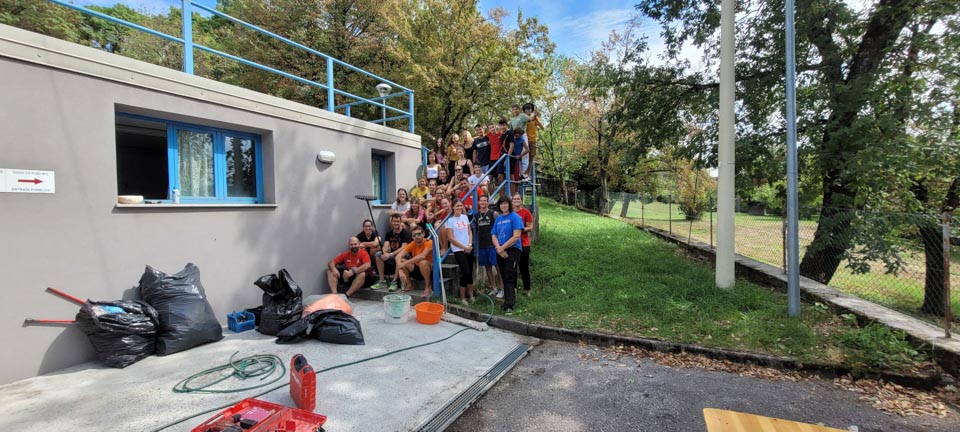 REPEN – Kot vsako leto so člani in igralci društev Sloga in sloga Tabor, ter igralke ekip Zaleta pomagale pri čiščenju repenske telovadnice.