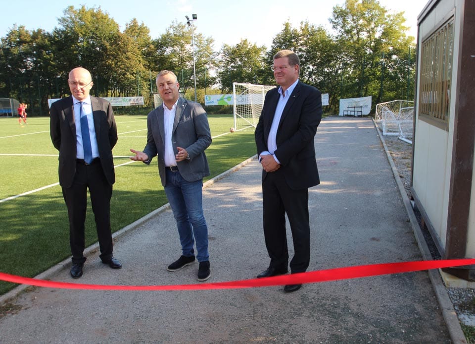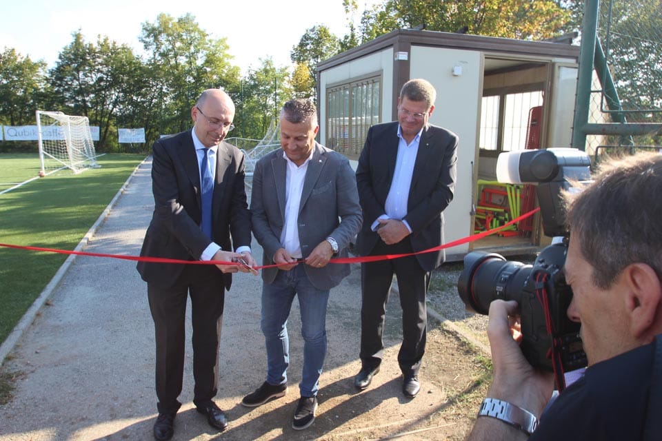 REPEN – V četrtek, 20. septembra 2018 je bilo na občinskem stadionu “Dario Škabar”  v Repnu slavnostno odprtje obnovljenega malega nogometnega igrišča. Svečanosti so se udeležili repentabrski župan Marko Pisani, generalni tajnik Tžaške hranilnice “Cassa di Risparmio di Trieste” Paolo Santangelo in predsednik KK Kras Goran Kocman. Odprja so se udeležili tudi odborniki NK Kras in šteilni mladi nogometaši.