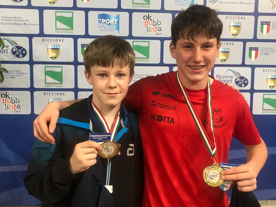 RICCIONE – Krasov tabor je presenetila spodbudna novica, saj je zgoniško društvo na državnem prvenstvu četrte kategorije osvojilo kar dve kolajni: najprej je presenetljivo bila uspešna Sara Taucer v igri ženskih dvojic s soigralko iz San Marco Pordenone Angelico Parilli, dve uri kasneje pa je državni naslova osvojil Erika Paulino s soigralcem iz A4 Verzuolo pri moških parih. V finalu sta nadigrala dvojico Rossetti/ D’Arcangeli iz Rima ( tekmovanje je imelo 126 parov iz cele Italije, ki so se kvalificirali iz različnih deželnih prvenstev).