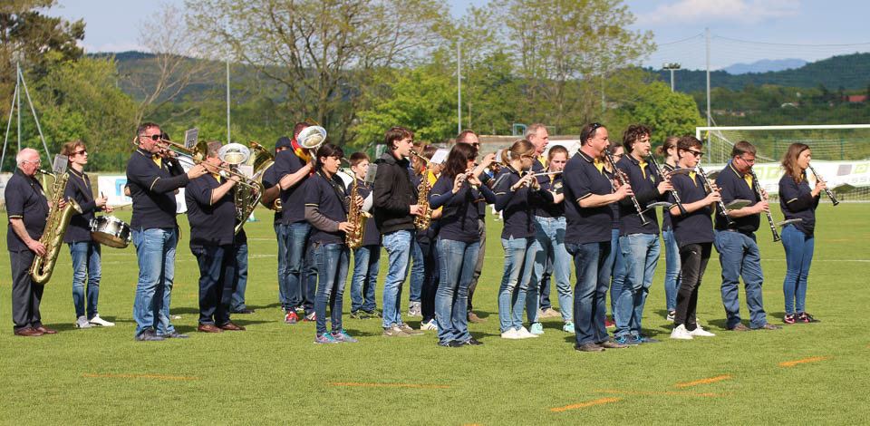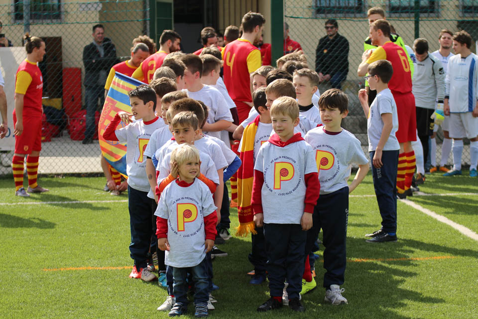 Že dobro uro pred srečanjem se je začela “fešta” na Rouni ob napredovanju v višjo, promocijsko ligo. Pred tekmo je nastopila proseška godba na pihala in tako dala dogodku svečani ton. Nakar so stopili na igrišče igralci obeh ekip v spremstvu mladih in najmlajših nogometašev Primorja.