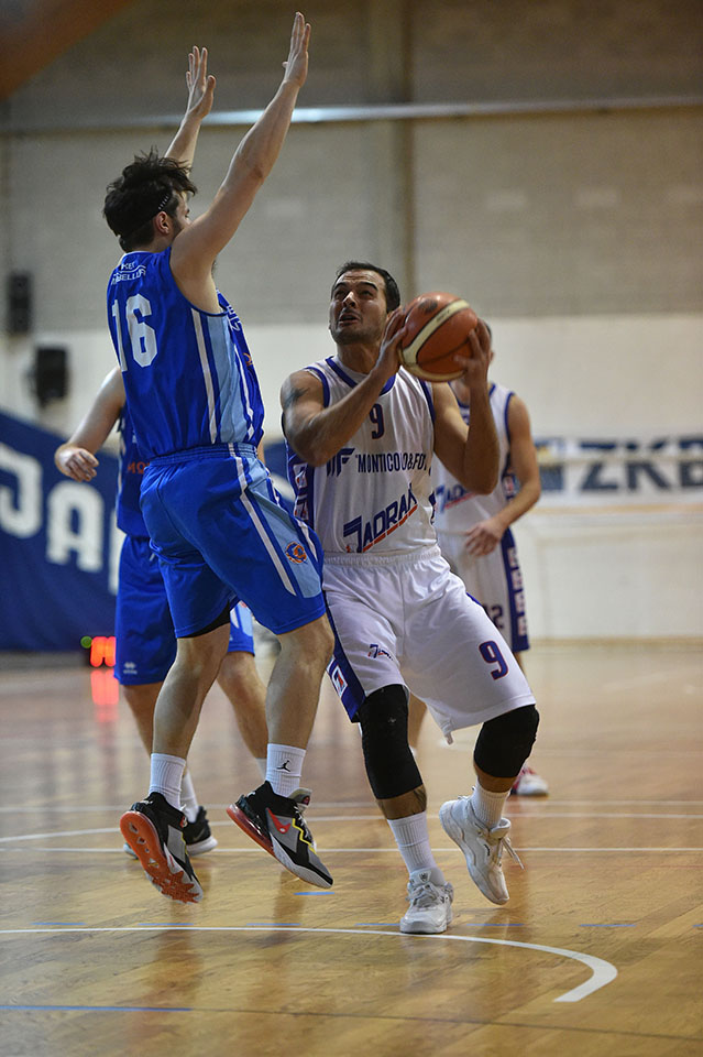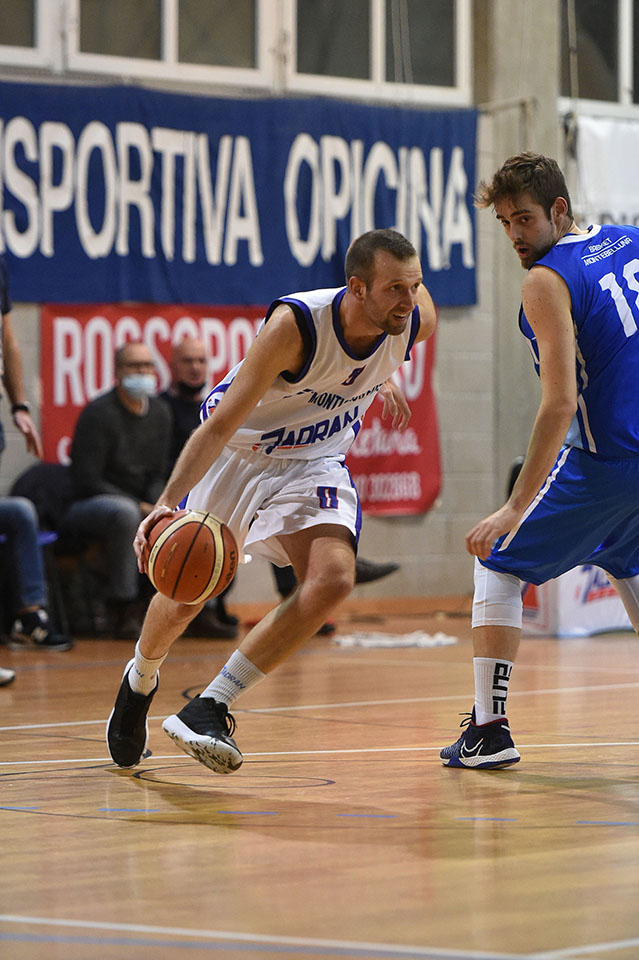 Jadranovci so v derbiju kroga na Opčinah premagali še Montebelluno, osvojili že peto zaporedno zmago in se še pomaknili proti vrhu lestvice. Varovanci trenerja Oberdana so začeli zelo motivirano in v prvi četrtini dosegli kar 30 točk. V napadu so bili nezadržni in so dali kar 6 trojk na 7 poskusov. V drugi četrtini pa skoraj popoln mrk. Dosegli so pičlih 13 točk, gostje pa kar 27, tako da so sklenili polčas le s 5 točkami razlike. V nadalejvanju so le strnili vrste, ohranili vodstvo ter ob koncu zmagali za 14 točk. Za vnovični uspeh je treba pohvaliti vso ekipo, posebno pa Martina Ridolfija, ki je igral v velikem slogu. Kaže, da je dokončno saniral poškodbo. Njegov doprinos po daljšem obdobju odsotnosti bo za ekipo še kako pomemben.