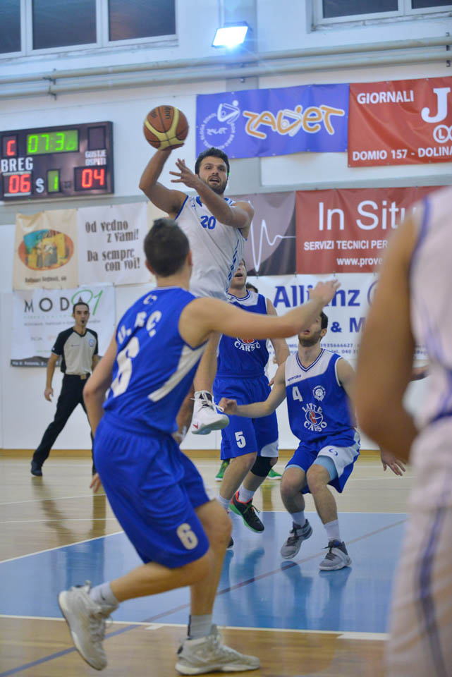 Košarkarji Brega so premagali videmski Latte Carso UBC, s katerim so do tega kroga delili drugo mesto na lestvici, ter izkoristili sočasni poraz vodilnega San Danieleja proti Campoformidu, tako da se je moštvo iz Doline povzpelo do samega vrha skupnega seštevka. Kljub odsotnosti Carre in izenačeni tekmi so domači vseskozi vodili, gostje pa so se nazadnje približali pri izidu 71:67 na začetku zadnje četrtine, več pa niso zmogli.