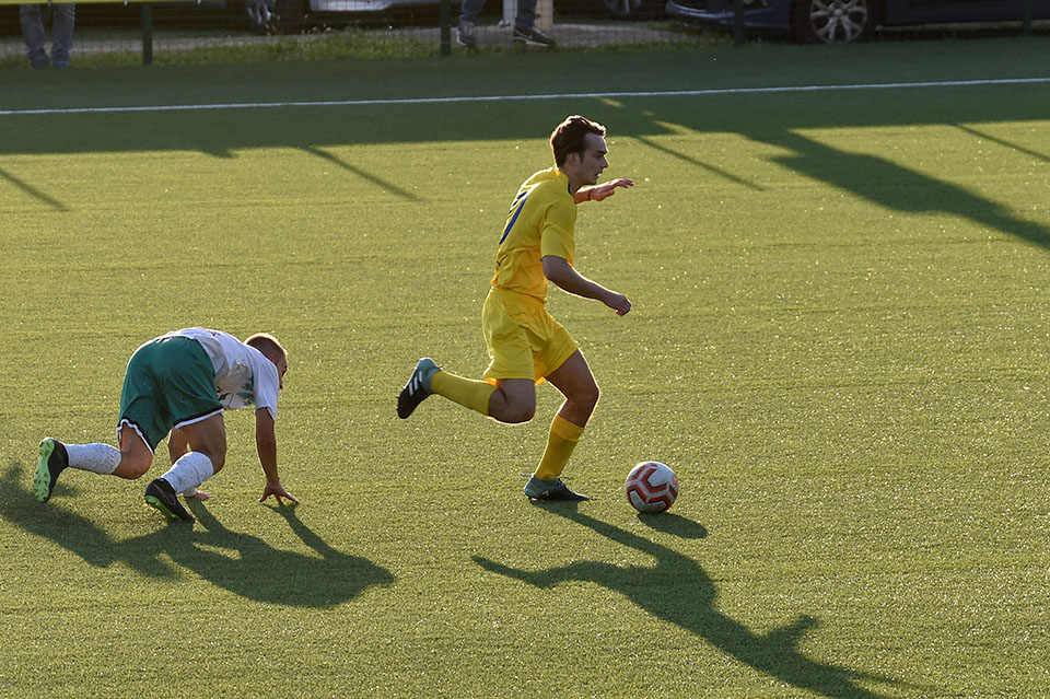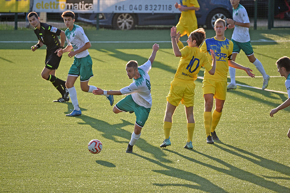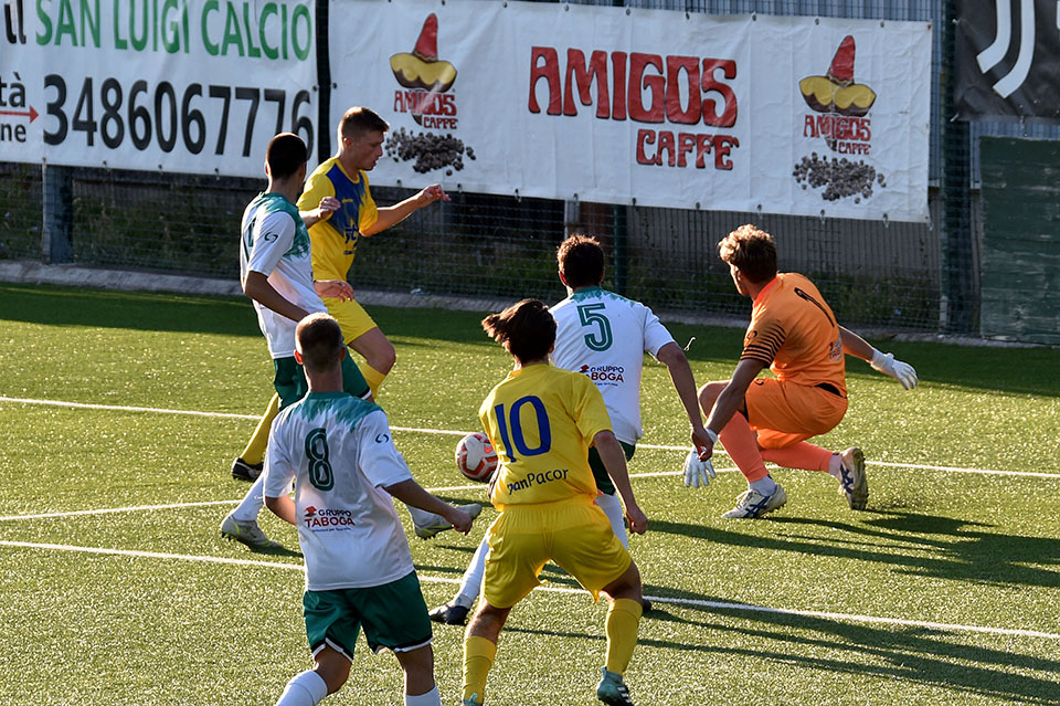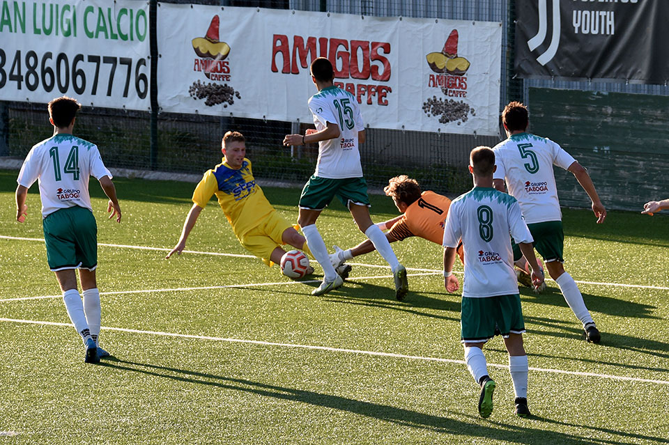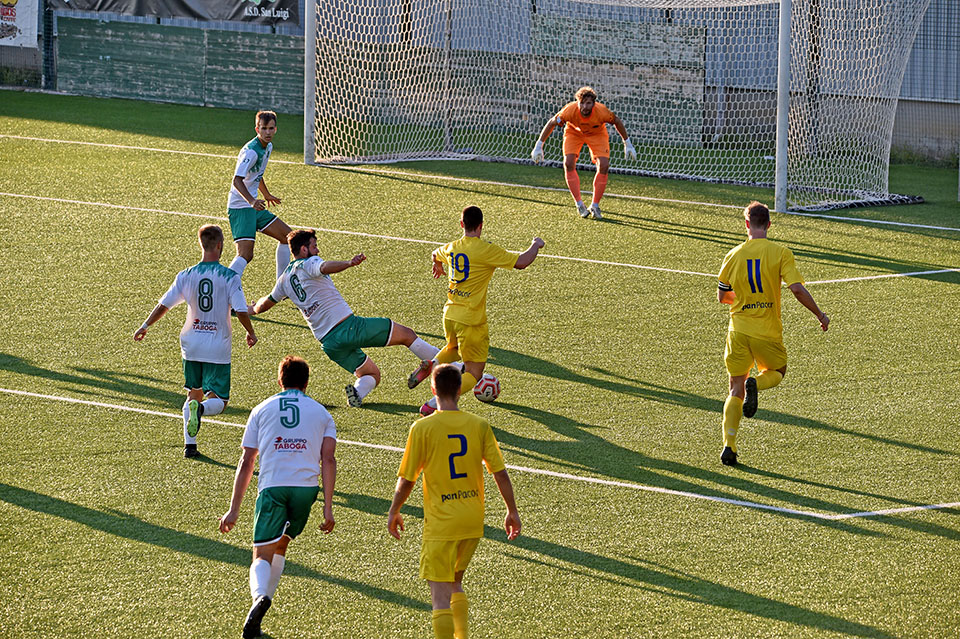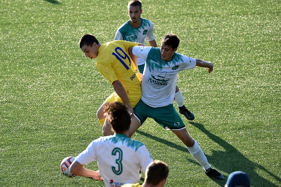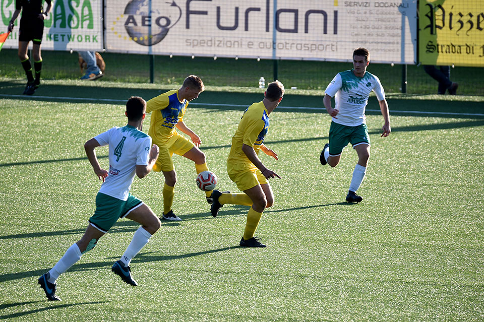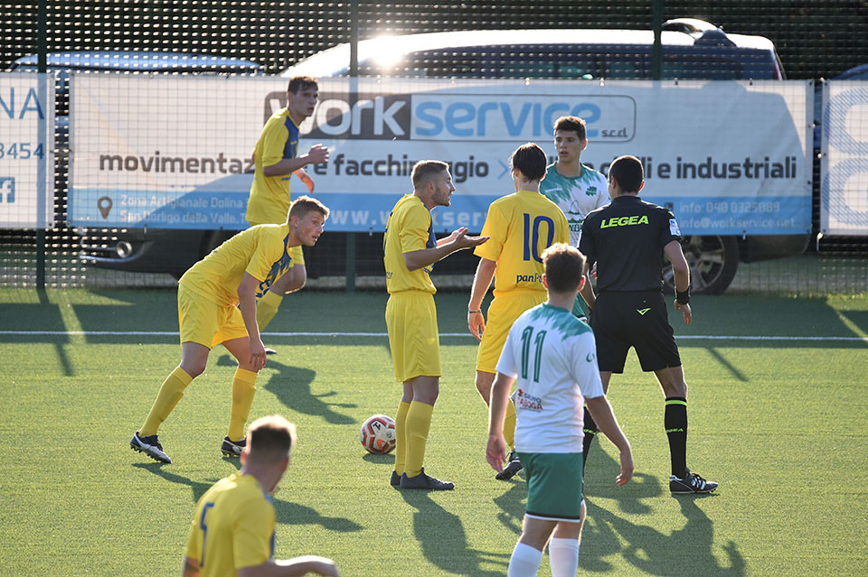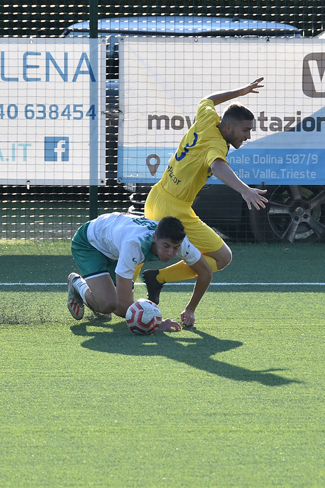 Favorizirani San Luigi je osvojil derbi proti sesljanski ekipi, moral pa se je pošteno potruditi, preden je strl odpor trdoživih varovancev trenerja Musolina. Gostitelji so poletno začeli in po 25 minutah vodili z 2:0 z zadetkoma razigranega Ianezica. Pred koncem polčasa je za goste zmanjšal zaostanek na 1:2 David Colja. V drugem delu srečanja je bila igra bolj izenačena. San Luigi je dosegel še tretjji zadetek, gostje pa se niso dali in spet zmanjšali zaostanek na 2:3 s Carlevarisom, več pa niso zmogli.
