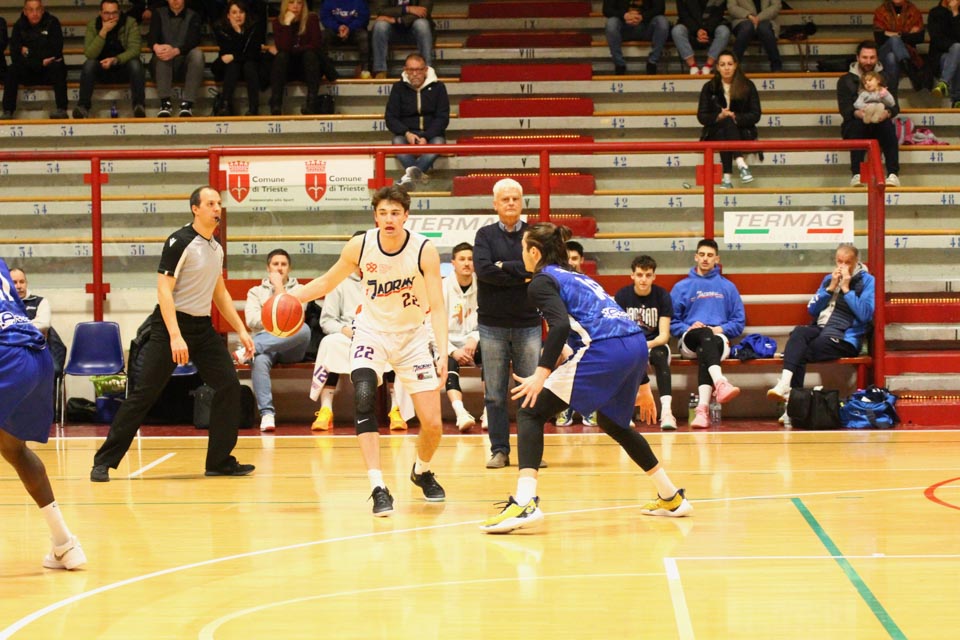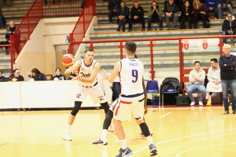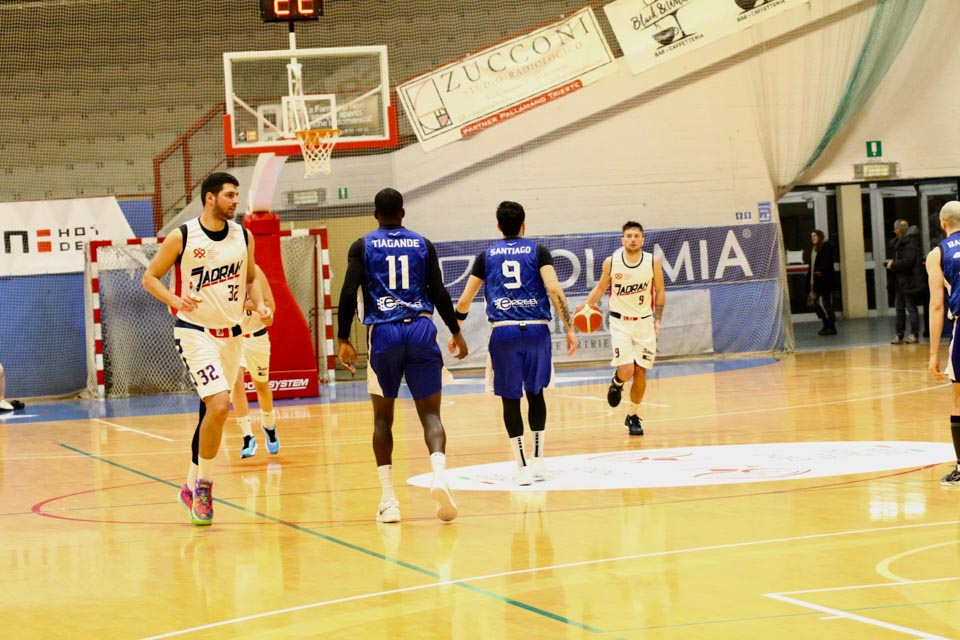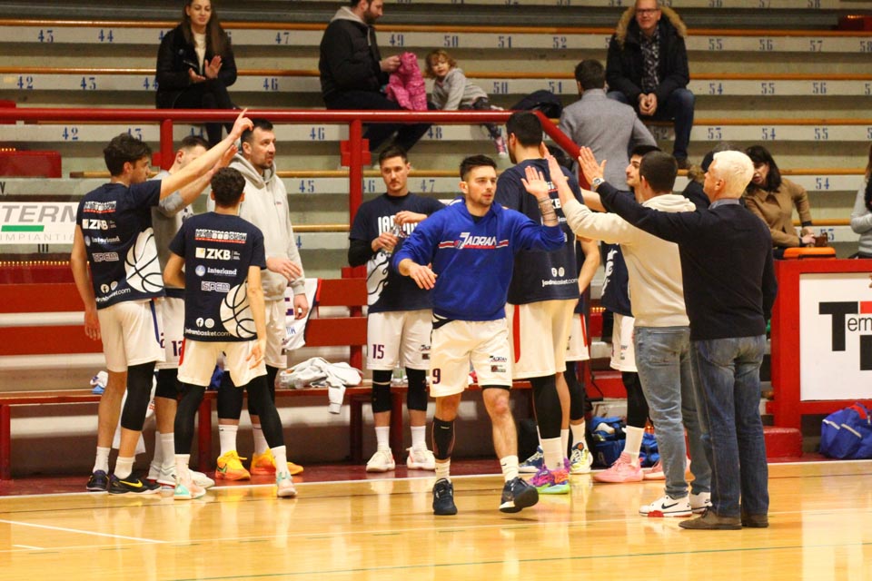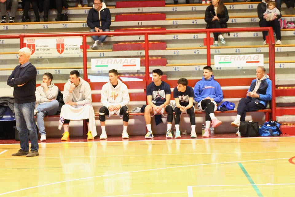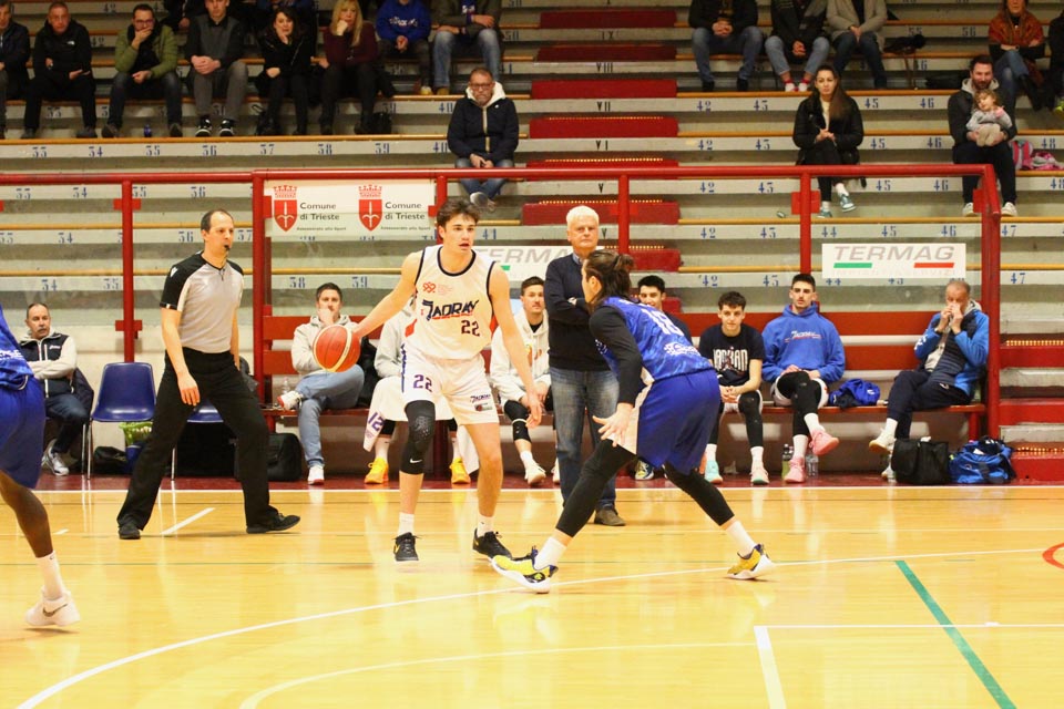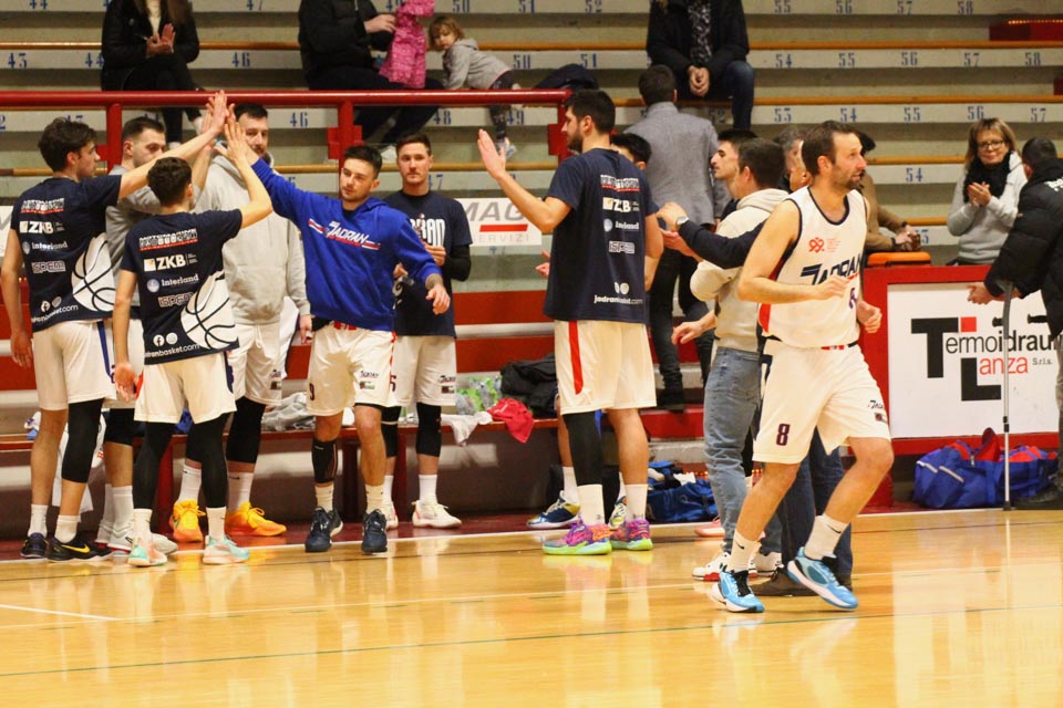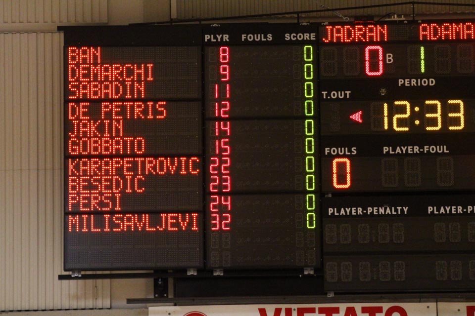 JADRAN: Demarchi 23 (1:2, 5:8, 4:8), Ban 0 (-, 0:1, -), Jakin 2 (-, 1:1, -), De Petris 3 (1:2, 1:4, -), Milisavljevic 13 (-, 5:7, 1:6), Besedič 1 (1 (1:2, 01, 0:2), Gobbato 20 (2:5, 9:10, 0:1), Persi 2 (-, 1:2, -), Karapetrović 10 (2:4, 4:11, 0:1), Sabadin nv; trener Walter Vatovec.
