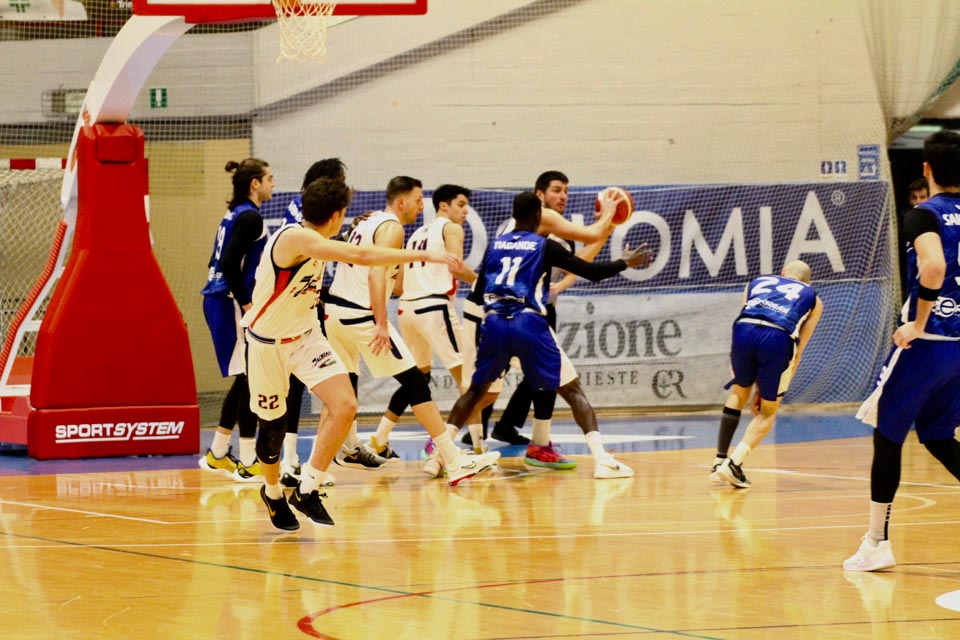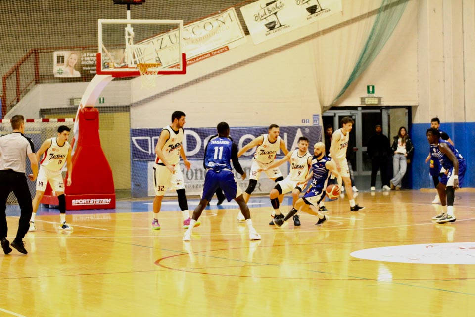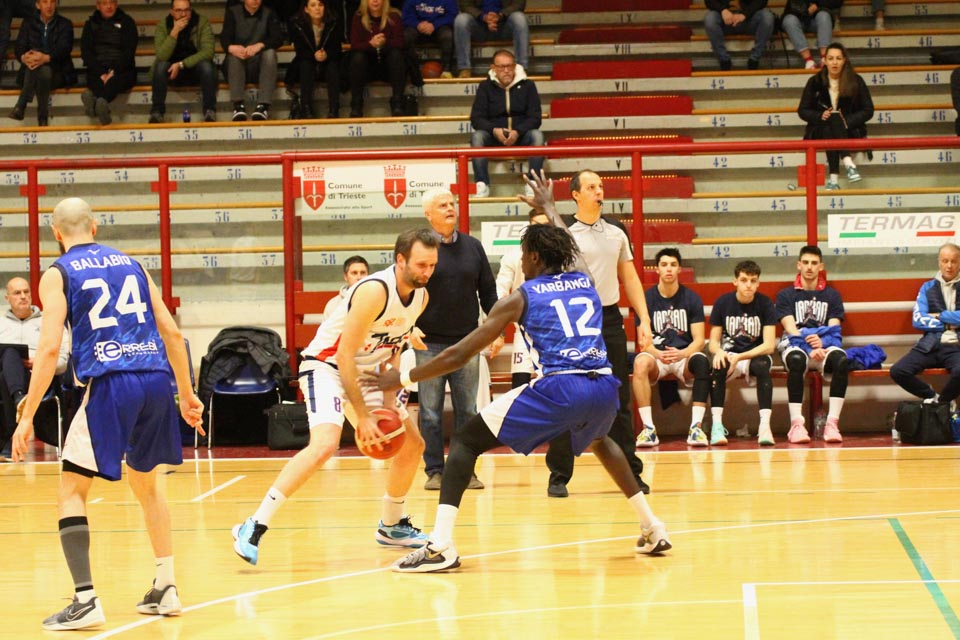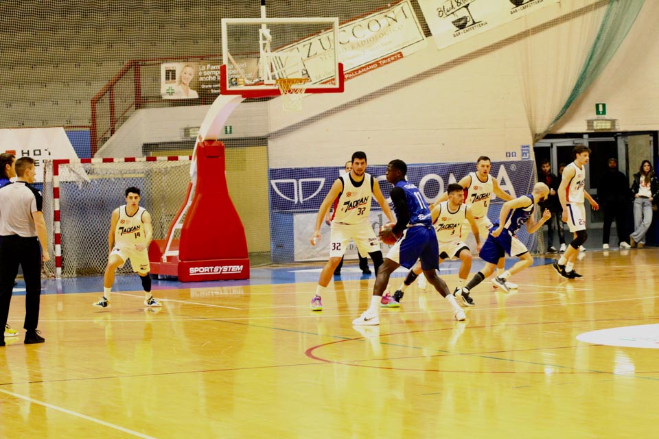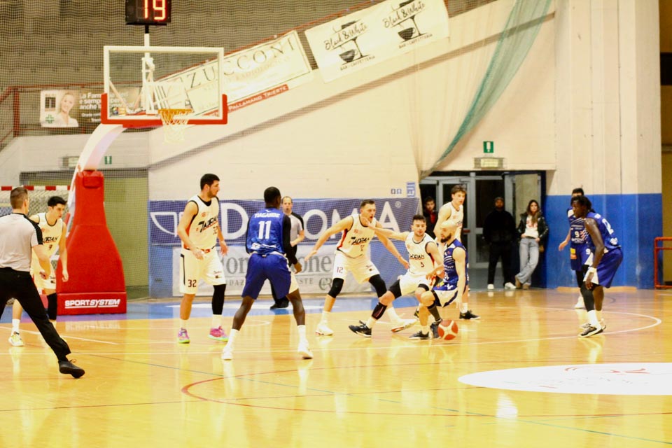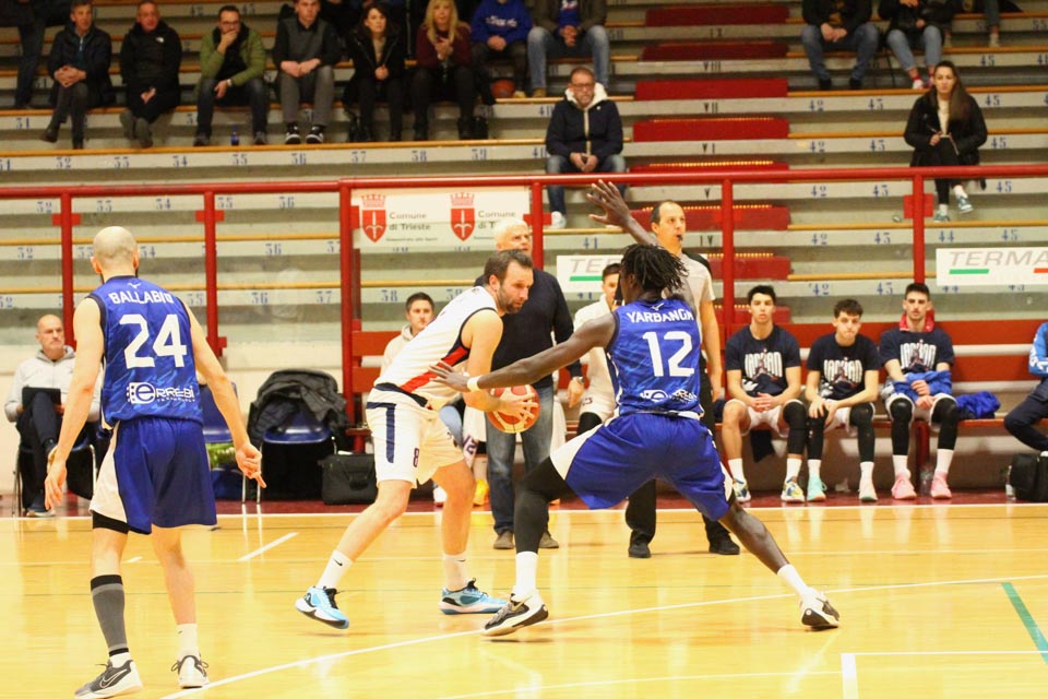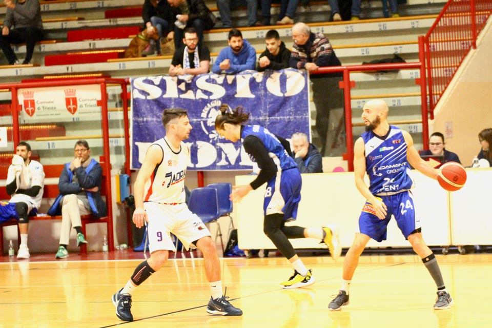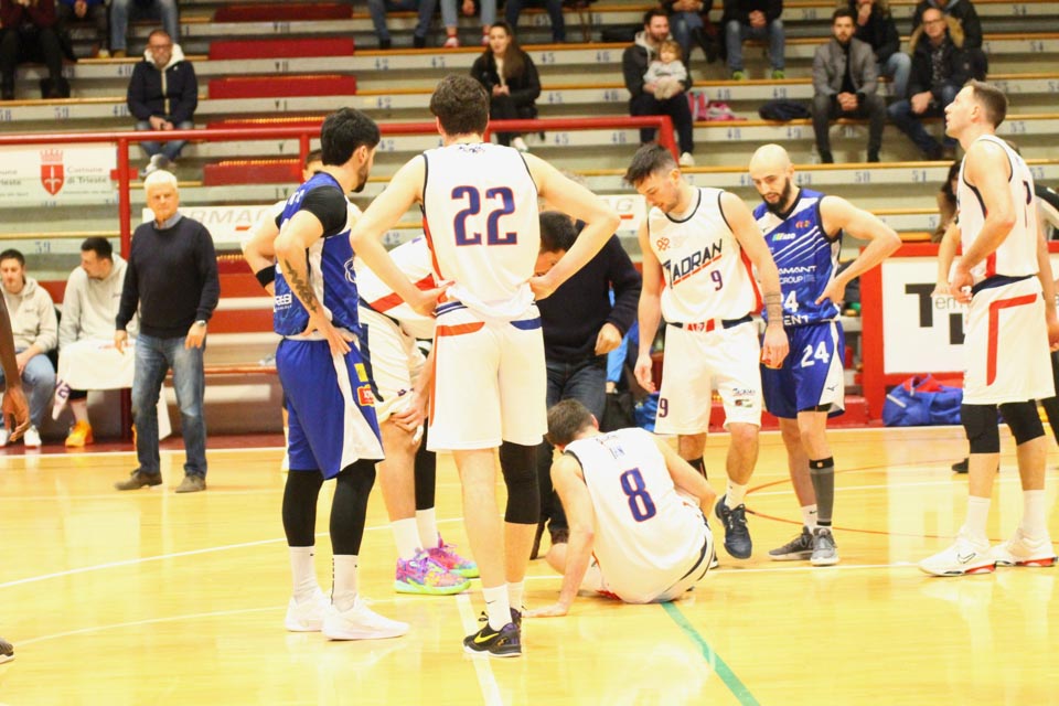 JADRAN: Demarchi 23 (1:2, 5:8, 4:8), Ban 0 (-, 0:1, -), Jakin 2 (-, 1:1, -), De Petris 3 (1:2, 1:4, -), Milisavljevic 13 (-, 5:7, 1:6), Besedič 1 (1 (1:2, 01, 0:2), Gobbato 20 (2:5, 9:10, 0:1), Persi 2 (-, 1:2, -), Karapetrović 10 (2:4, 4:11, 0:1), Sabadin nv; trener Walter Vatovec.