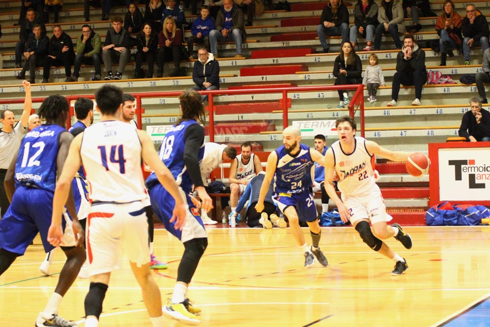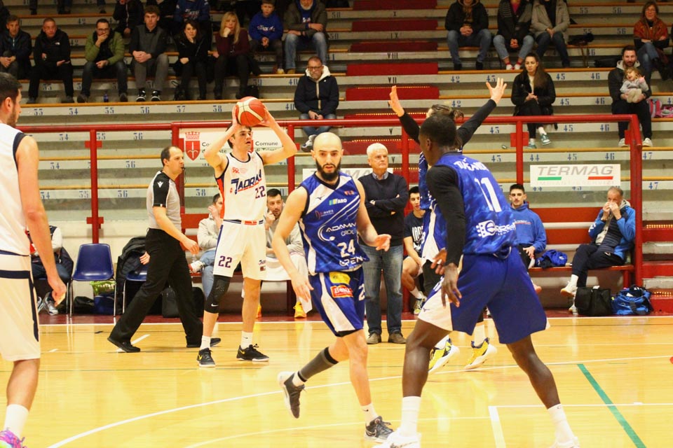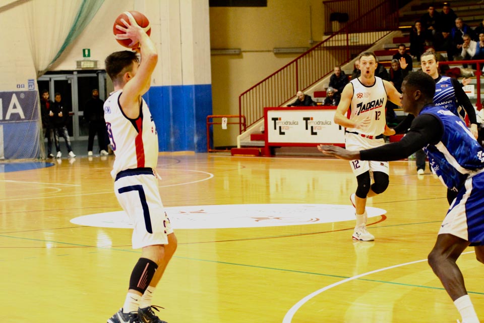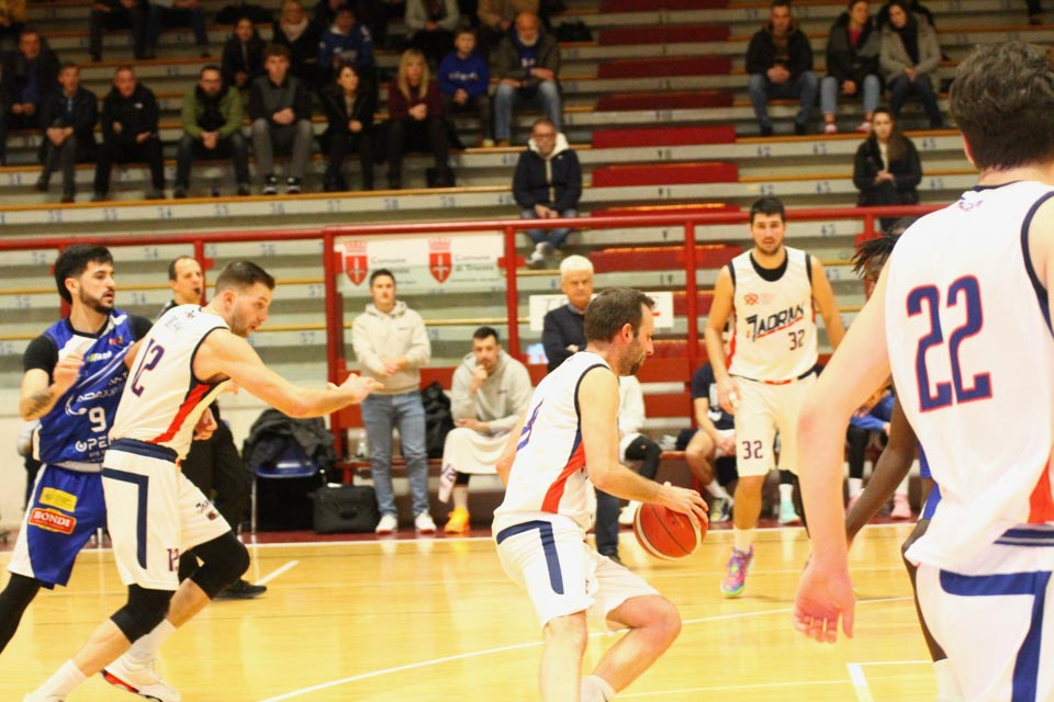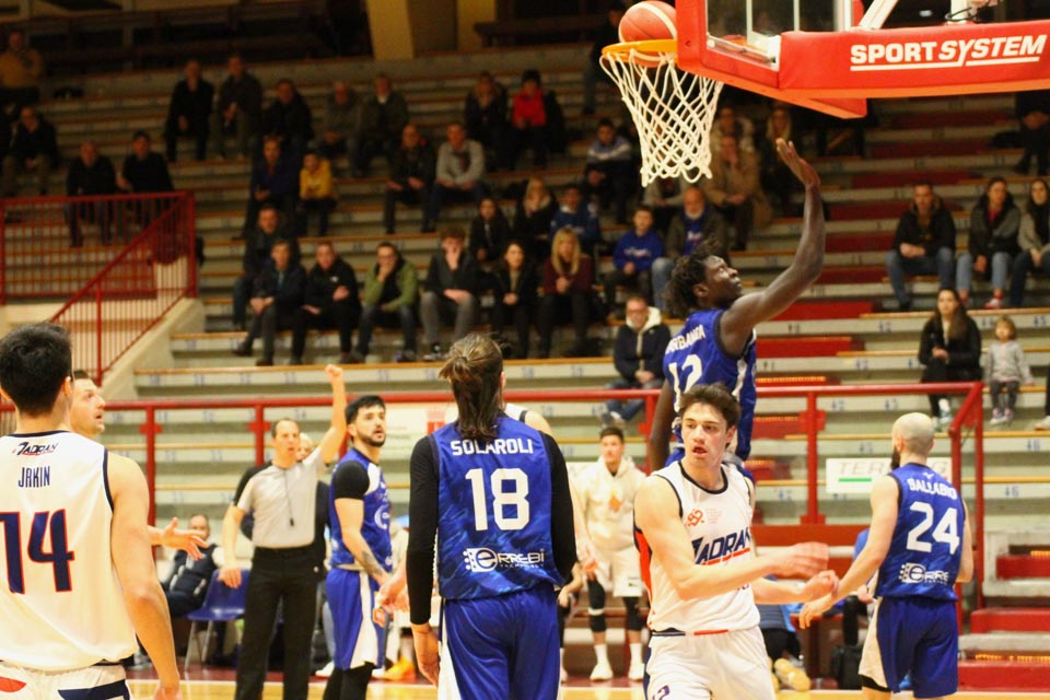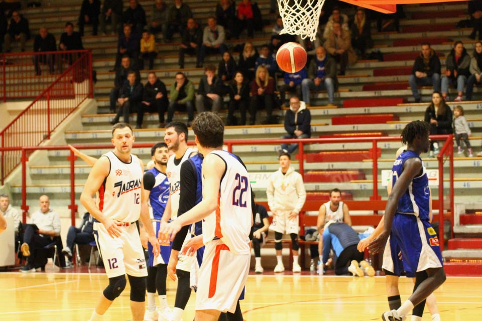 Verjetno v svoji najboljši predstavi doslej v tem prvenstvu so jadranovci častno izgubili proti zelo močni ekipi iz Ferrare, ki ne skriva ambicije za prestop v višjo ligo. Vatovčevo moštvo je za nameček nastopilo še v zelo okrnjei postavi: brez “običajne odsotnosti” Saše Malalana in Ignjatovića je tokrat izostal še Matija Batich, že po tretji minuti igre se je poškodoval še Borut Ban. Po skoraj katastrofalnem začetku (0:10 za goste) so si jadranovci opomogli in po prvi četrtini zaostali le za 6 točk. Po prvem polčasu pa so celo povedli za 2 točki (40:38). Tekma je bila tudi v nadaljevanju zelo izenačena, s tem da sta se ekipi izmenjavali v vodstvu do izdihljajih srečanja, ko so gostje dosegli zmagoviti koš.