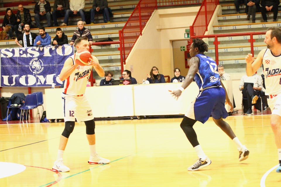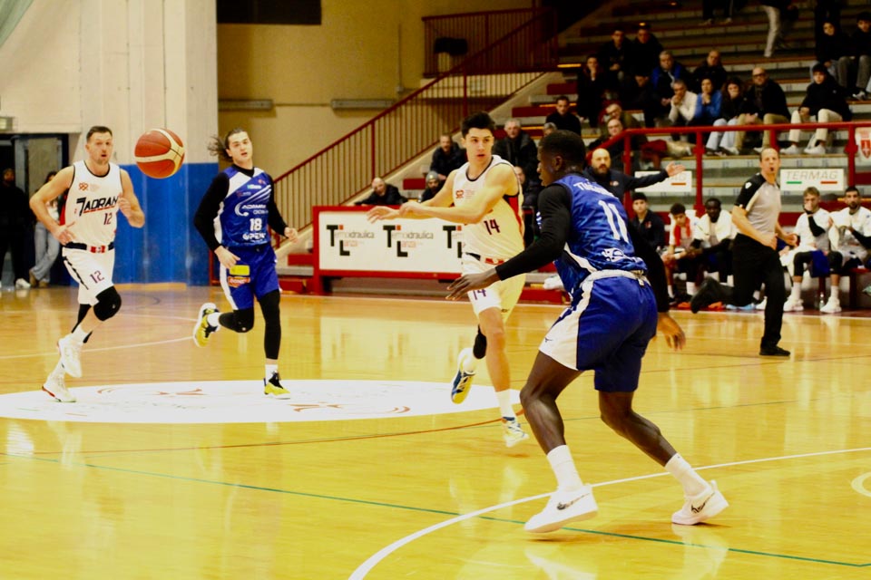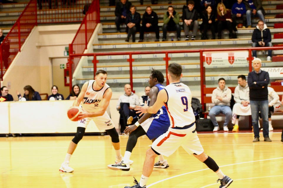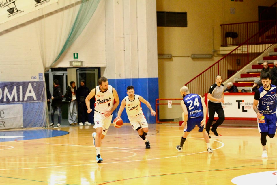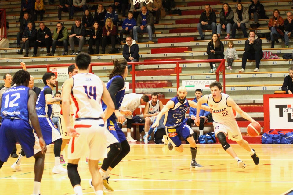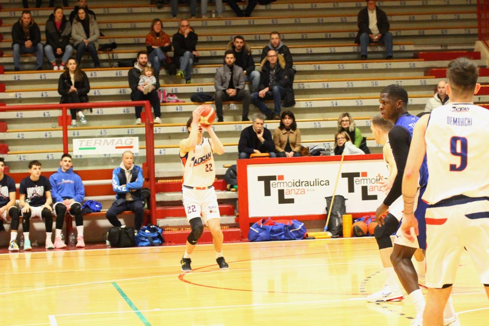 Verjetno v svoji najboljši predstavi doslej v tem prvenstvu so jadranovci častno izgubili proti zelo močni ekipi iz Ferrare, ki ne skriva ambicije za prestop v višjo ligo. Vatovčevo moštvo je za nameček nastopilo še v zelo okrnjei postavi: brez “običajne odsotnosti” Saše Malalana in Ignjatovića je tokrat izostal še Matija Batich, že po tretji minuti igre se je poškodoval še Borut Ban. Po skoraj katastrofalnem začetku (0:10 za goste) so si jadranovci opomogli in po prvi četrtini zaostali le za 6 točk. Po prvem polčasu pa so celo povedli za 2 točki (40:38). Tekma je bila tudi v nadaljevanju zelo izenačena, s tem da sta se ekipi izmenjavali v vodstvu do izdihljajih srečanja, ko so gostje dosegli zmagoviti koš.