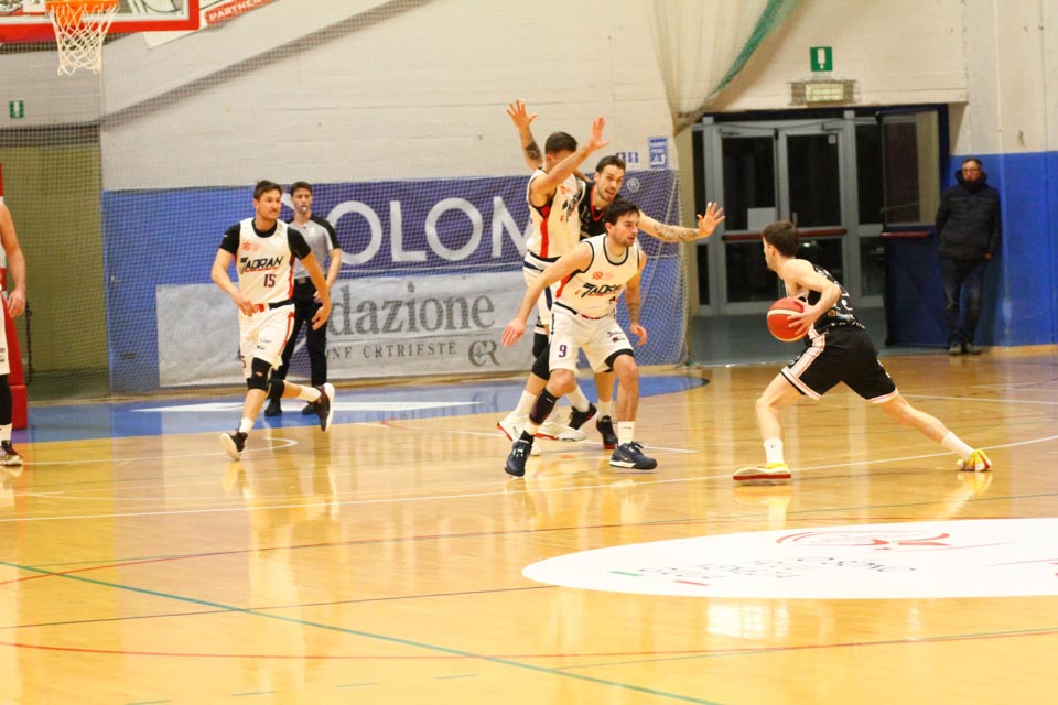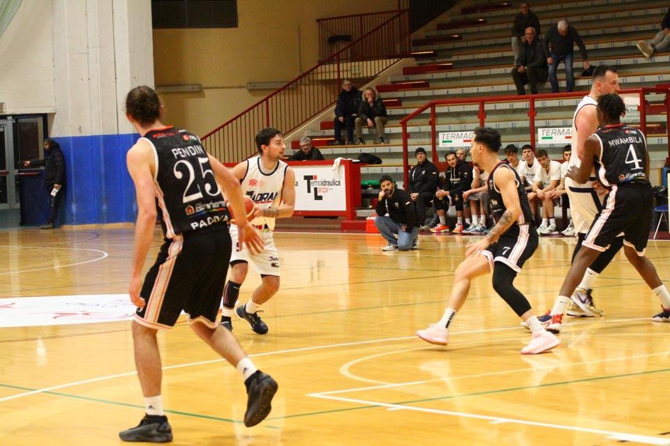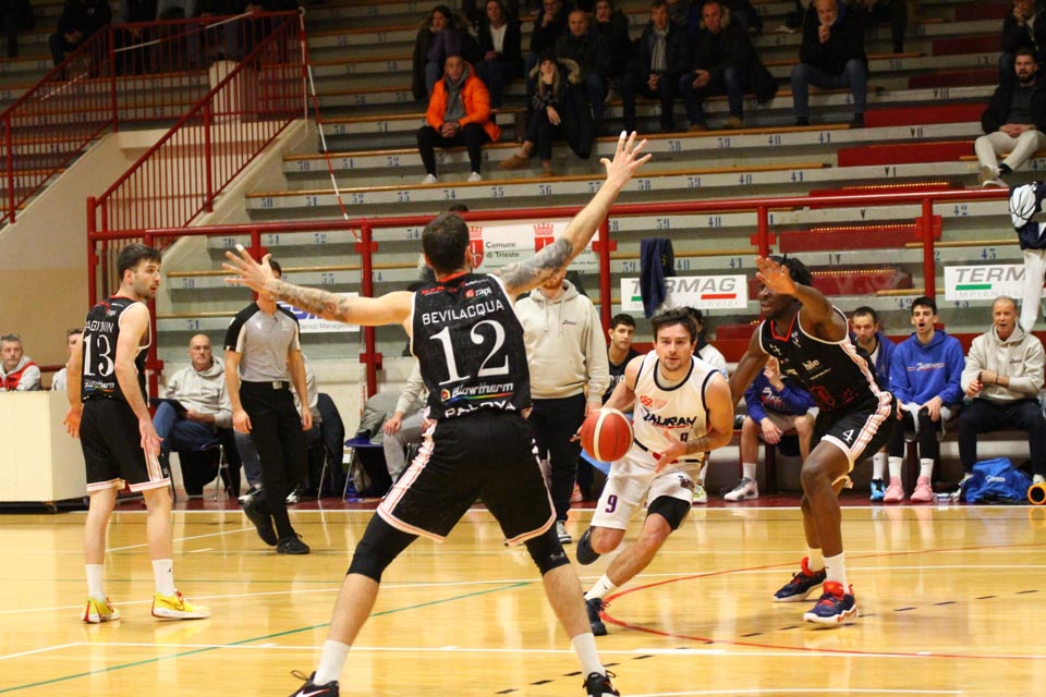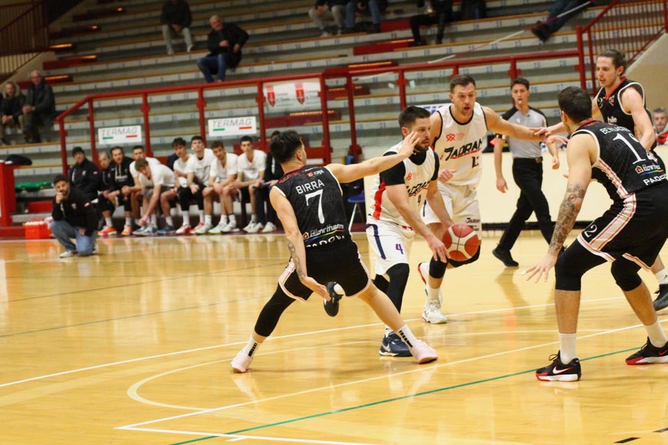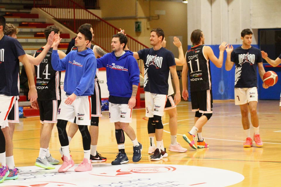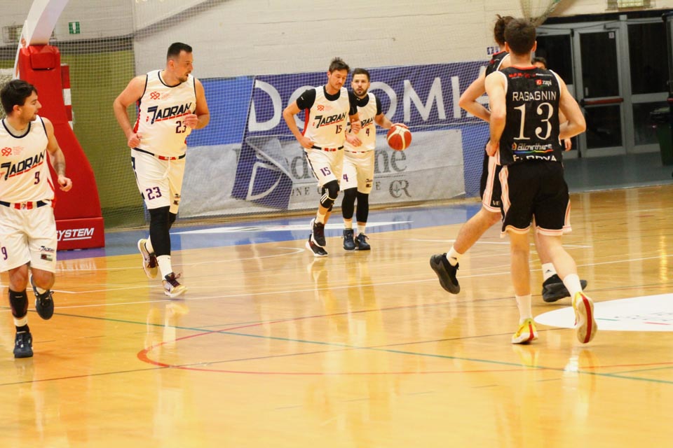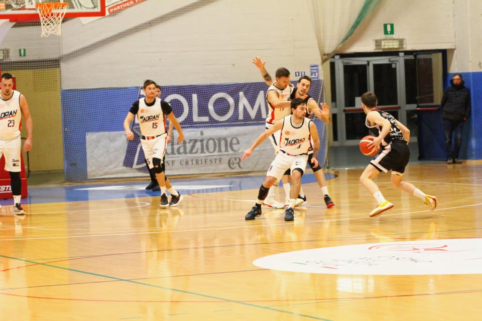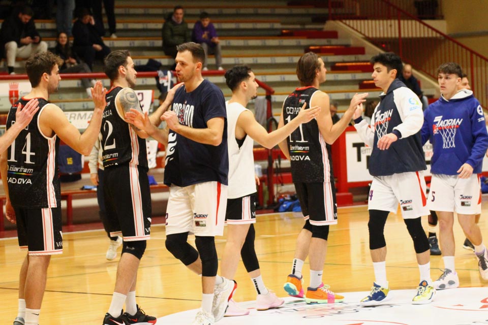 Jadranovci ostajajo tudi po 13. krogu meddeželne B-lige na predzadnjem mestu lestvice s samo dvema zmagama. Tokrat so na domačem parketu na Čarboli izgubili proti ekipi Guerriero iz Padove, ki je bila skozi vse srečanje boljša od Bazzarinijevih varovancev. Ti so se sicer enakovredno upirali v prvi četrtini, v drugi pa so so bili gostje odločno boljši, saj so prvi polčas sklenili z visokim vodstvom 17 točk. Tudi v nadaljevanju jadranovci niso odregirali, tako da je bil visok poraz neizbežen.