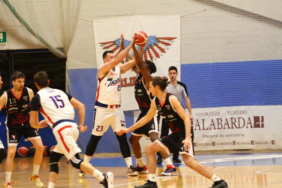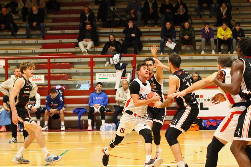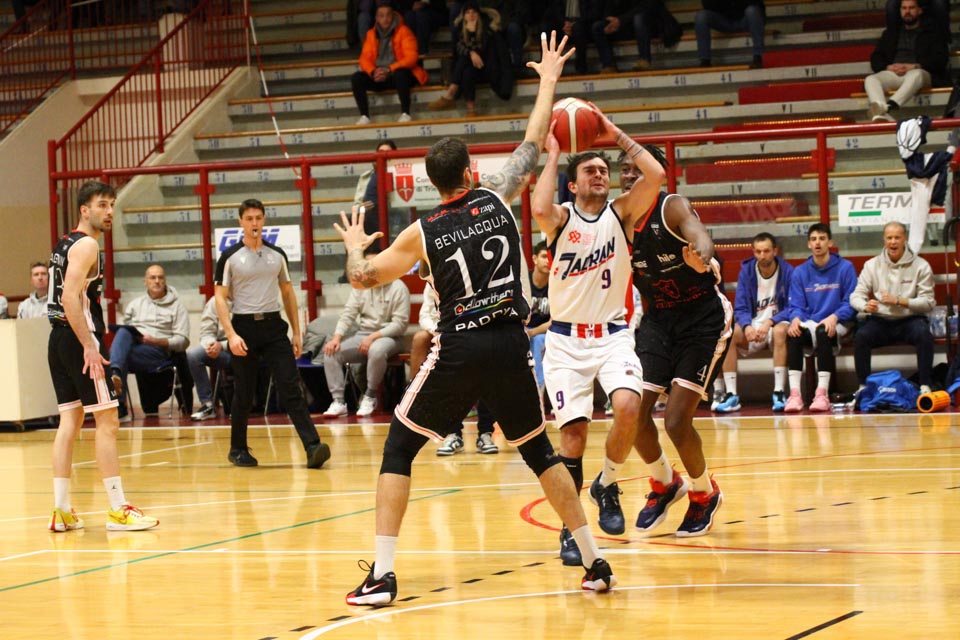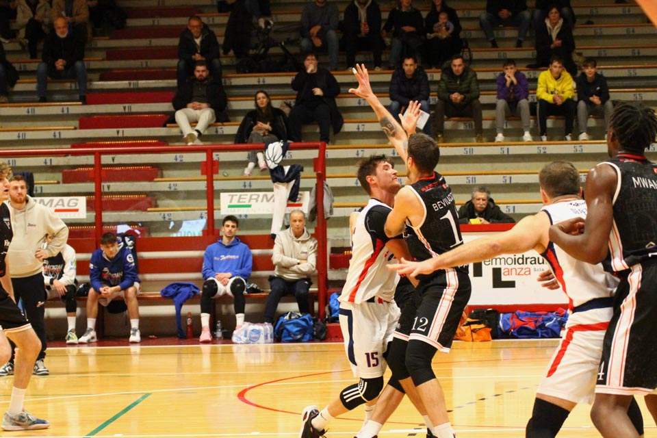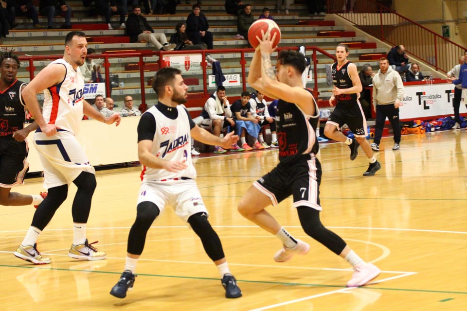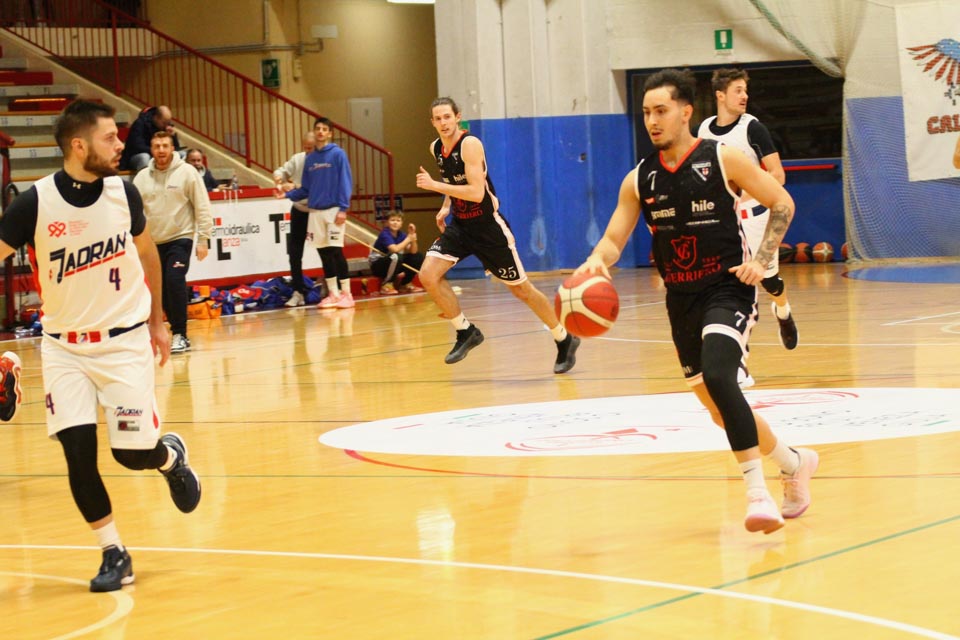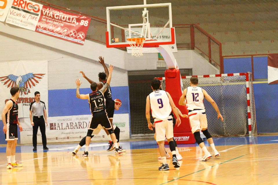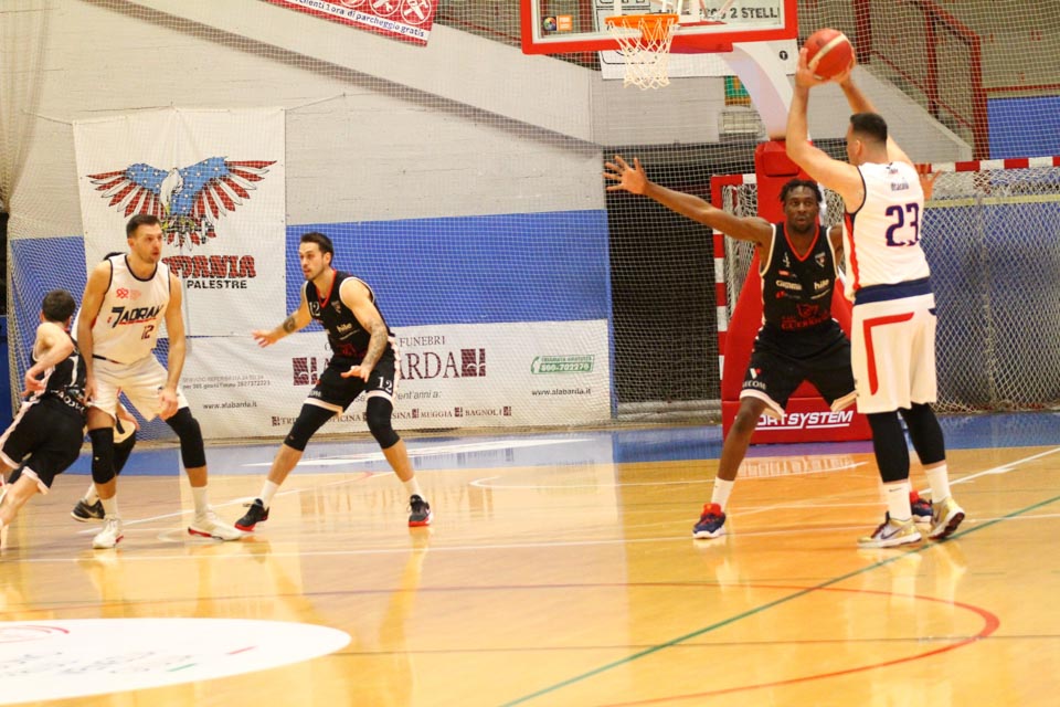 Jadranovci ostajajo tudi po 13. krogu meddeželne B-lige na predzadnjem mestu lestvice s samo dvema zmagama. Tokrat so na domačem parketu na Čarboli izgubili proti ekipi Guerriero iz Padove, ki je bila skozi vse srečanje boljša od Bazzarinijevih varovancev. Ti so se sicer enakovredno upirali v prvi četrtini, v drugi pa so so bili gostje odločno boljši, saj so prvi polčas sklenili z visokim vodstvom 17 točk. Tudi v nadaljevanju jadranovci niso odregirali, tako da je bil visok poraz neizbežen.