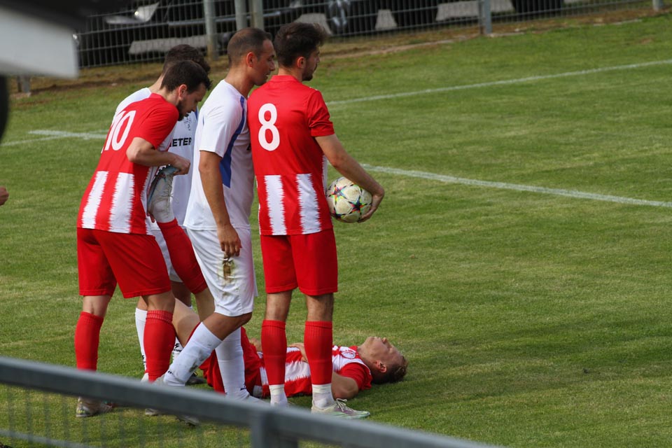 V nedeljo so varovanci renerja božiča (prvi trener Kneževič je še diskvalificiran) v prvem polčasu igrali odlično in pvoesem nadigrali goste. Junak prvega dela tekme je bil Velikonja, ki jedosegel tri krasne zadetke. V drugem polčasu so gostitelji nekoliko popustili, tudizato ker so uvedli nekaj menjav. Gostje so dosegli dva gola in tako omilili poraz.