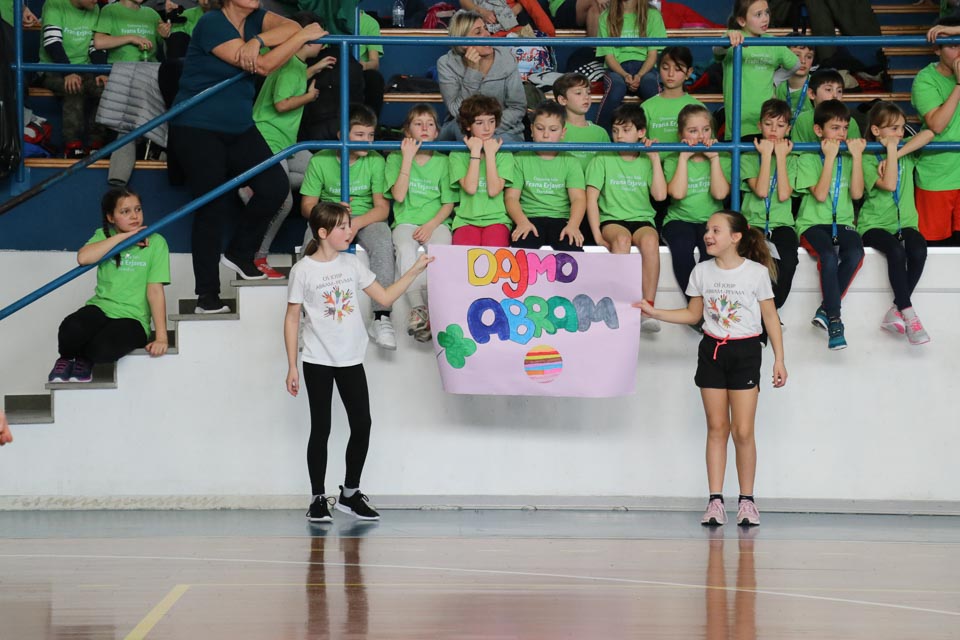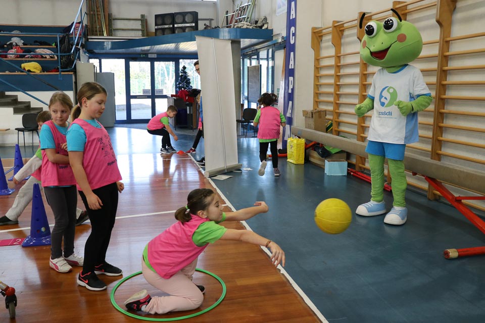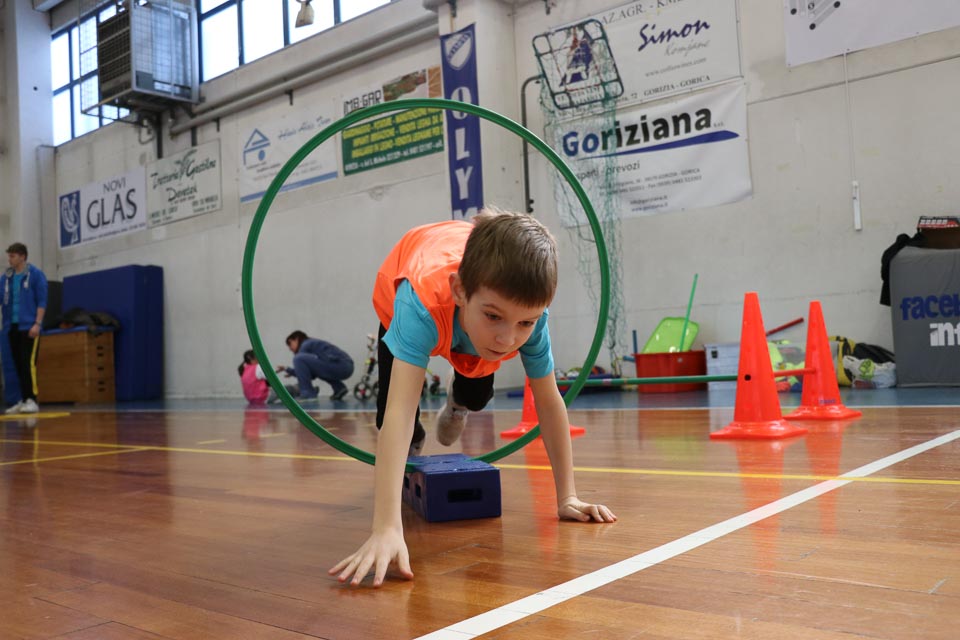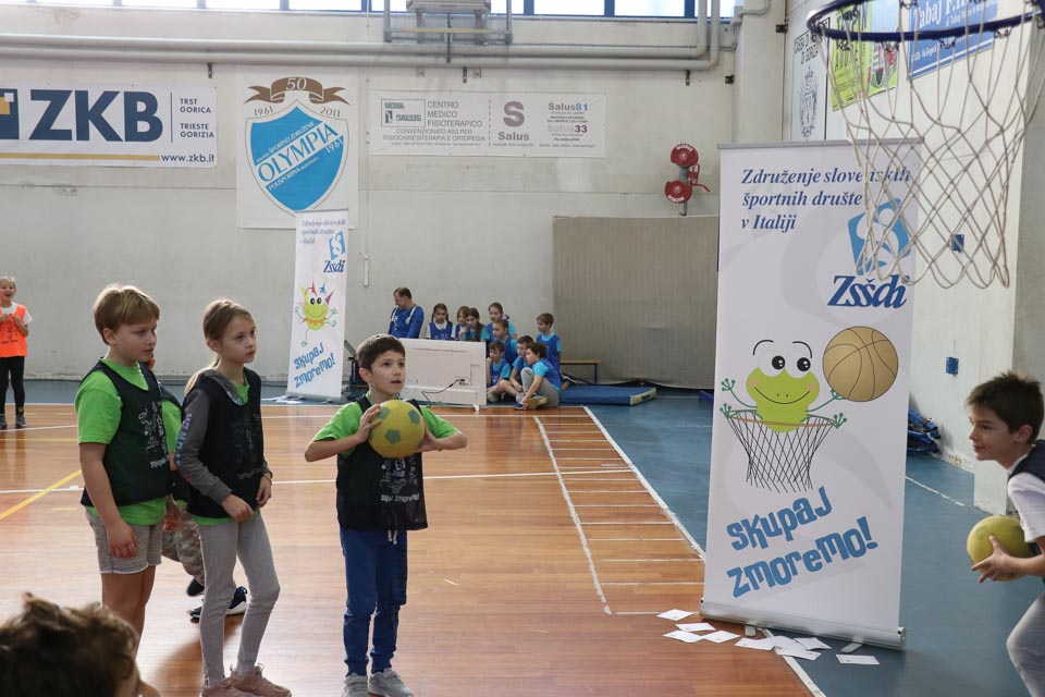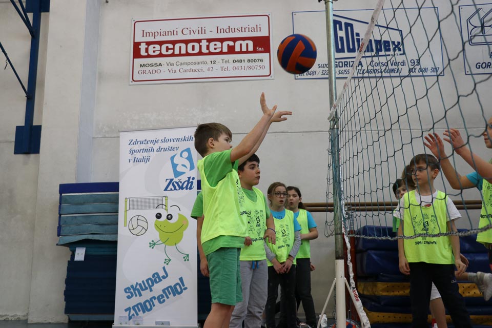 V športnem centru Mirka Špacapana v Gorici se je odvijala šesta etapa Skokičinega vrtiljaka, športnega projekta, ki ga ZSŠDI ponuja vsem osnovnim šolam s slovenskim učnim jezikom v Furlaniji Julijski krajini. V telovadnici se je zbralo skoraj 200 učencev tretjih, četrtih in petih razredov goriških šol. Prisotni so bili učenci osnovnih šol Otona Župančiča iz Gorice, Josipa Abrama iz Pevme, Frana Erjavca iz Štandreža, Alojza Gradnika iz Števerjana ter Ludvika Zorzuta iz Bračana. Tretješolci so sodelovali pri krožni vadbi na šestih postajah, kjer so se preizkusili v nogometu, košarki, odbojki, atletiki, splošni motoriki in v zabavnem jezikovnem kvizu, ki ima kot cilj utrjevanje poznavanja slovenskega jezika in športnega izrazoslovja. V igri med dvema ognjema je tokrat nastopilo kar osem ekip, ki so bile razdeljene v dve skupini s po štirimi ekipamio vsaka. Turnir je veljal za uvrstitev v veliki deželni šolski finale, ki bo na sporedu na Opčinah, 8. aprila letos. Po prvem delu tekmovanja sta se v finalu srečali A in B sekcija osnovne šole Otona Župančiča. Na koncu je prvo mesto osvojila A sekcija ki je premagala sošolce z rezultatom 14:7. Za veliko navdušenje vseh udeležencev je tudi tokrat poskrbela maskota slovenskega športa v Italiji žabica Skokica, ki je krožila po dvorani, lovila otroke in sodelovala pri postajah krožne vadbe.