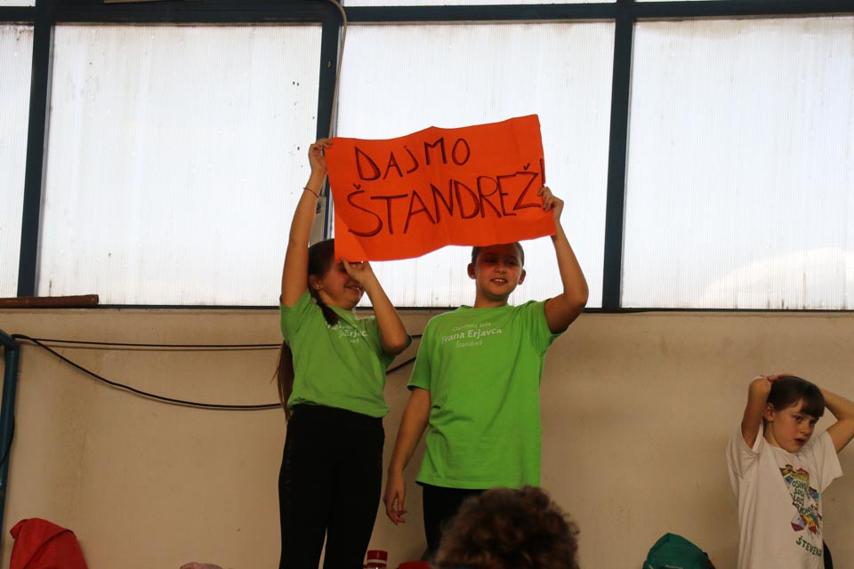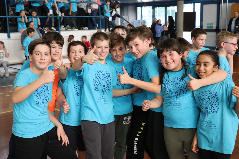 Vse tretješolce je žabica Skokica nagradila s spominskim trakcem, prozorno kuverto in potrdilom o opravljeni krožni vadbi, ostali učenci pa so prejeli zapestnico ZSŠDI. Vzdušje v telovadnici je bilo res prijetno in zabavno. Prireditev si je ogeldala tudi skupina italijanskih višješolcev klasičnega liceja Dante Alighieri iz Gorice. Njihov profesor je bil nad videnim zelo navdušen.