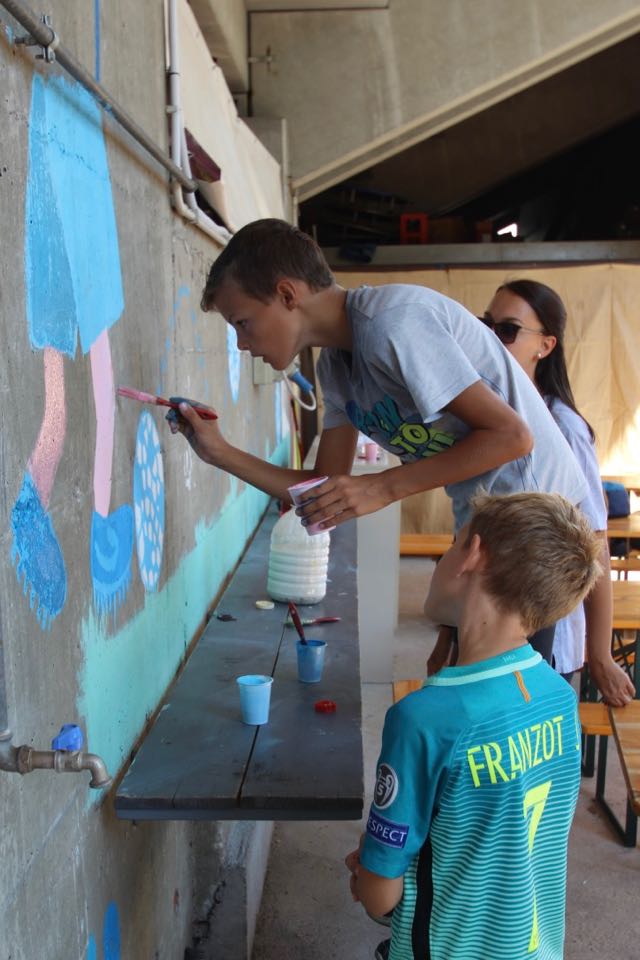 Na tem kampu so posebno skrb posvetili slovenskemu jeziku. In v ta namen sta v jezikovnih delavnicah Janika in Ksenja učili slovenske nogometne izraze ter pripravili za vsako izmeno po en “murales”, seveda naravnan na nogomet.