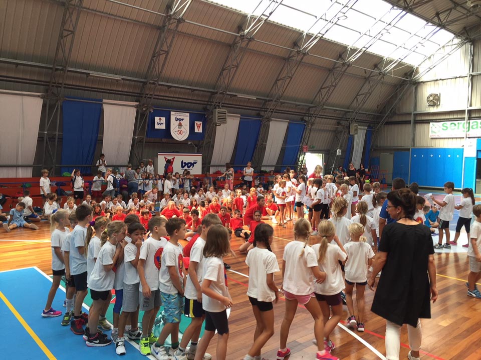 TRST – Stadion 1. Maja je bil v petek, 14. septembra 2018,  prizorišče prvega Dneva košarke v organizaciji AKK Bor in ZSŠDI. V jutranjih urah je več kot 220 otrok mestnih osnovnih šol (petletk) s slovenskim učnim jezikom, pod strokovnim vodstvom Matije Jogana in Borove vaditeljice Karin Malalan ter budnim očesom nekaterih operativno nastrojenih Borovih odbornikov imelo svoje verjetno prvo srečanje bližnje vrste s košarko in njenim čudovitim svetom. Otroke so vaditelji glede na starostno stopnjo porazdelili v tri delovne skupine, ki so sočasno zasedle veliko in malo dvorano ter glavno vežo. V dvoranah so bile na sporedu praktične vaje in spretnosti, v veži pa so si malčki lahko ogledali video z vrsto atraktivnih potez, ki so značilne za vrhunsko košarko.