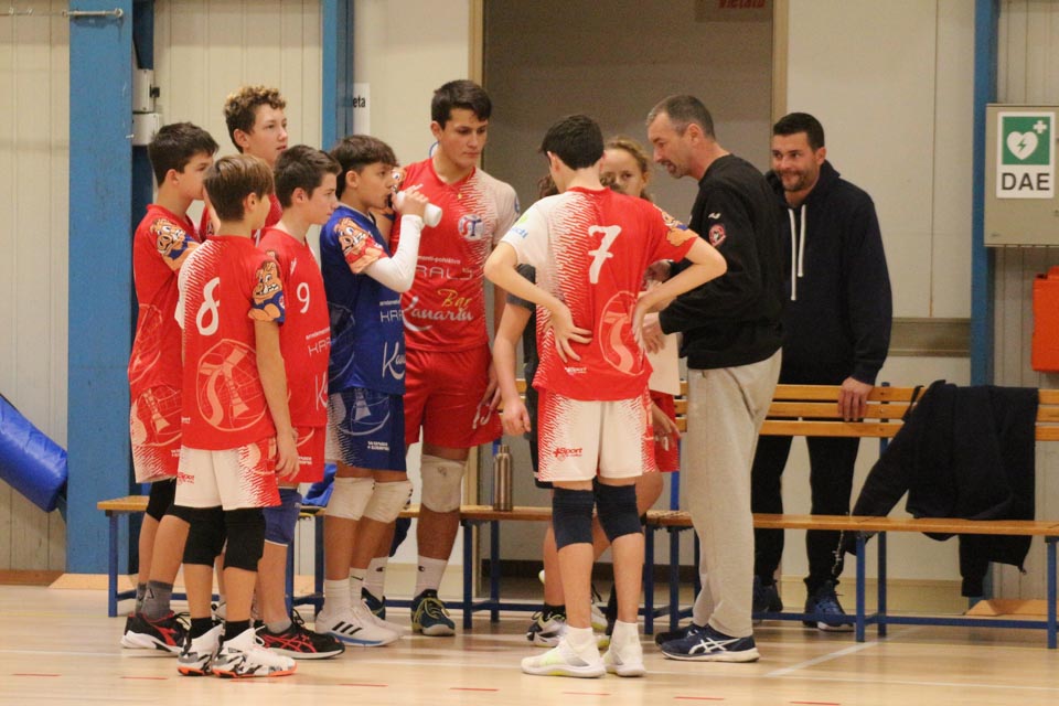 27. novembra 202290OdbojkaSloga Tabor Under 15 moški Repen; nedelja, 27.11.2022 (17.00) Soga Tabor – Triestina Volley 3:0 (25:6, 25:13, 25:11) SLOGA TABOR: Daniel Manià 15, Gioele Manià’ 1, Latrik Manià 7, Mesar 5, Korsič 10, Grassi 2, Furlanetto 3, Vattovaz libero 1. Foto Slosport