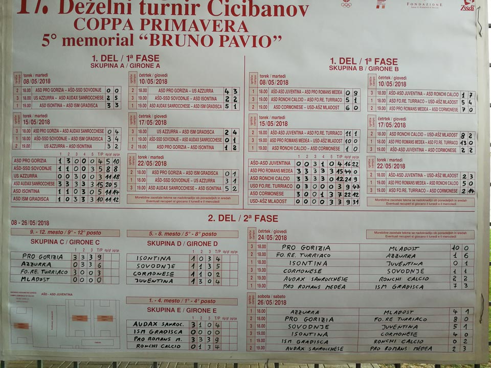 Tritedenski turnir, ki je potekal v sodelovanju z ZSŠDI, se je začel 8. maja. Na turnirju je sodelovalo 12 ekip iz Furlanije Julijske krajine, med katerimi so bile tudi Juventina, Sovodnje in Mladost. Skupno je bilo na turnirju odigranih 42 tekem. Nagrajevanja so se udeležili nekateri lokalni upravitelji in vidni predstavniki športnih organizacij.