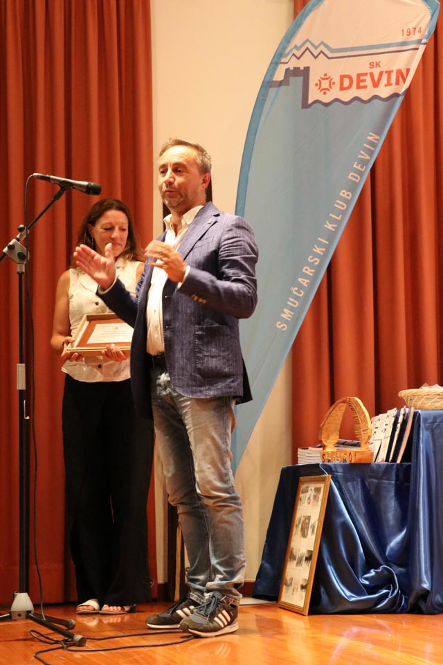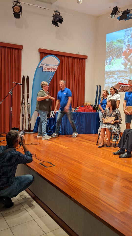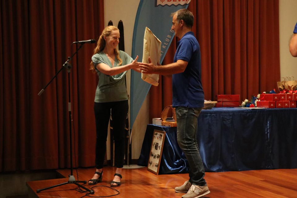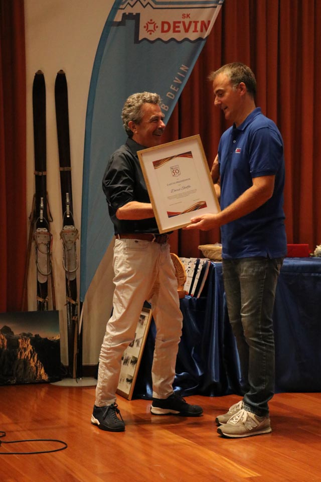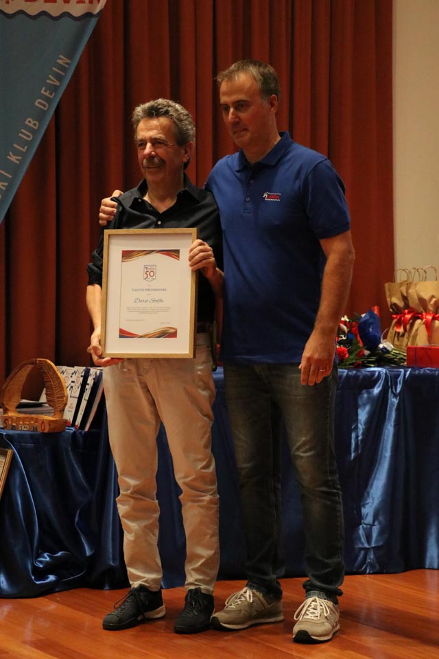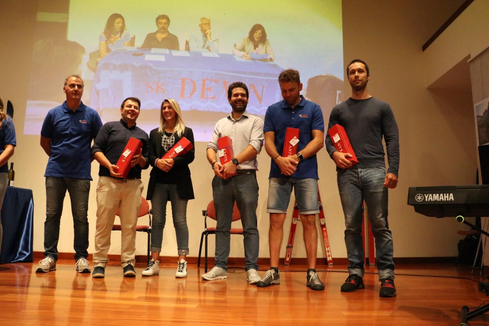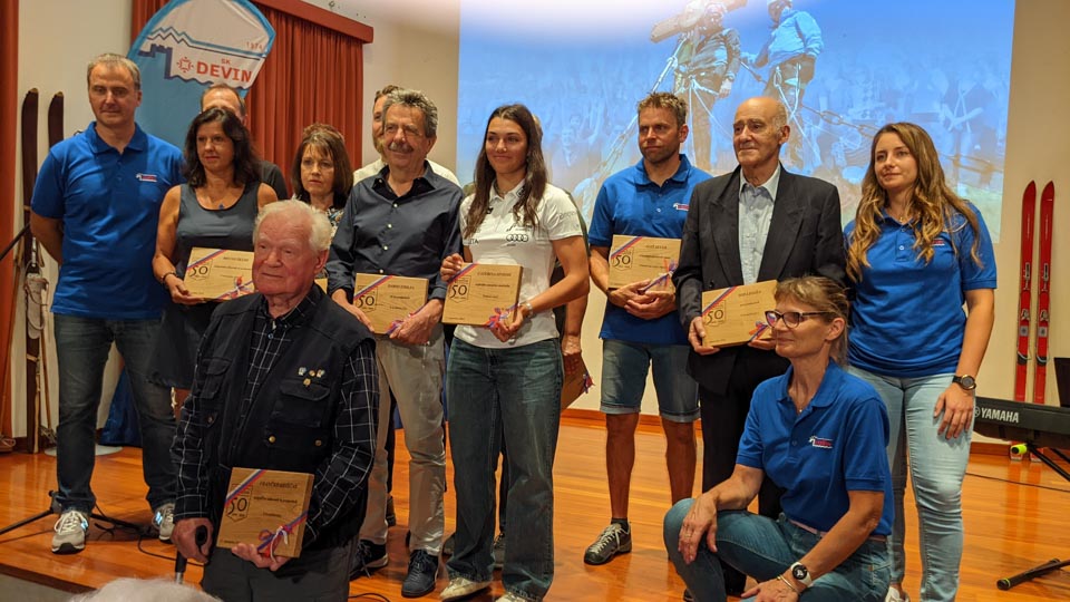Na koncu slavnostnega večera še presenečenje: Častno predsedstvo je letošnji novoizvoljeni odbor podelil Dariu Štolfi, predsedniku SK Devin od leta 2000 do leta 2019, častno članstvo je prejela Nadja Kralj, odbornica in urednica publikacije ob 50-letnici delovanja smučarskega kluba. Nagradili so tudi Marjanko Ban za večletno sodelovanje in lektoriranje knjige, pa še načelnico Planinskega odseka Silvio Callin in športno direktorico Petro Basezzi.