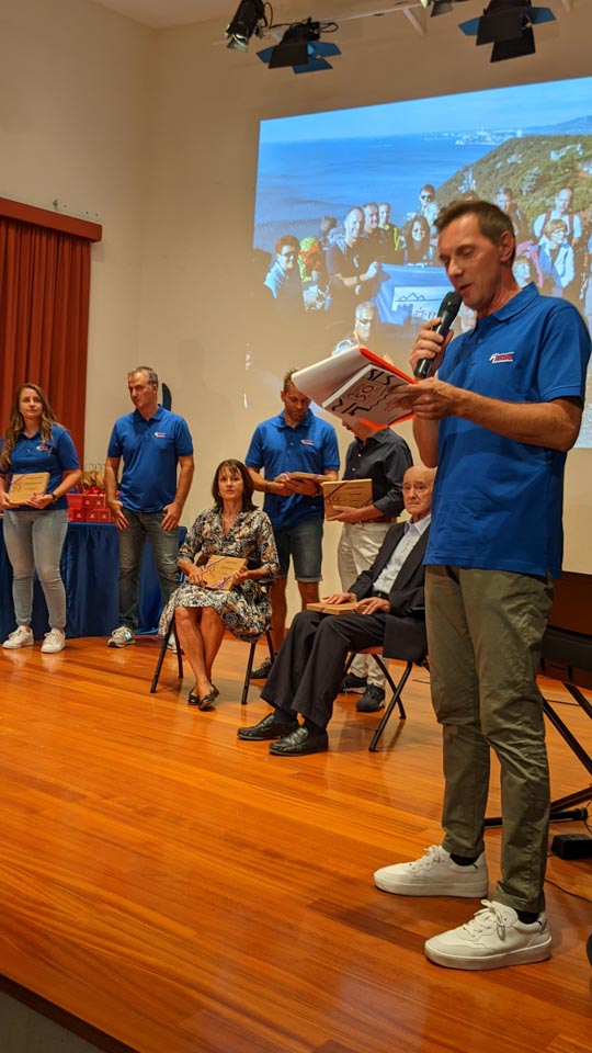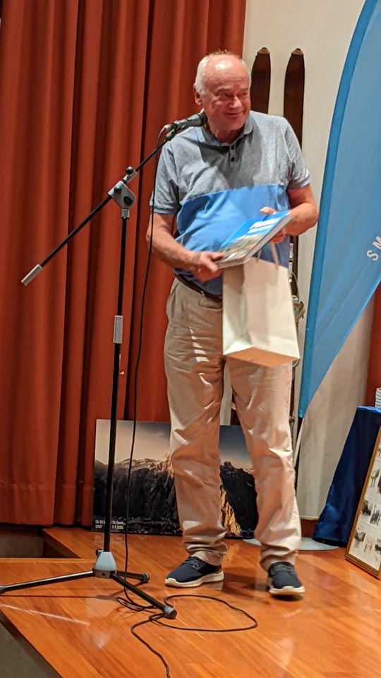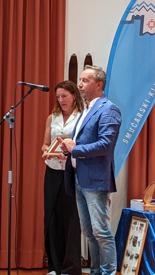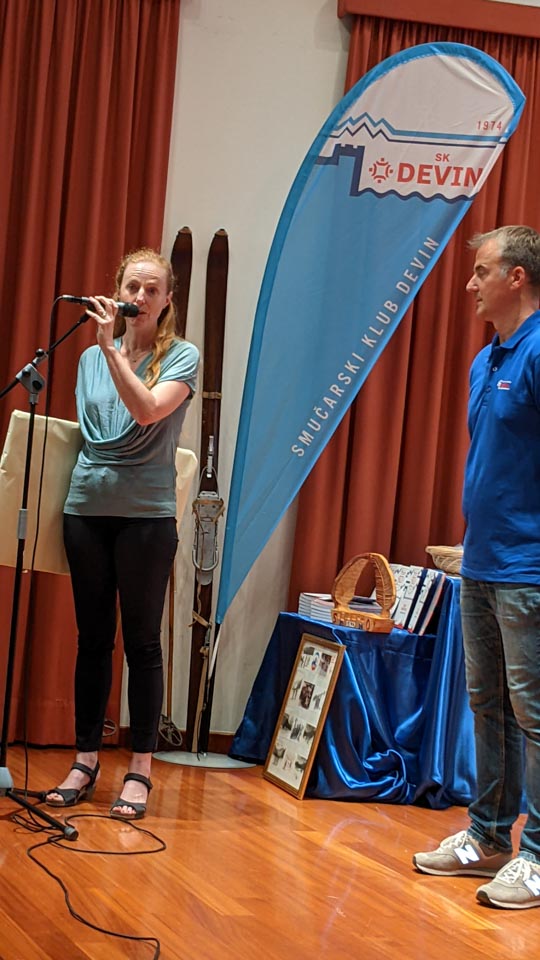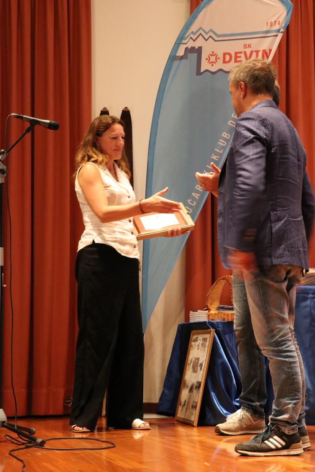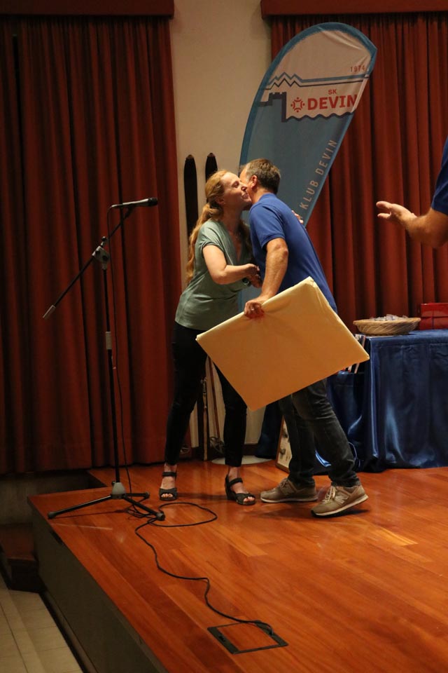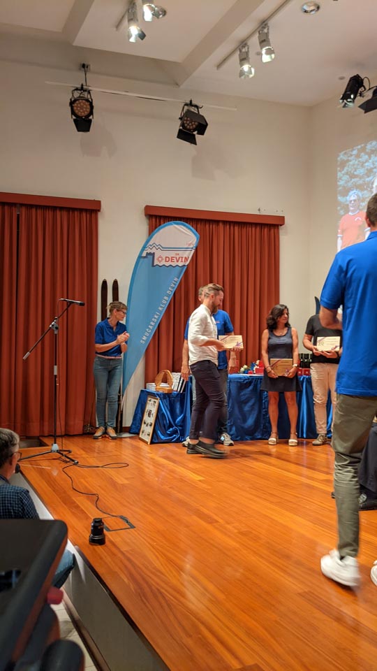 Na koncu slavnostnega večera še presenečenje: Častno predsedstvo je letošnji novoizvoljeni odbor podelil Dariu Štolfi, predsedniku SK Devin od leta 2000 do leta 2019, častno članstvo je prejela Nadja Kralj, odbornica in urednica publikacije ob 50-letnici delovanja smučarskega kluba. Nagradili so tudi Marjanko Ban za večletno sodelovanje in lektoriranje knjige, pa še načelnico Planinskega odseka Silvio Callin in športno direktorico Petro Basezzi.