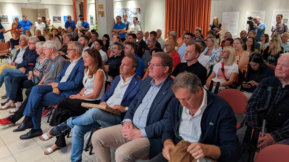 V dvorani Kulturnega društva Igo Gruden v Nabrežini se je v sredo, 11. septembra 2024 zbralo veliko ljudi, od povabljenih gostov, do številnih predstavnikov športnih in prijateljskih društev, članov in prijateljev.