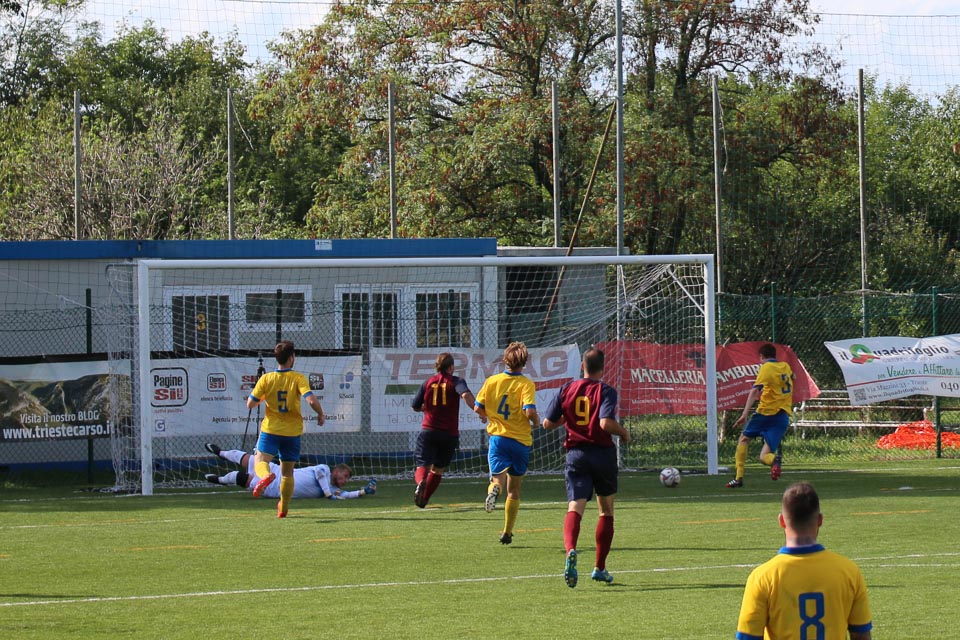 Po izdatni zmagi v prvem krogu proti sesljanski ekipi (6:2) si je tokrat Primorje na proseški Rouni privoščilo še nebogljeno Tarcentino in jo premagalo z visokim 5:0. Kot jasno kaže izid, je bila premoč gostiteljev več kot očitna in vse se je dejansko odločilo že v prvem polčasu, ko je Primorje vodilo s 3:0. Za vodstvo domače ekipe je v 12. minuti poskrbel s pravim “evrogolom”, osem minut pozneje je Metullio povečal izid na 2:0 z enajstmetrovko, ki si jo je prislužil mladi Girardini, gotovo eden najboljših v domačih vrstah. Tretji zadetek je prispeval ostrostrelec Zubin z mojstrskim prostim udarcem. Tekme je bilo že tedaj dejansko konec. Gostitelji so v drugem polčasu upravljali visoko vodstvo in dodali še dva zadetka za okroglih 5:0.