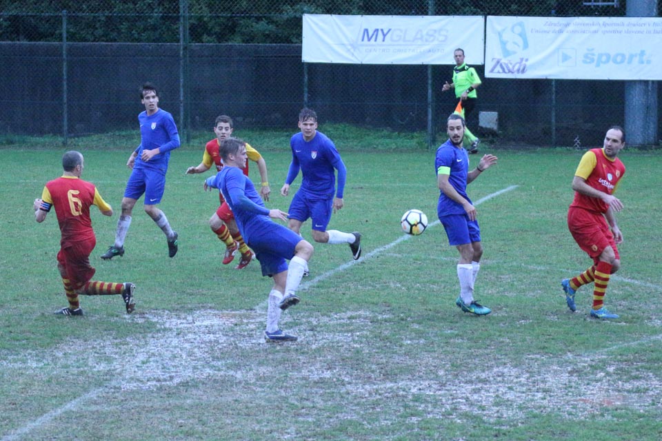 Proseško Primorje je pred 500 gledalci v Križu, ki so kljub slabemu vremenu prišli navijat za obe ekipi, premagalo domačo Vesno in ohranilo prvo mesto na lestvici. Neodločen izid bi bil gotovo pravičnejši, saj so gostitelji po prvem izenačenem polčasu zamudili vsaj pet zelo zrelih priložnosti za gol in zadeli vratnico. Treh točk pa so se na koncu veselili gostje, ki so svoj zadetek dosegli povsem naključno. Manjkalo je deset minut do konca srečanja, ko je Tomizza podal v globino proti kriškim vratom, vratar Donno je stekel proti nenavarni žogi. Pa zdrsnilo se mu je na mokrem terenu, žogo je na skrajni levi strani kazenskega prostora prestregel izkušeni Zubin, ki jo je iz težkega položaja usmeril v mrežo. Bila je to hladna prha za domače igralce in gledalce. Vesna se je nato “odprla” v obrambi, da bi skušala vsaj izid izenačiti. Primorje je imelo v pritnapadu vsaj eno stoodstotno priložnost, da bi doseglo še drugi zadetek. Pporaz z dvema goloma razlike pa bi bil zares prehuda kazen zad domače moštvo.