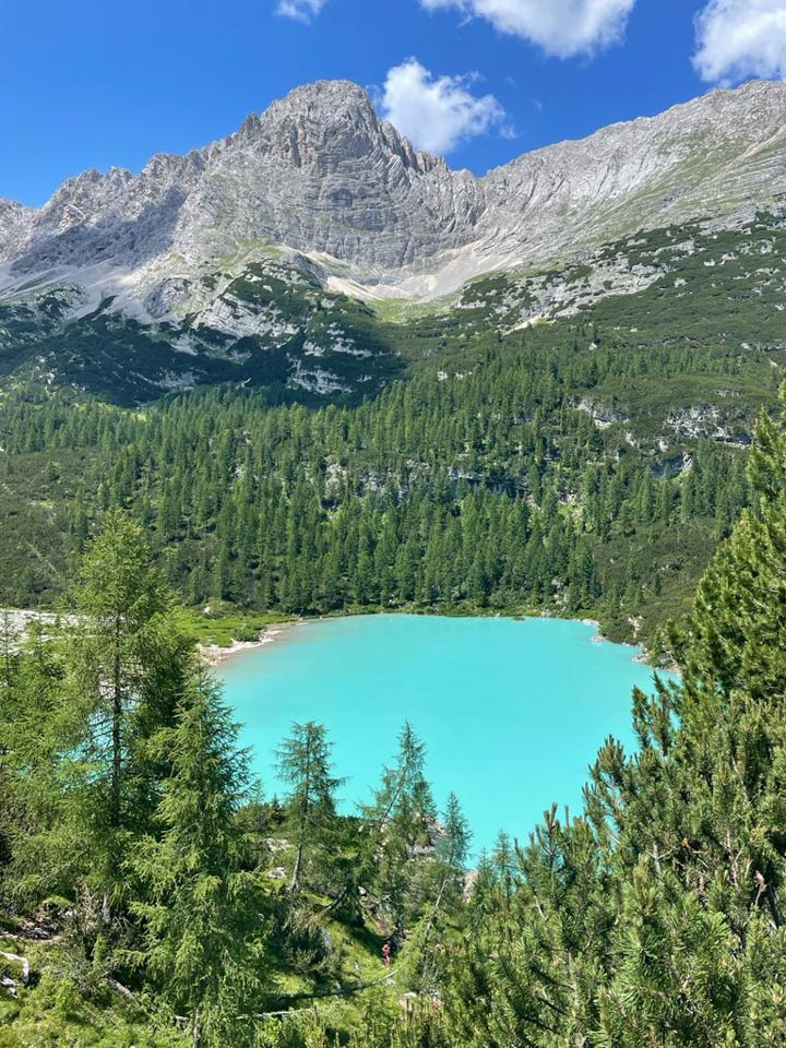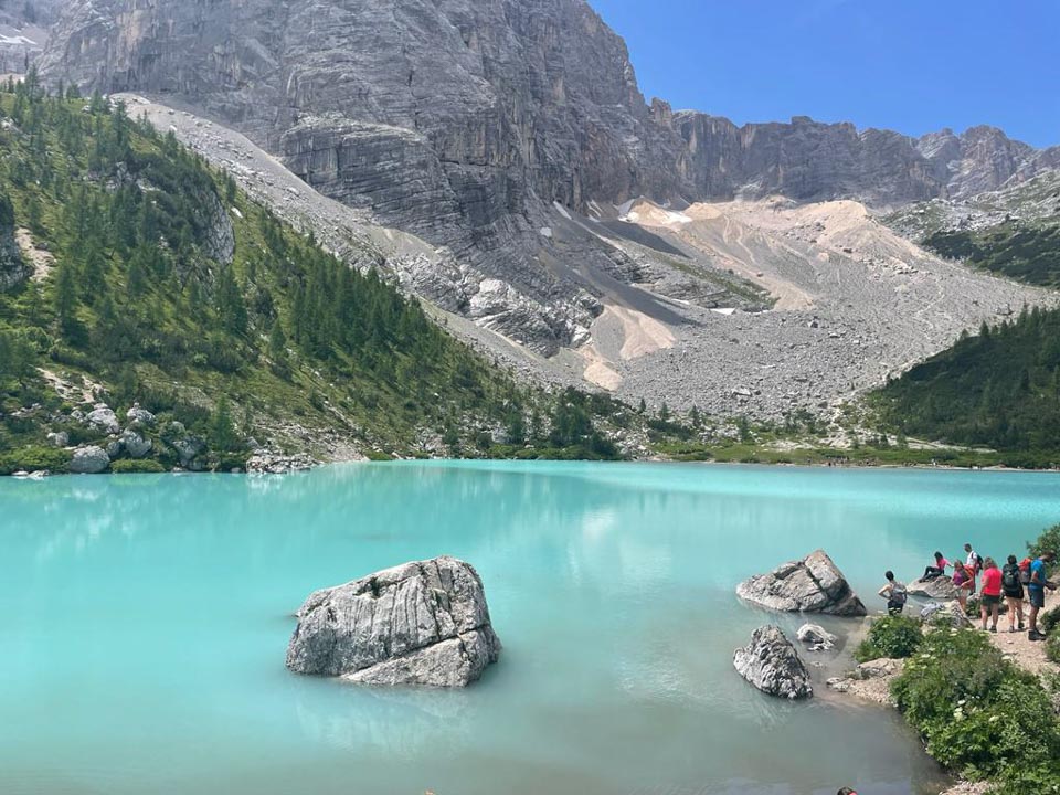 Kar 32 planincev se je v nedeljo, 9. julija 2023 z dvema društvenima kombijema in osebnimi avtomobili že v zgodnjih jutranjih urah zbralo v Devinu ter se odpeljalo razmeroma daleč, tokrat do prelaza Tre Croci (1805 m nmv) nad Cortino v Dolomitih za ogled jezera Sorapis (1926 nmv).