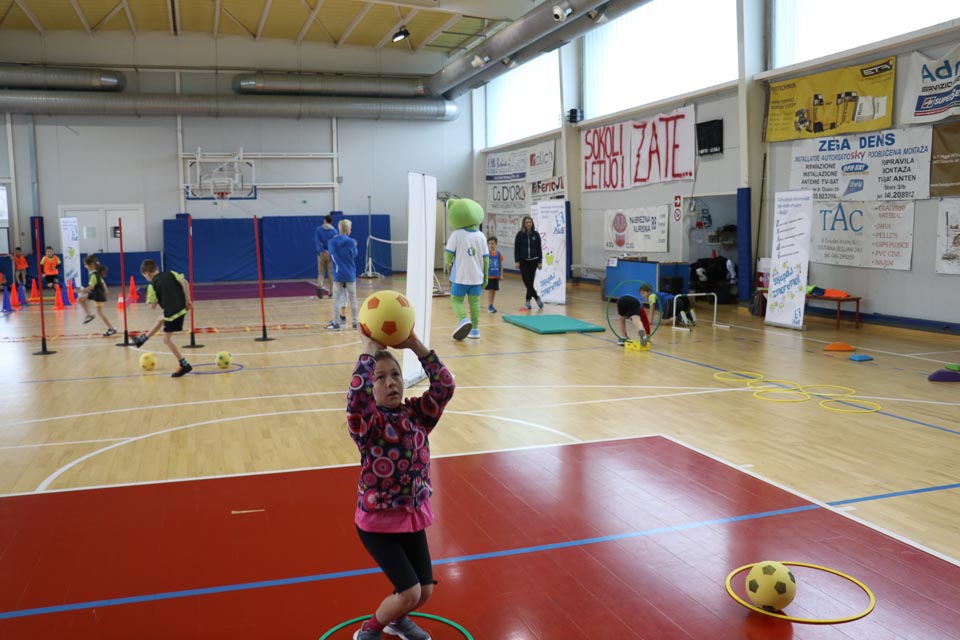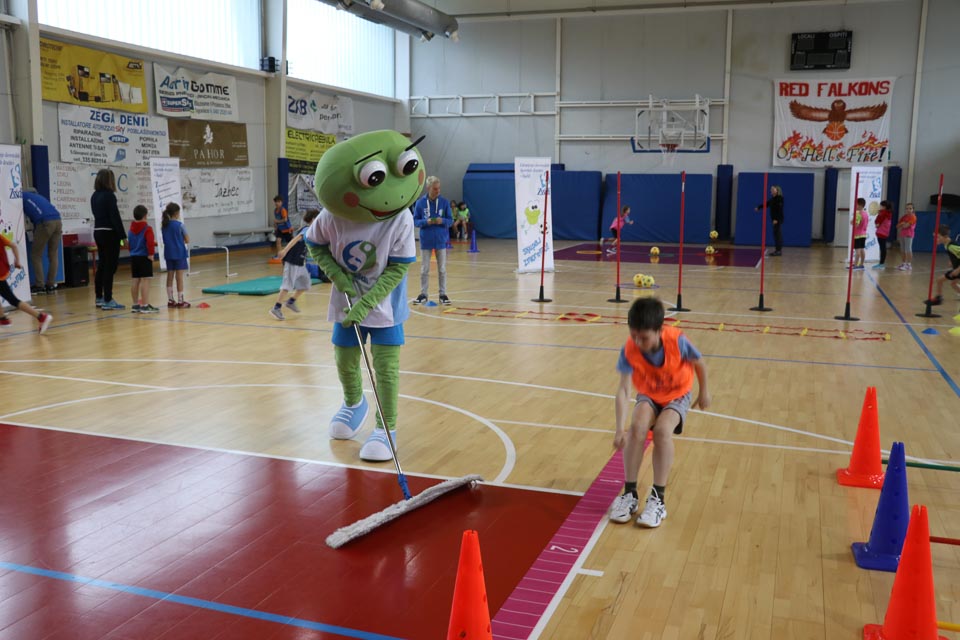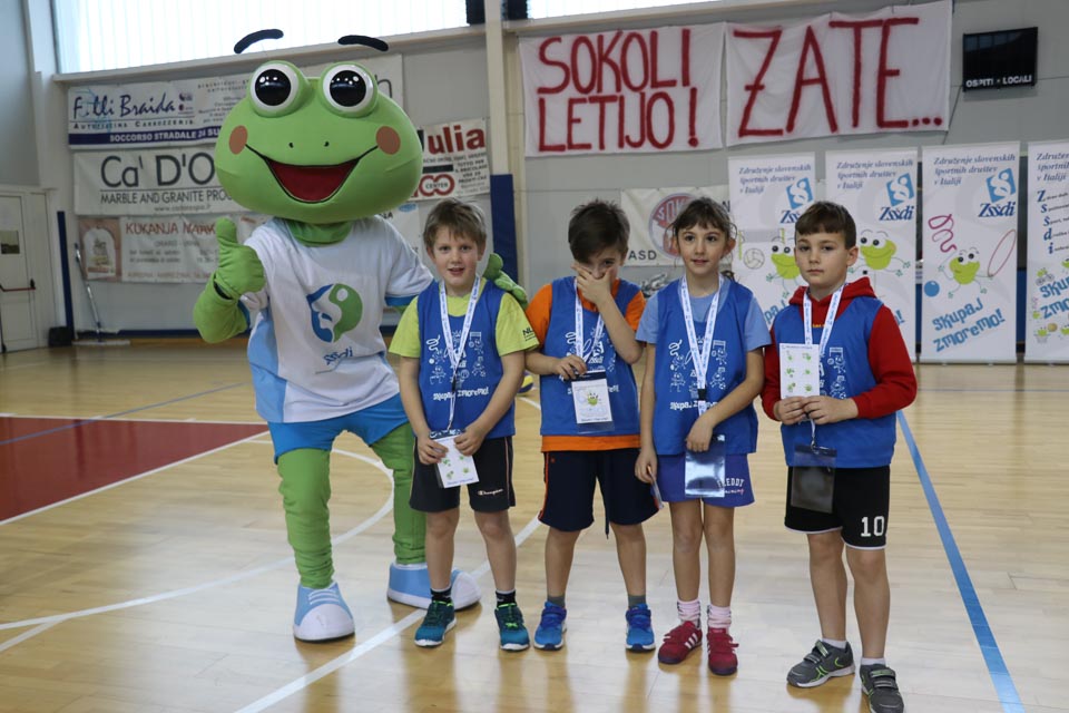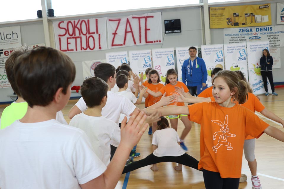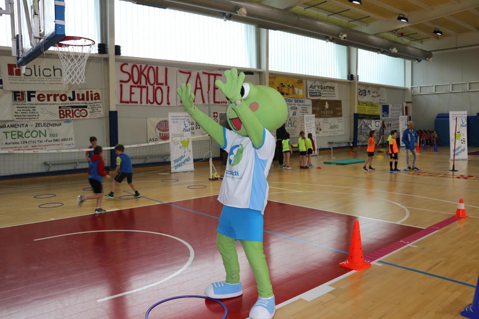 NABREŽINA – Kljub snežnim vremenskim razmeram, se je v občinski telovadnici v Nabrežini, v organizaciji ZSŠDI, uspešno odvijala šesta etapa Skokičinega vrtiljaka, na kateri je sodelovalo približno 90 učencev osnovnih šol nabrežinskega ravnateljstva. Prisotni so bili učenci o.š. Josipa Jurčiča v Devinu, o.š. Stanka Grudna v Šempolaju, o.š. 1. maja 1944 v Zgoniku in Vergila Ščeka v Nabrežini. Tretješolci so sodelovali pri krožni vadbi na šestih različnih postajah, med katerimi je bila ena jezikovna, četrto in petošolci pa na turnirju med dvema ognjema. Z učenci se je krožne vadbe udeležila tudi žabica Skokica, maskota slovenskega športa v Italiji.