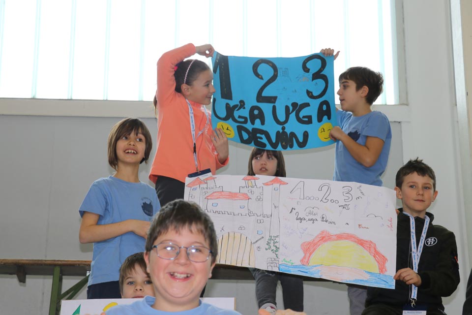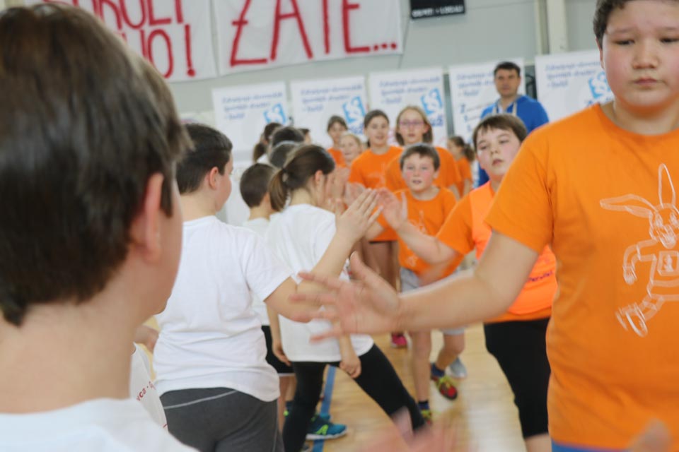 Pred zaključnim nagarjevanjem je približno 60 učencev četrtih in petih razredov, pod vodstvom mentorice Kristine Žerjal, zaplesalo po notah himne Skupaj zmoremo.
