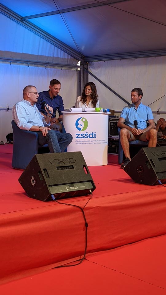 V šotoru na Trgu sv. Antona so se tako zbrali nekateri še živeči akterji slovenskega športa, ki so v dresu italijanskih reprezentanc nastopili v številnih panogah. Nekateri med njimi so prišli tudi na oder in ob obujanju spominov odgovarjali na vprašanja voditeljev Evgena Bana in Nicole Rende. Za popestritev srečanja je poskrbela glasbena skupina One shot, ki je prisotne popeljala v svet slovenske in italijanske športne popevke.
