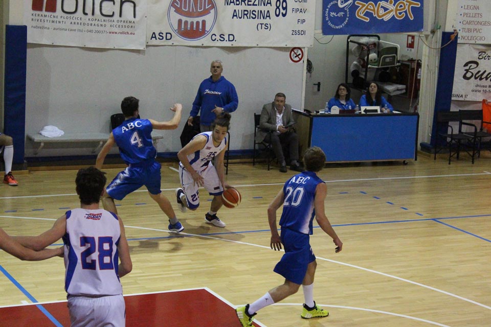 Tudi proti drugi ekipi, ki je nastopala v prvenstvu “eccellenza”, so jadranovci izgubili. Nasprotniki so se predstavili v nabrežinsko telovadnico s samo sedmimi igralci in so se tako skozi vso tekmo postavili v consko obrambo. Domači igralci so napadali proti coni prepočasno in veliko so metali iz razdalje s slabimi odstotki. Tekma je bila izenačena, po dobrem začetku domačih so gostje stalno vodili, čeprav z minimalno razliko. Zadnjo četrtino je Cervignano dosegel tudi 9 točk prednosti, ki so jadranovci le delno nadoknadili.