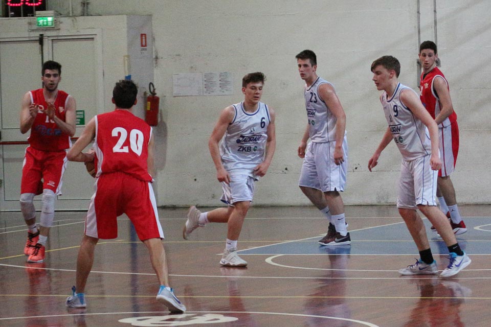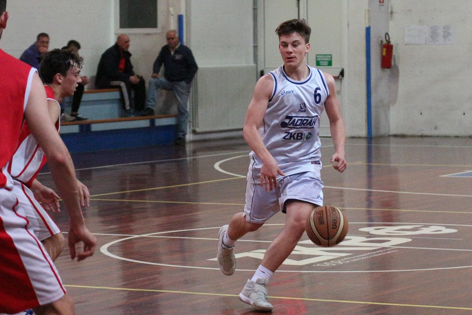 JADRAN: Grgič nv, G. Terčon 8, P. Zettin 10, Furlan 9, D. Zettin 9, Del Fabbro nv, Ferfolja 5, I. Terčon nv, Škrk 2, Štoka nv, Tulliach, Cettolo 11; trener Švab.