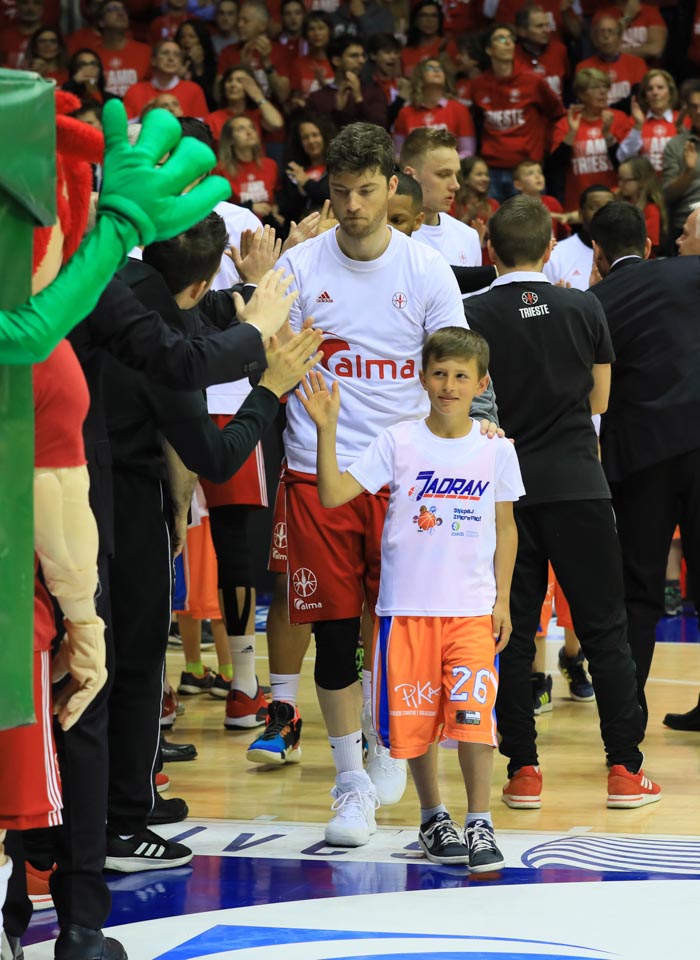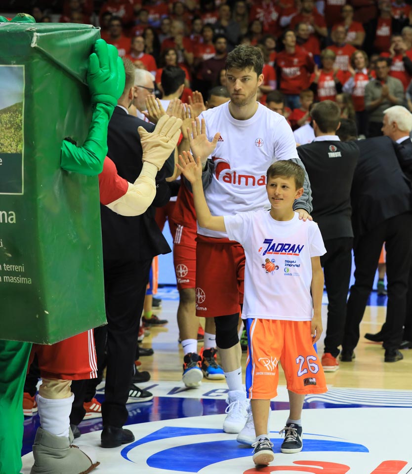 Jadranova in odprava ZSŠDI (odborniki, sponzorji in minikošarkarji) si je nato ogledala prvoligaško tekmo, na kateri pa so, žal, košarkarji Alme visoko izgubili proti Sassariju s 65:86.