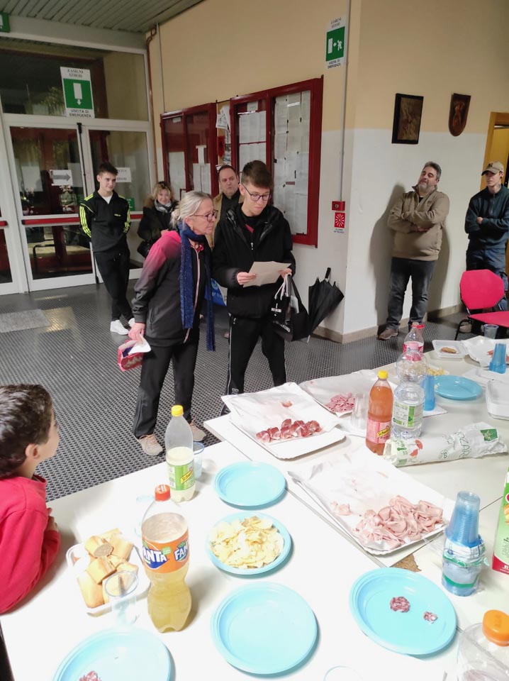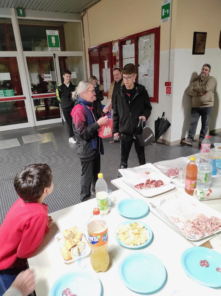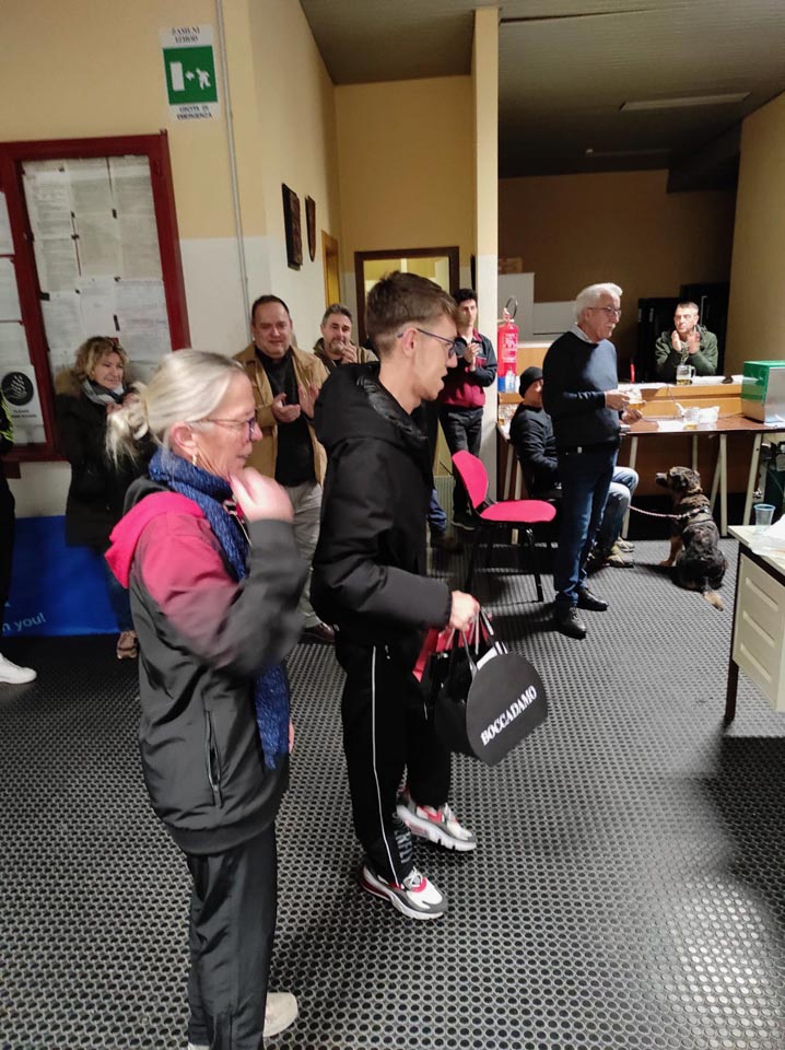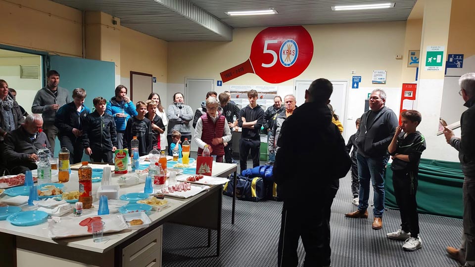 Po vseh sobotnih tekmah je Kras pripravil presenečenje in v zgoniški telovadnici nagradil Mattea Parenzana za osvojen svetovni naslov pri paralimpijcih v razredu 6, njegova družina pa je pripravila zakusko, ki so jo vsi prisotni cenili in okusili.