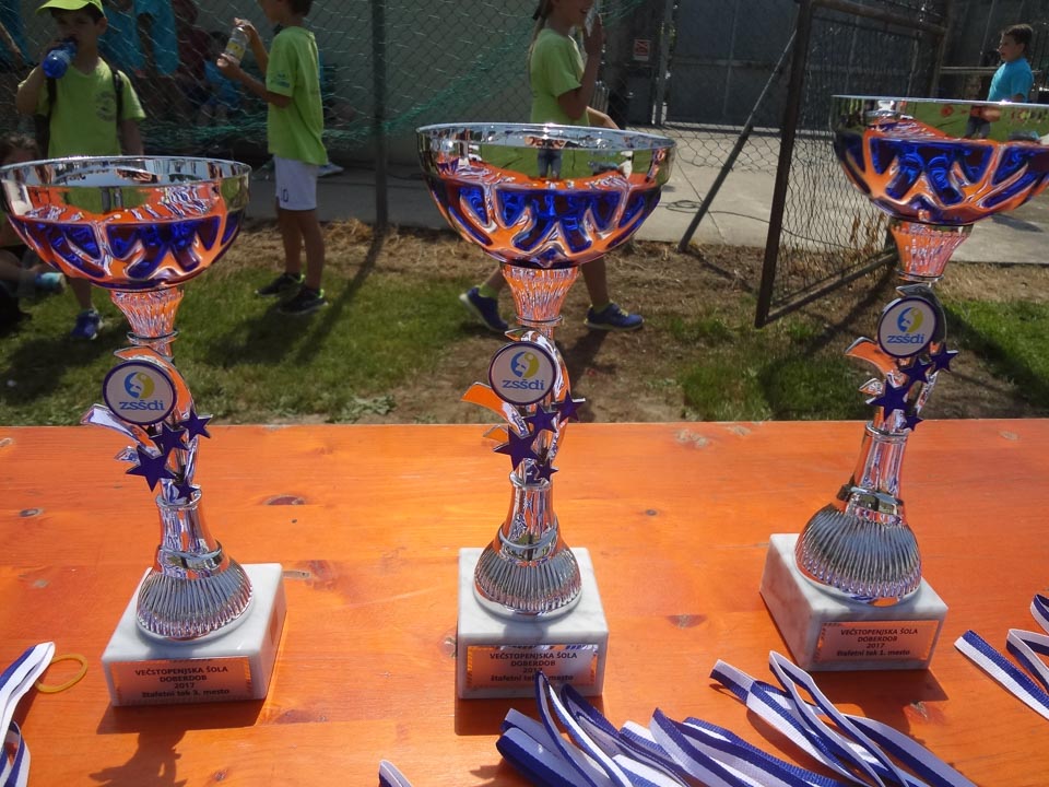Učenci prvih in drugih razredov so tekmovali v poligonu in v teku na razdalji 150 m; na voljo so imeli tudi tri krožne postaje, na katerih so metali na koš, preizkusili netekmovalni poligon in igrali skupinsko igro napad na trdnjavo (igra, ki sloni na metanju žoge čez odbojkarsko mrežo). Učenci trienija so se preizkusili v metu vortexa, skoku v daljino z mesta in v poligonu. Športni dopoldan se je zaključil s štafetnimi teki, ki jih že tradicionalno spremlja bučno navijanje vseh učencev. Med nastopajočimi šesterkami je zmagala ekipa Doberdoba 1, pred Vrhom 1 in Romjanom 1.