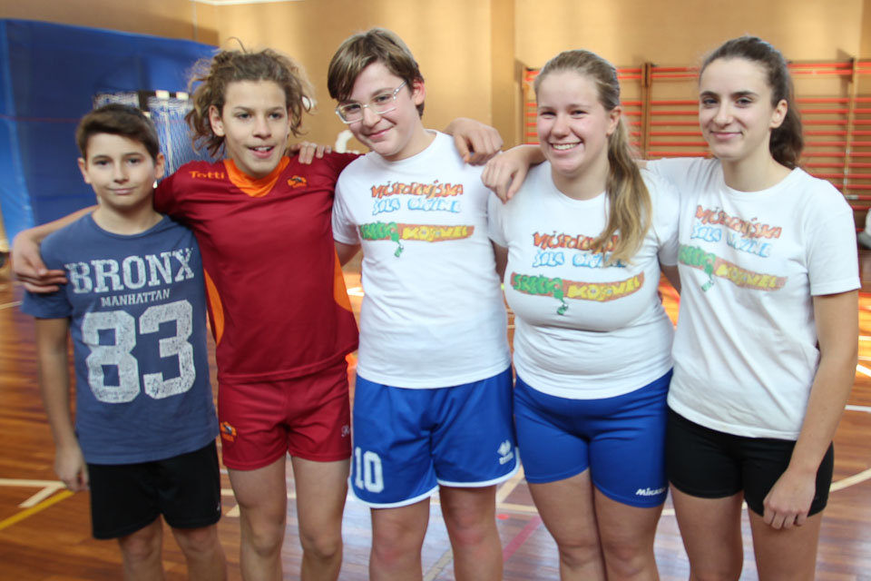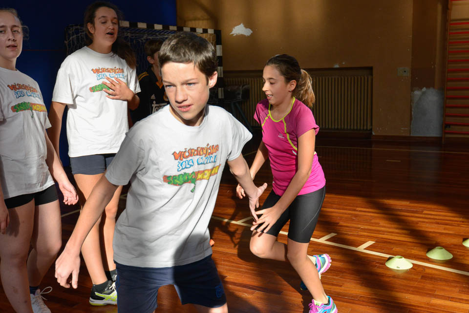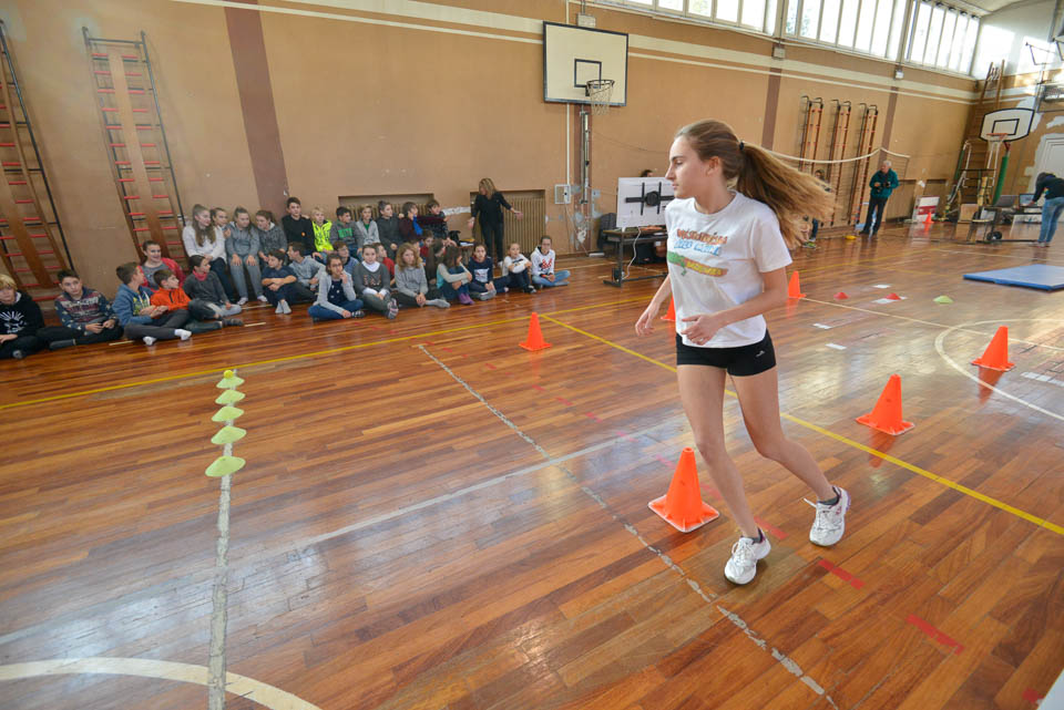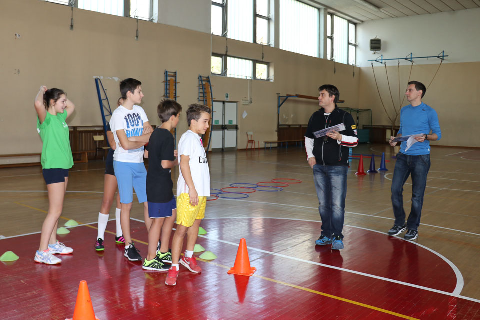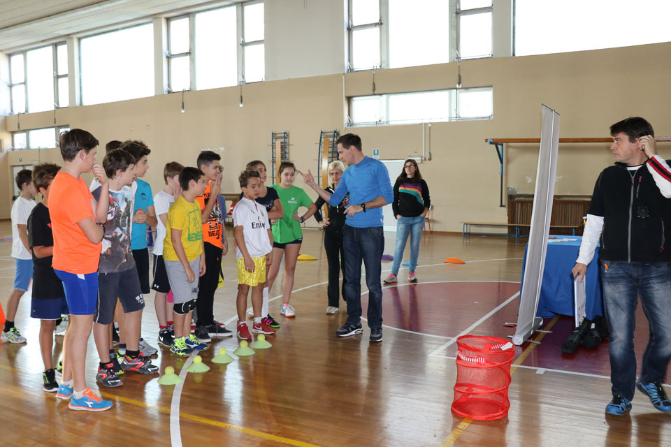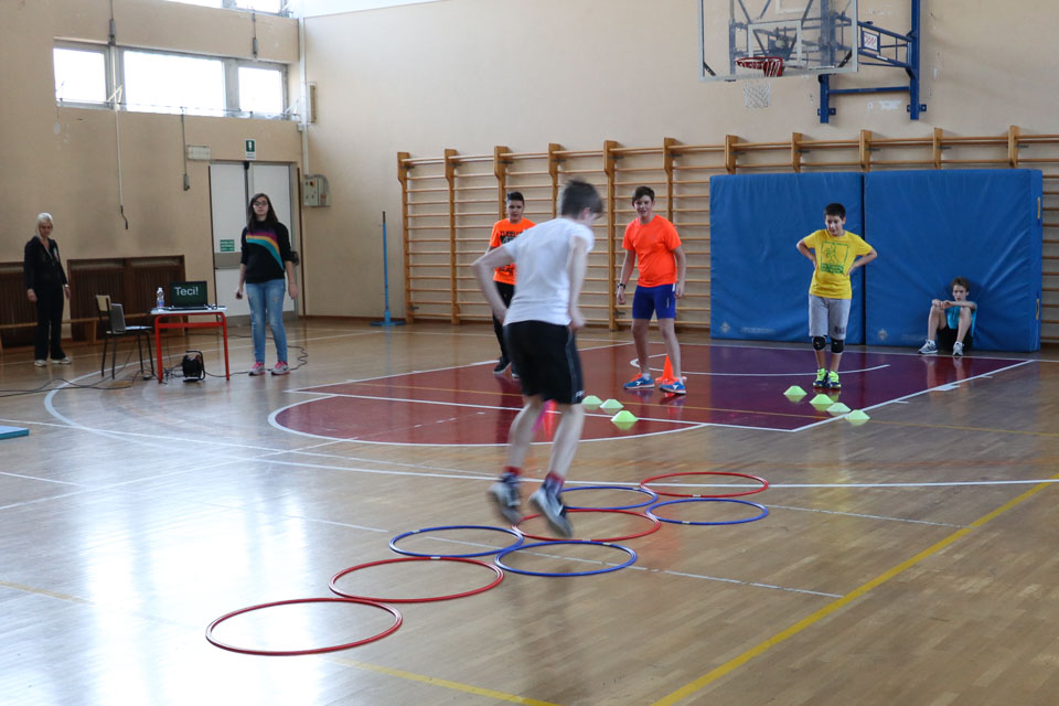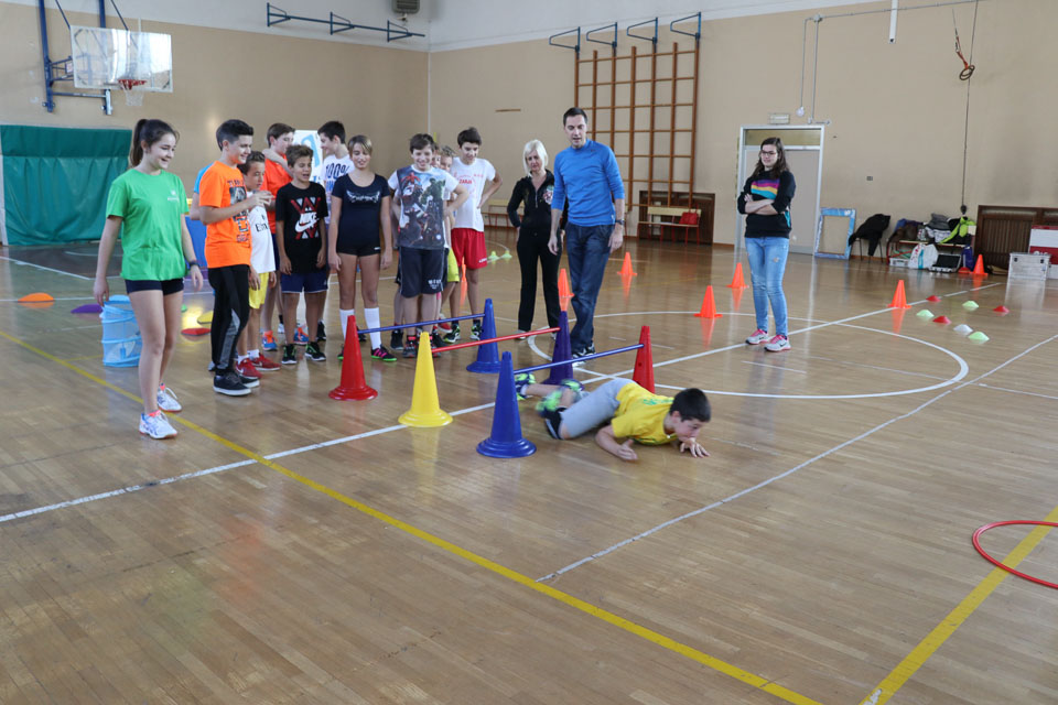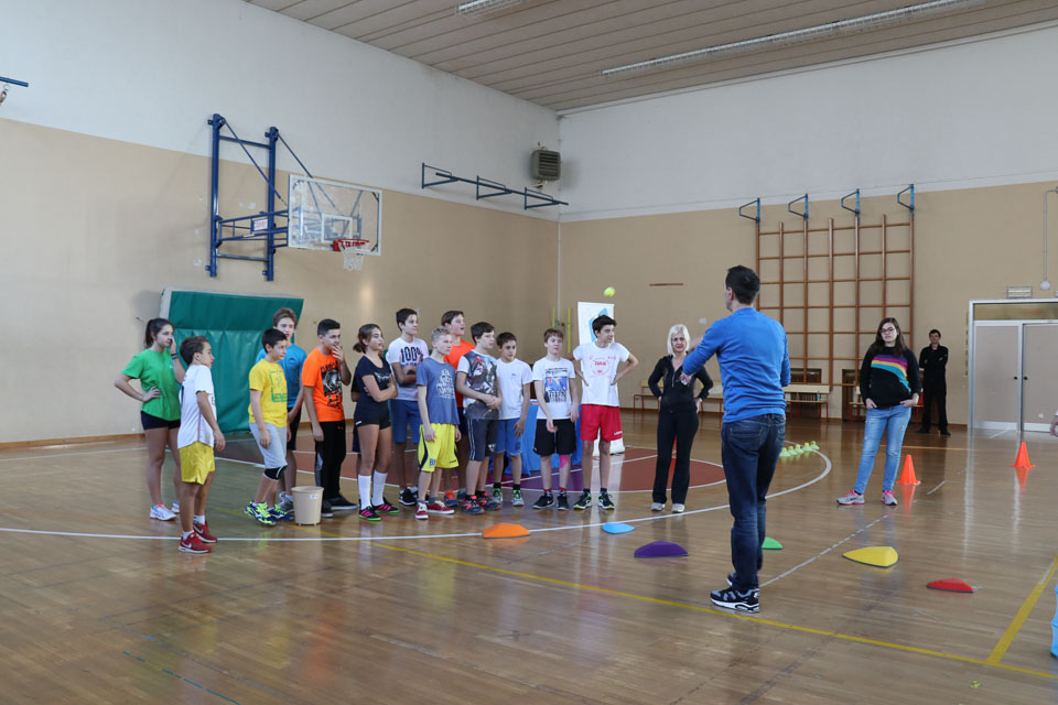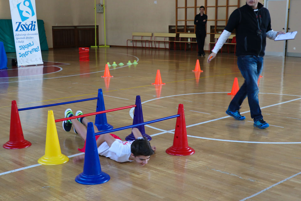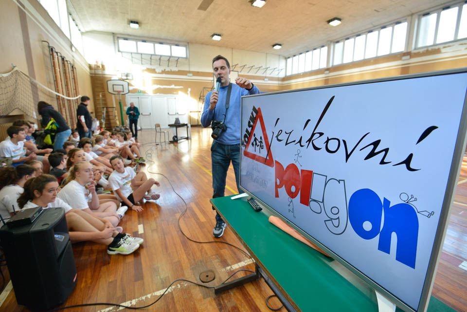 OPČINE -Nadaljuje se šolski Jezikovni poligon. Športno-jezikovna pobuda, ki jo prireja Združenje slovenskih športnih društev v Italiji v sodelovanju s SLORI-jem, je tokrat prispela na Nižjo srednjo šolo Srečka Kosovela na Opčinah in Cirila in Metoda iz Katinare.