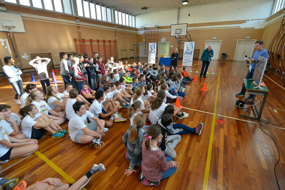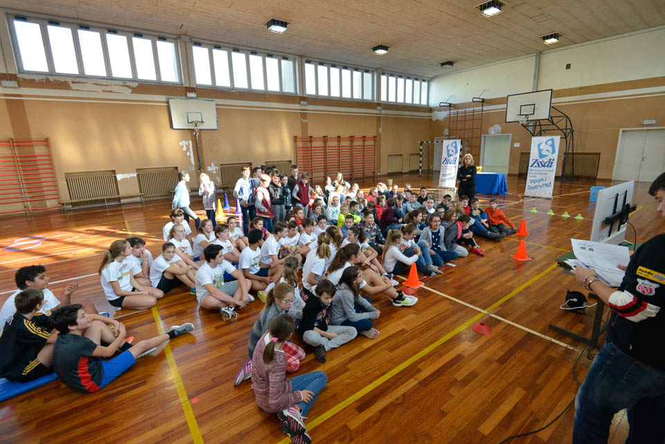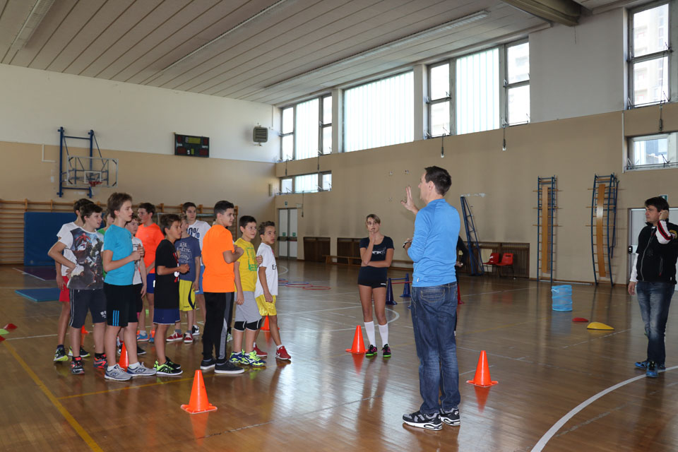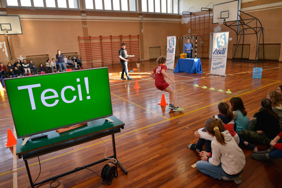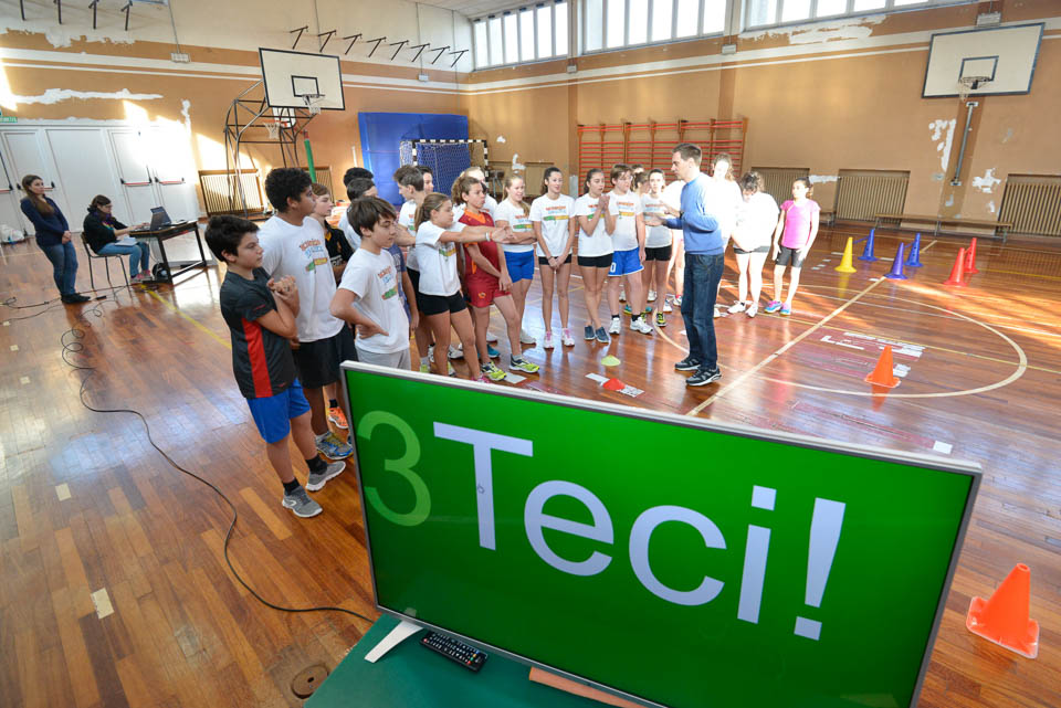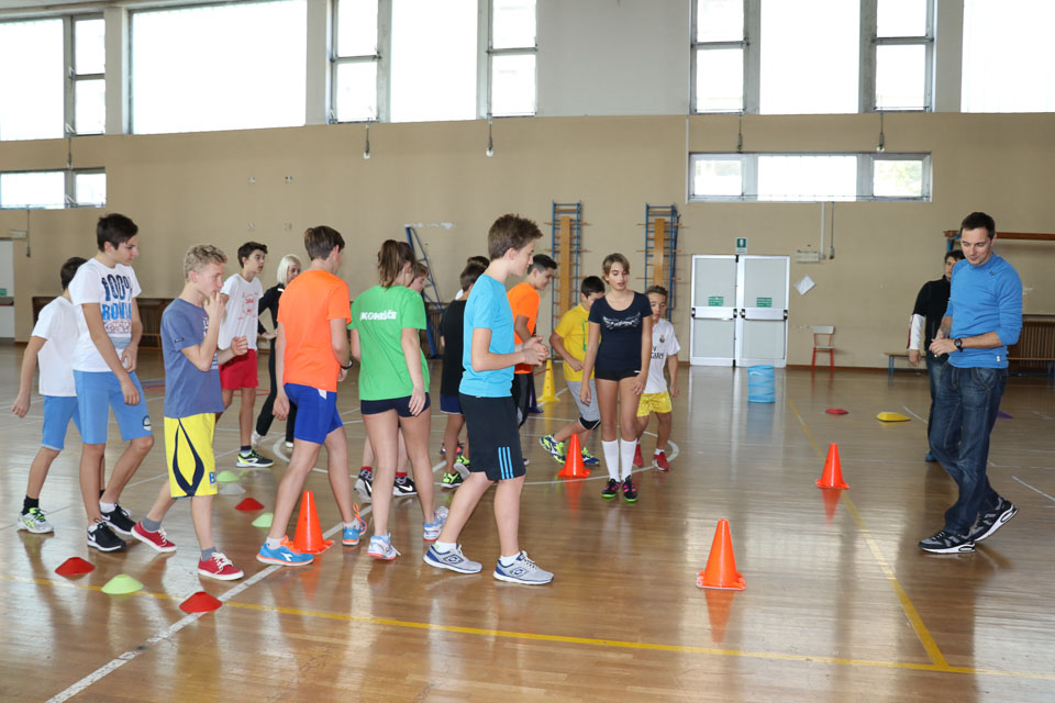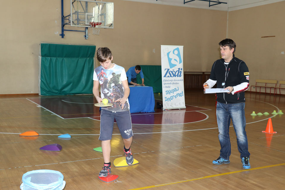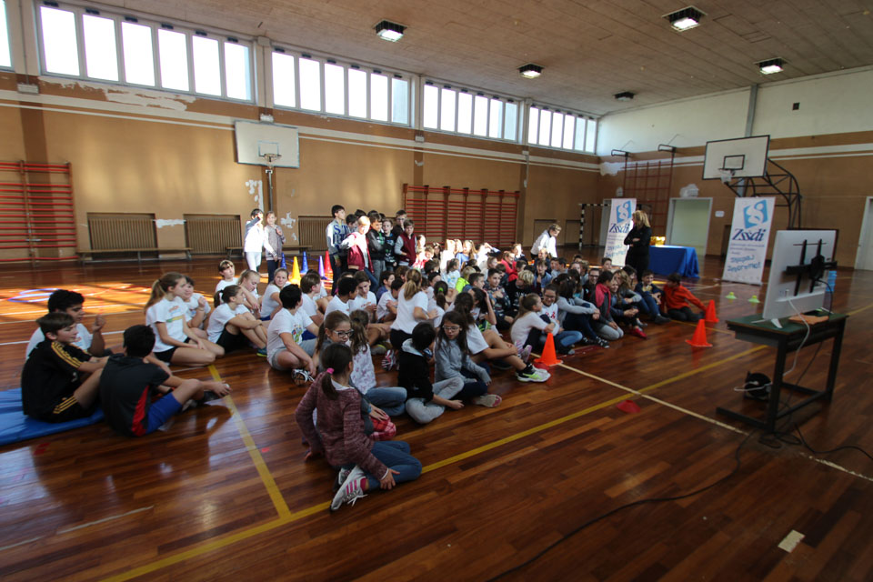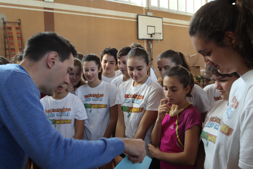 OPČINE -Nadaljuje se šolski Jezikovni poligon. Športno-jezikovna pobuda, ki jo prireja Združenje slovenskih športnih društev v Italiji v sodelovanju s SLORI-jem, je tokrat prispela na Nižjo srednjo šolo Srečka Kosovela na Opčinah in Cirila in Metoda iz Katinare.