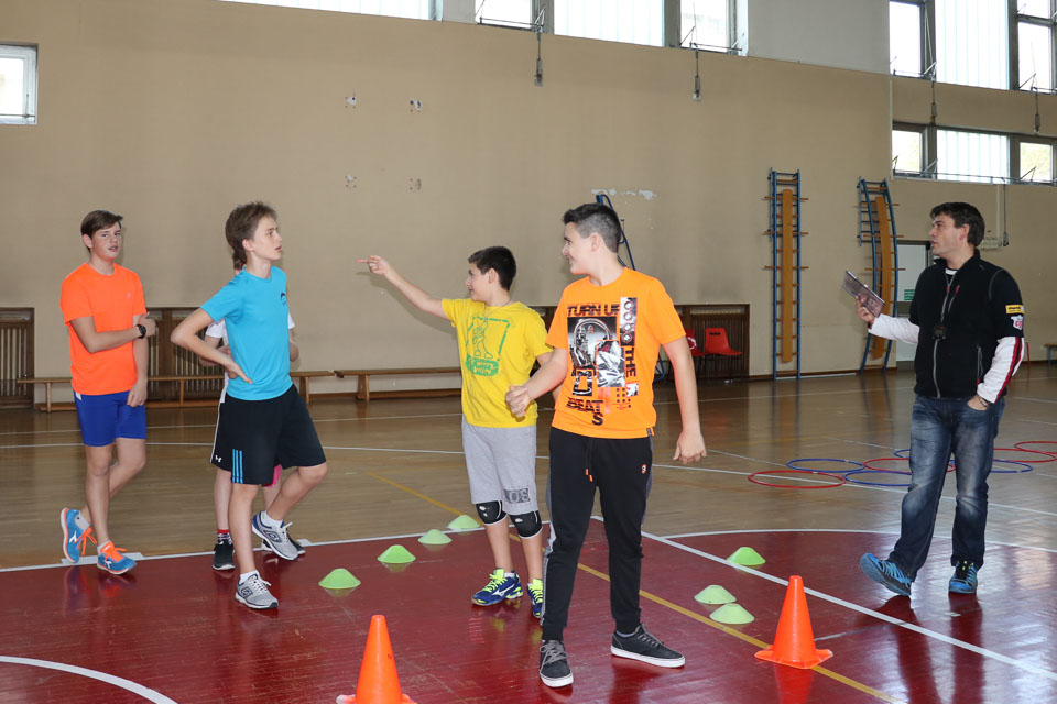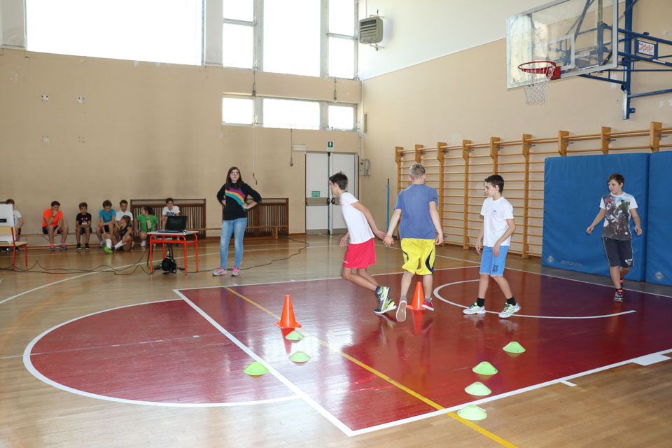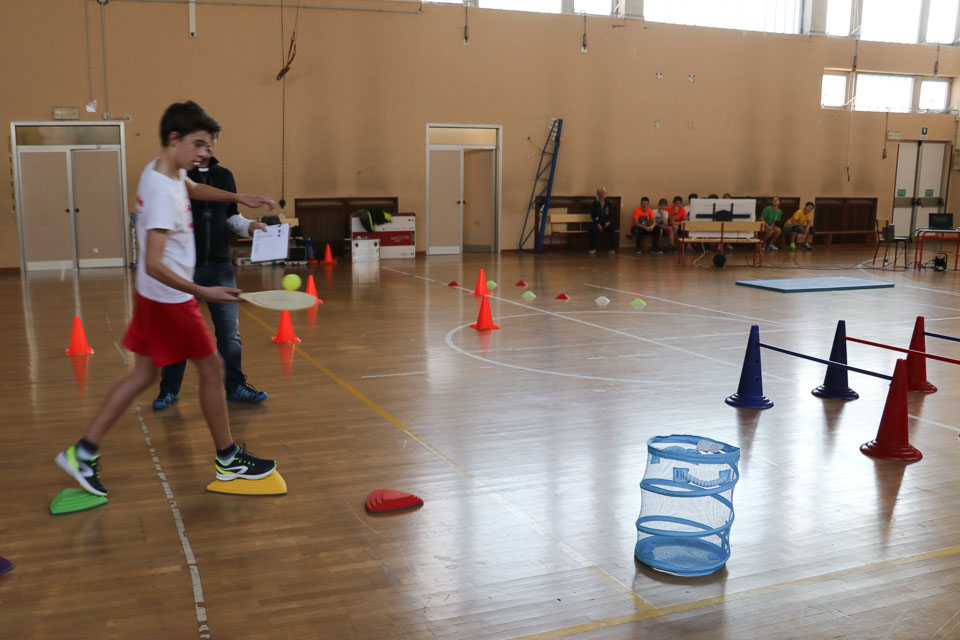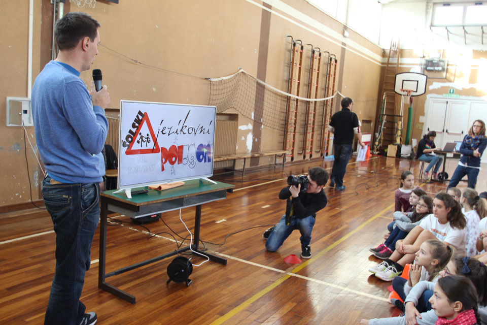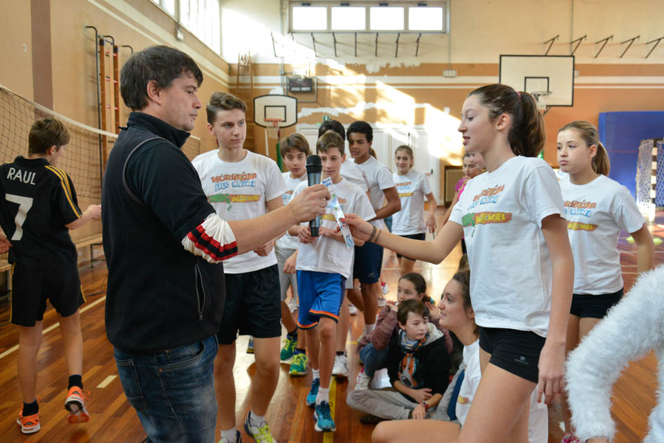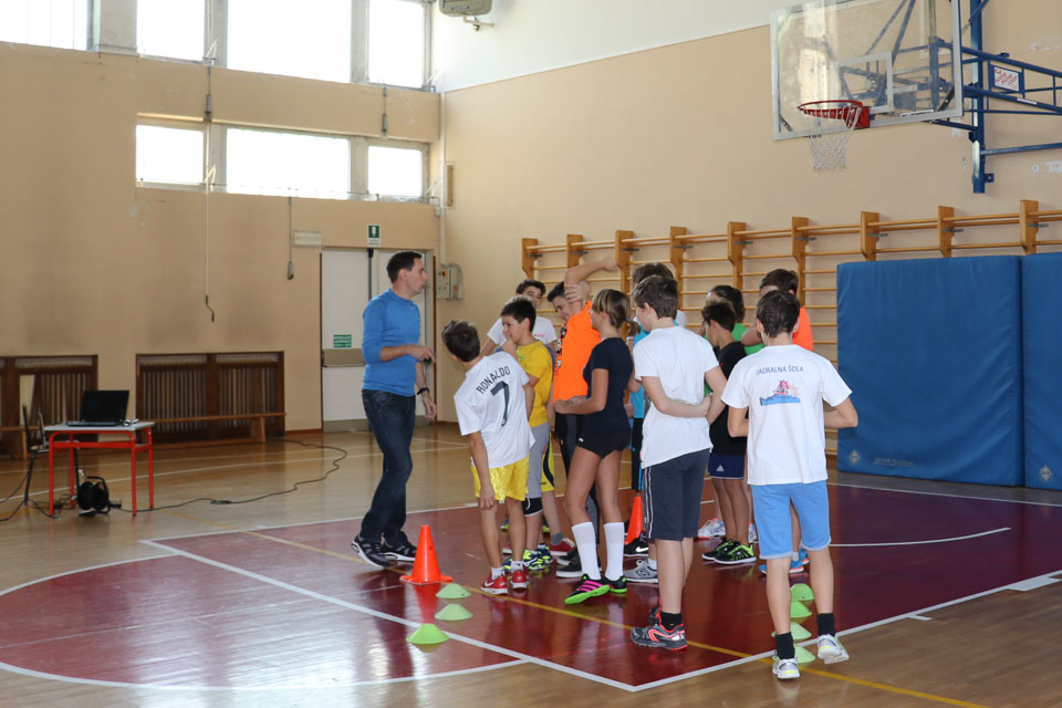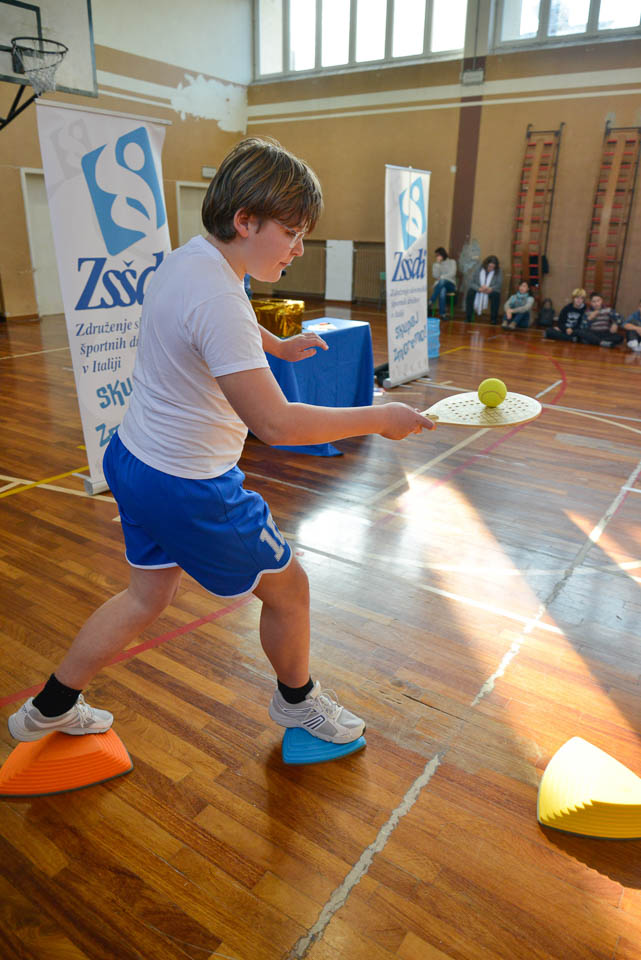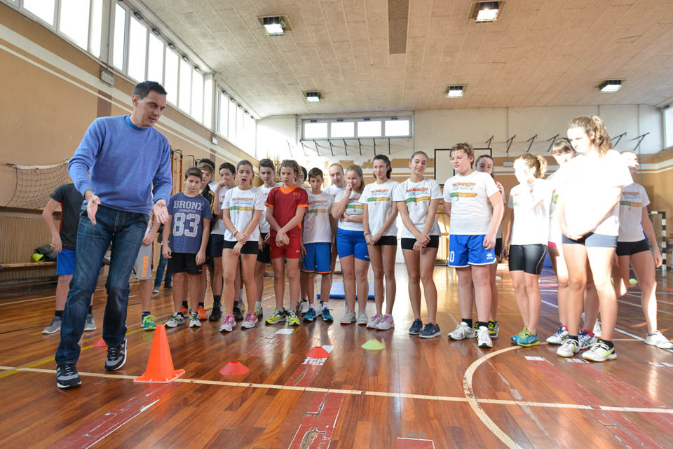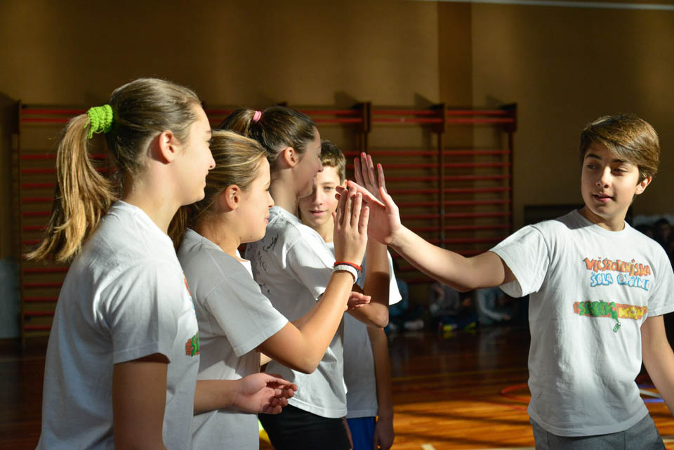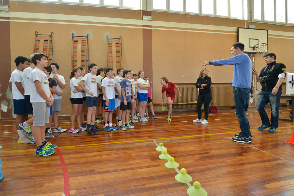 OPČINE -Nadaljuje se šolski Jezikovni poligon. Športno-jezikovna pobuda, ki jo prireja Združenje slovenskih športnih društev v Italiji v sodelovanju s SLORI-jem, je tokrat prispela na Nižjo srednjo šolo Srečka Kosovela na Opčinah in Cirila in Metoda iz Katinare.