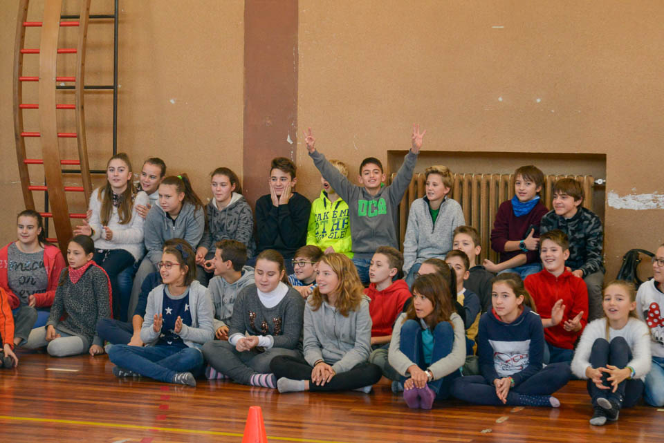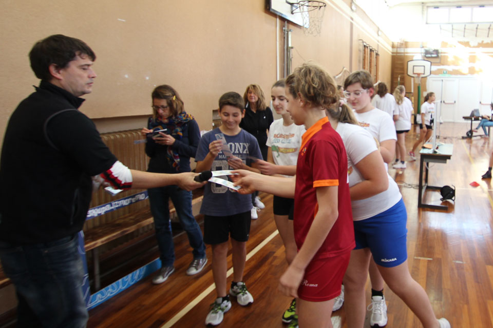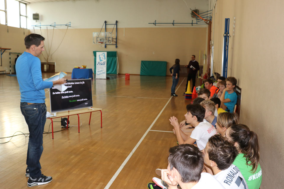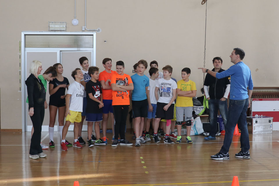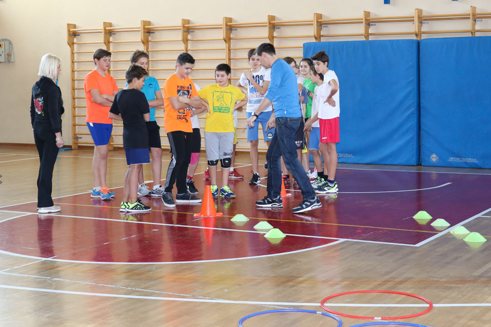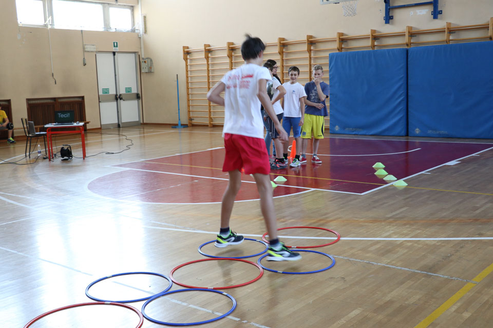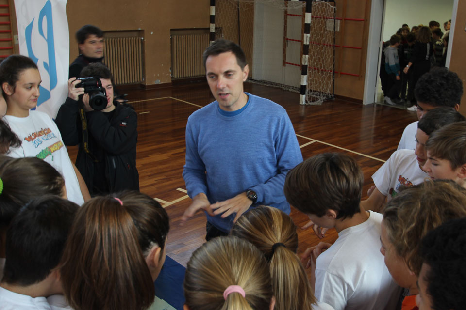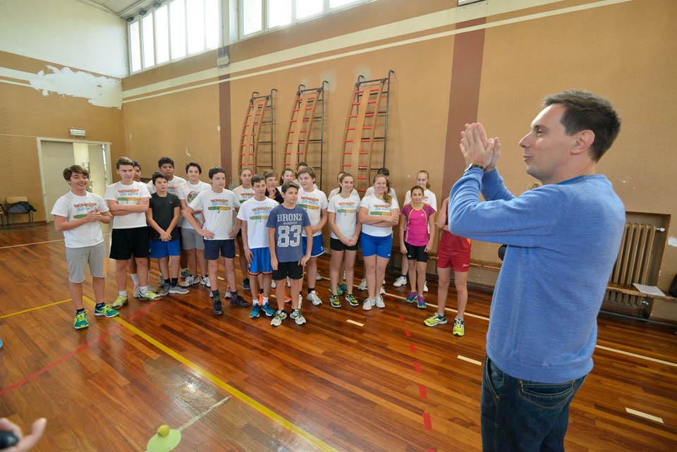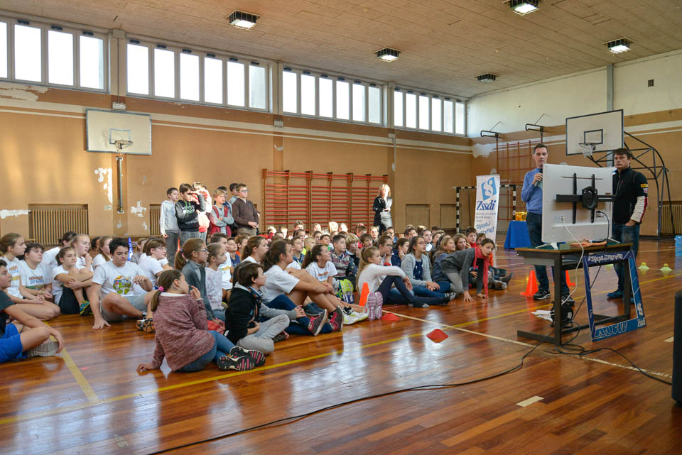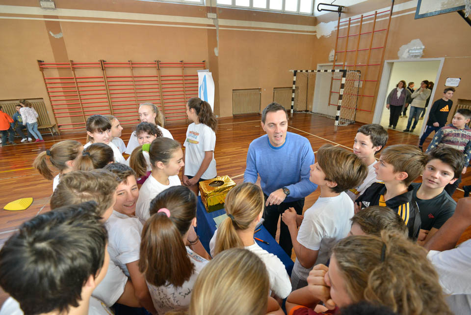 OPČINE -Nadaljuje se šolski Jezikovni poligon. Športno-jezikovna pobuda, ki jo prireja Združenje slovenskih športnih društev v Italiji v sodelovanju s SLORI-jem, je tokrat prispela na Nižjo srednjo šolo Srečka Kosovela na Opčinah in Cirila in Metoda iz Katinare.