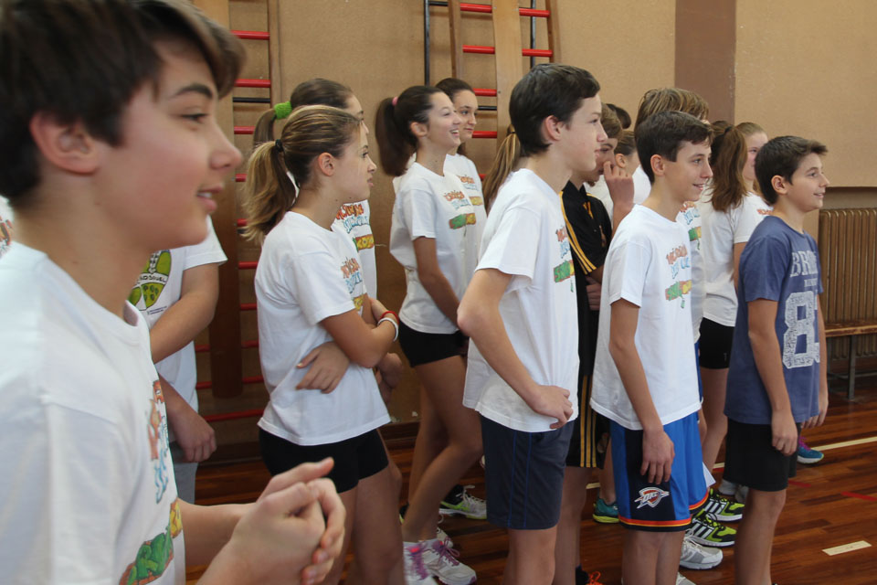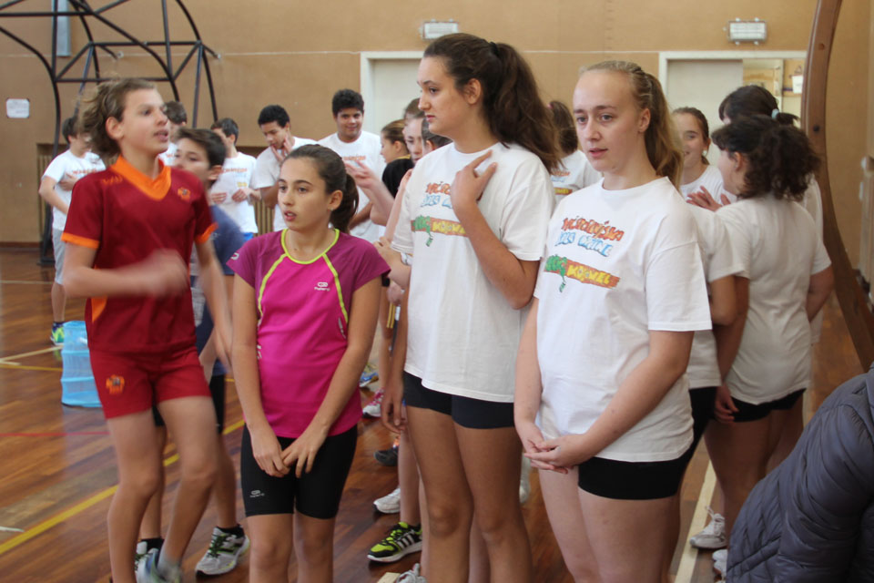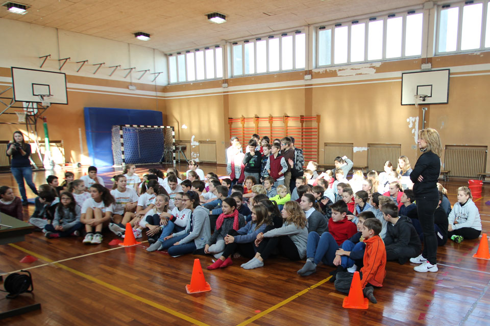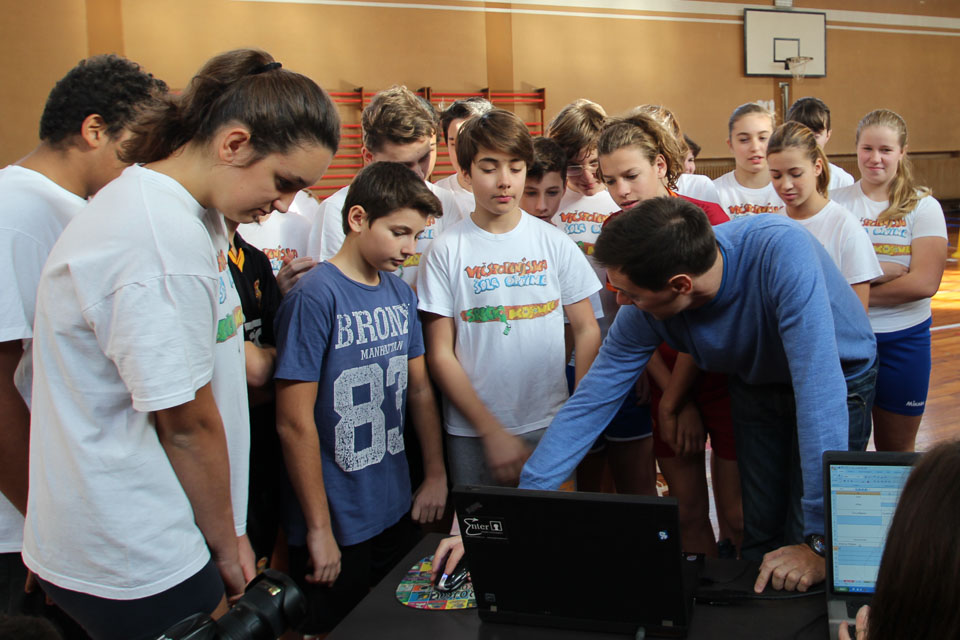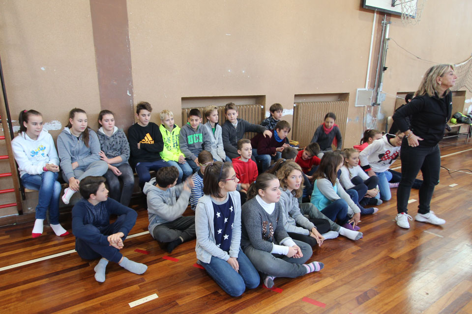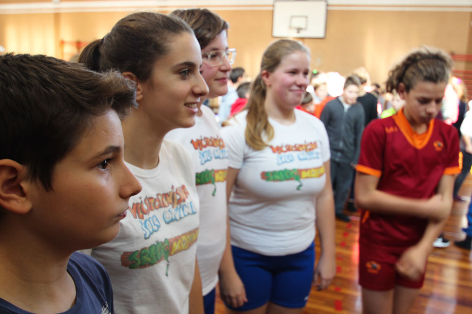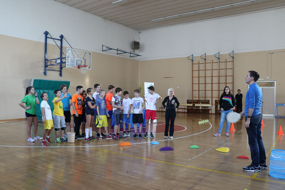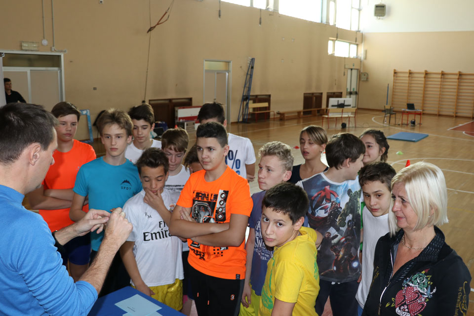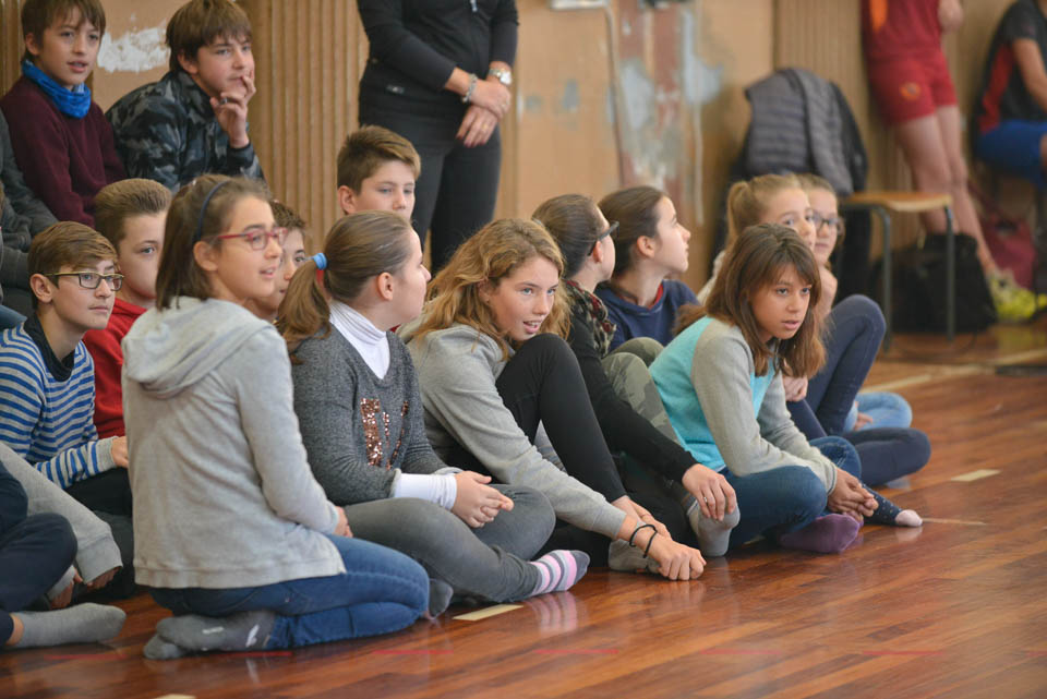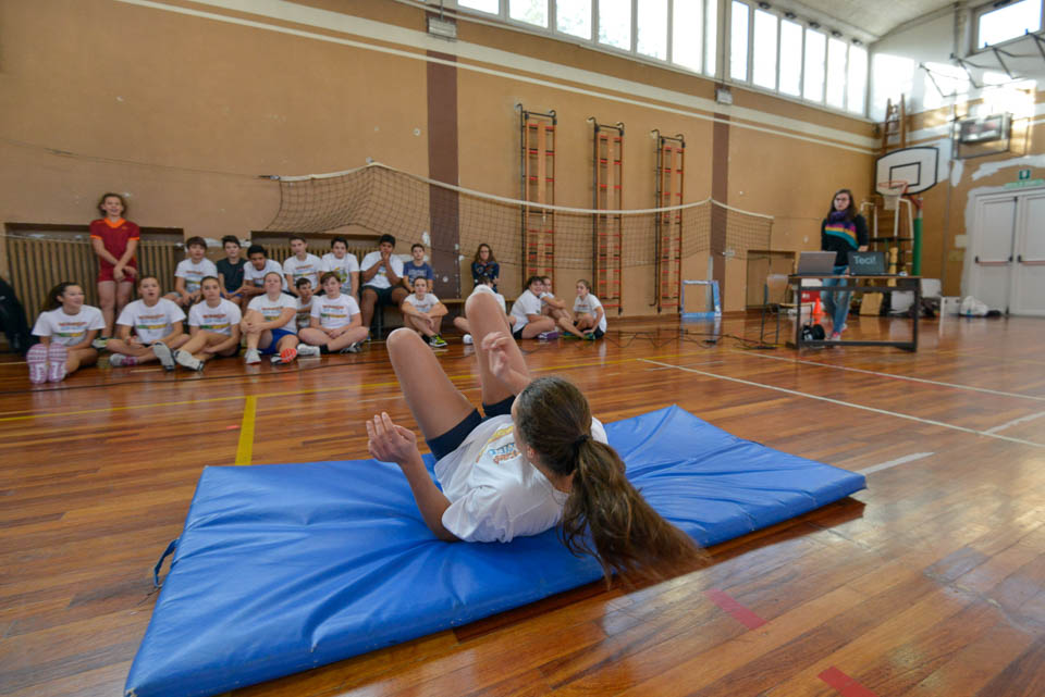 OPČINE -Nadaljuje se šolski Jezikovni poligon. Športno-jezikovna pobuda, ki jo prireja Združenje slovenskih športnih društev v Italiji v sodelovanju s SLORI-jem, je tokrat prispela na Nižjo srednjo šolo Srečka Kosovela na Opčinah in Cirila in Metoda iz Katinare.