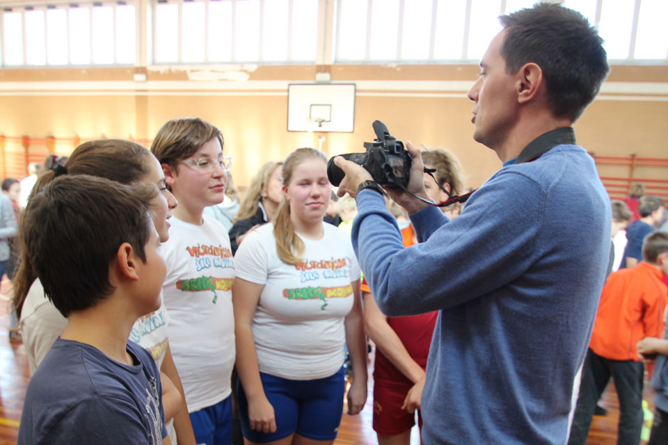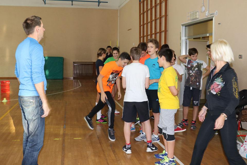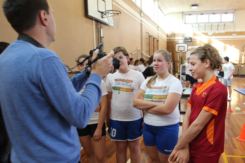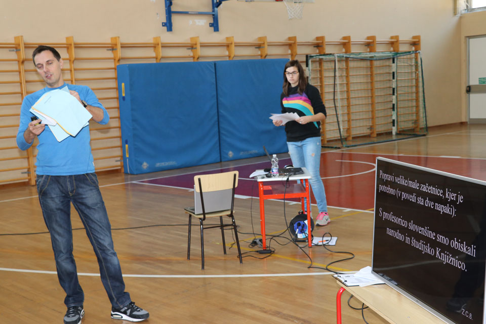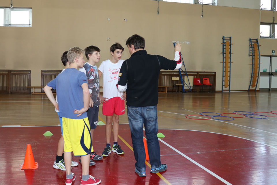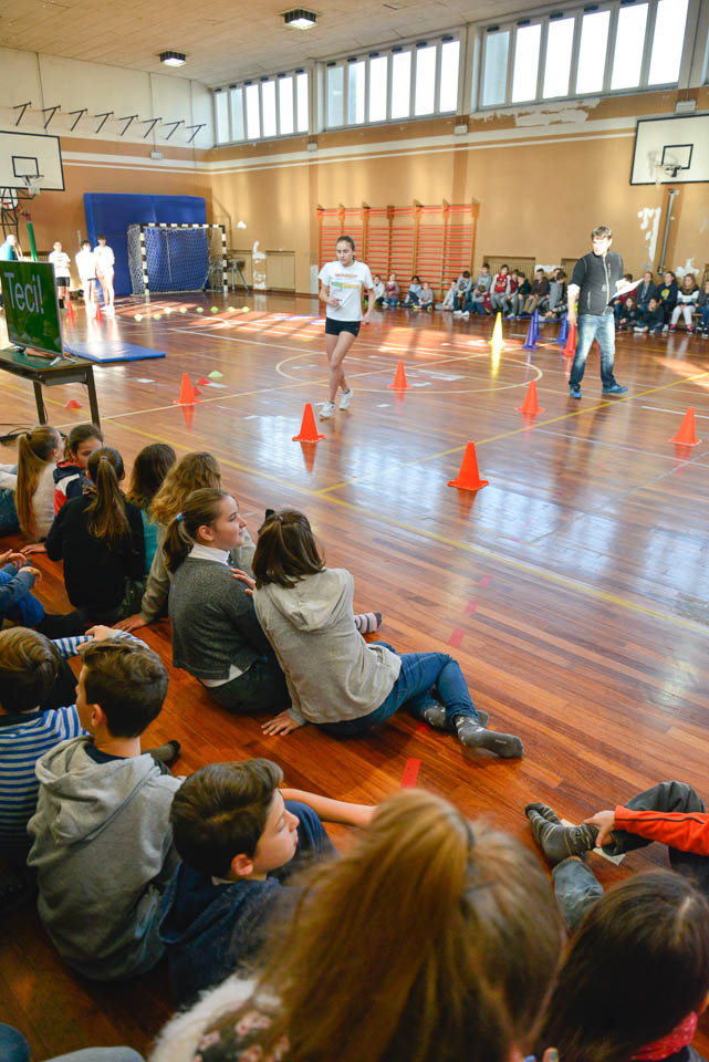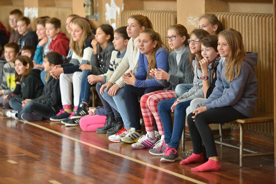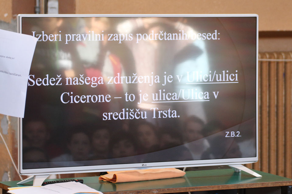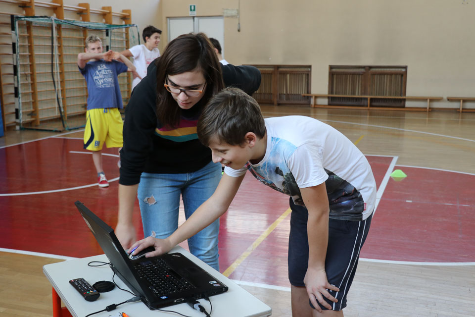 OPČINE -Nadaljuje se šolski Jezikovni poligon. Športno-jezikovna pobuda, ki jo prireja Združenje slovenskih športnih društev v Italiji v sodelovanju s SLORI-jem, je tokrat prispela na Nižjo srednjo šolo Srečka Kosovela na Opčinah in Cirila in Metoda iz Katinare.