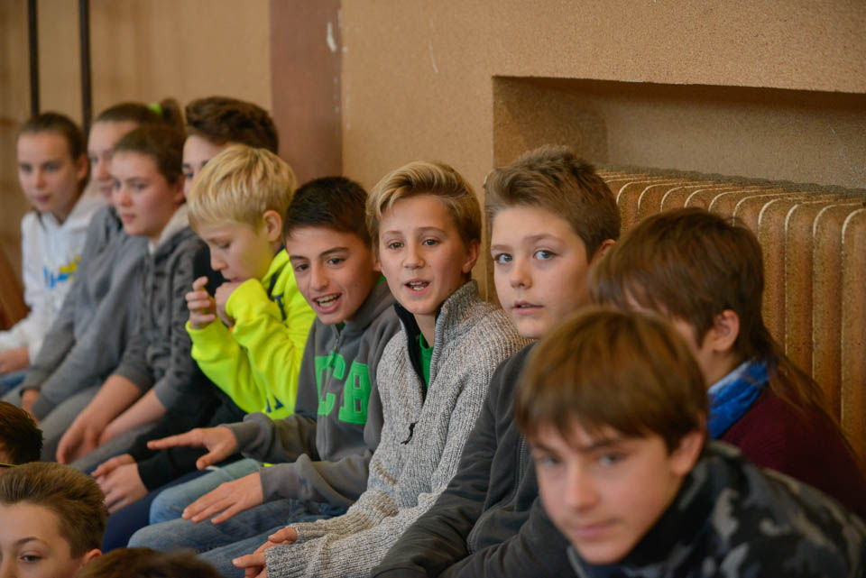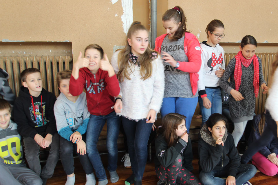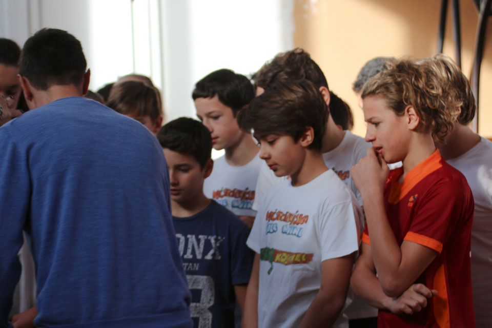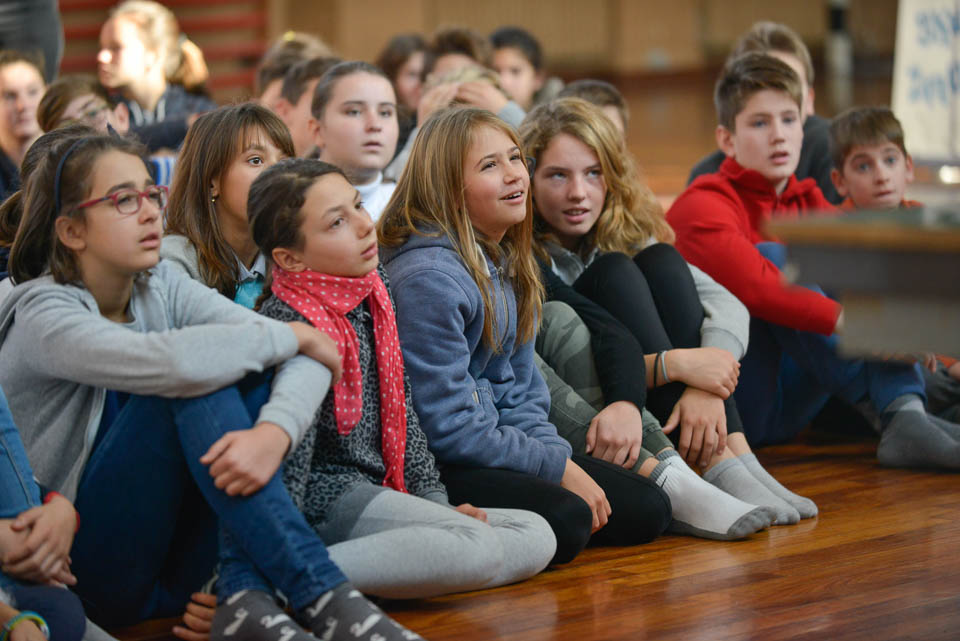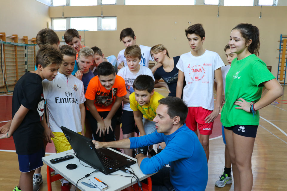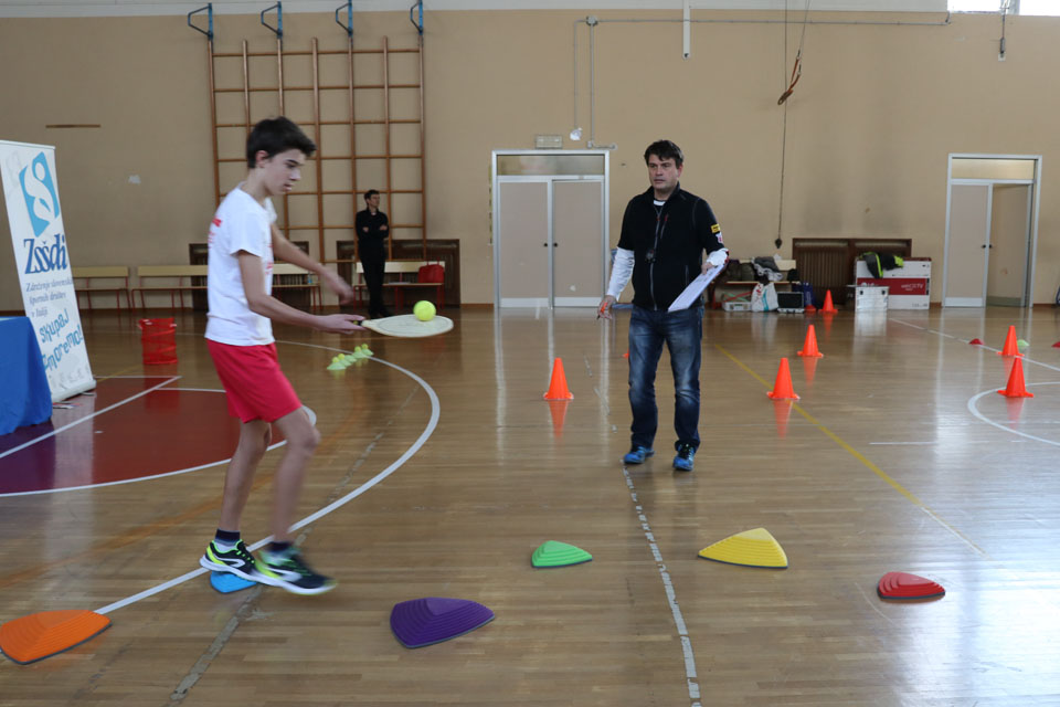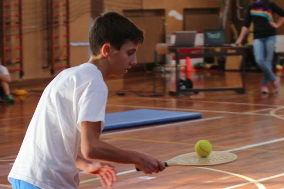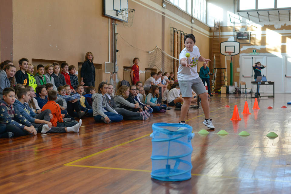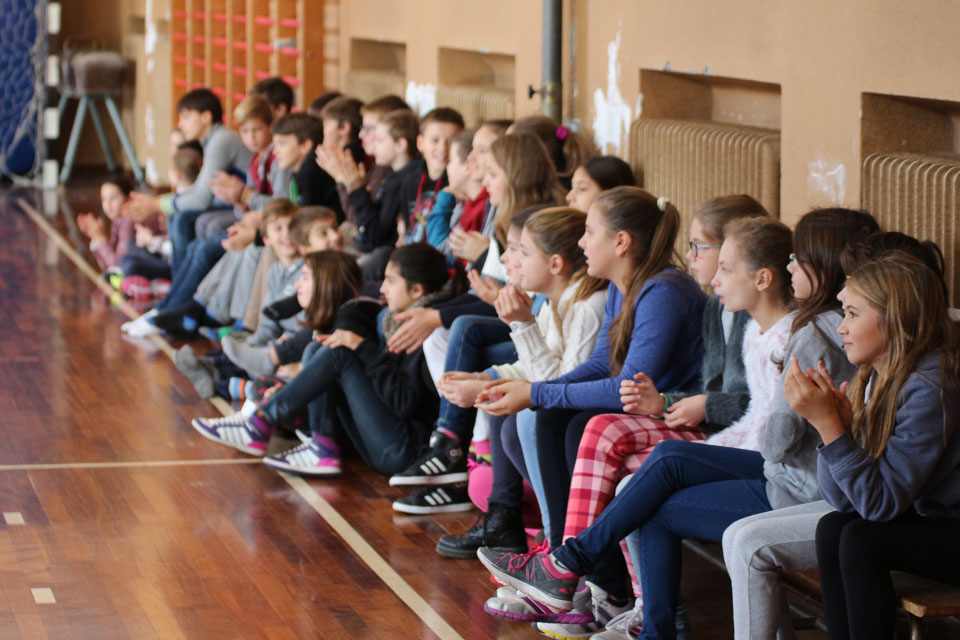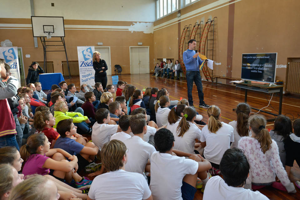 OPČINE -Nadaljuje se šolski Jezikovni poligon. Športno-jezikovna pobuda, ki jo prireja Združenje slovenskih športnih društev v Italiji v sodelovanju s SLORI-jem, je tokrat prispela na Nižjo srednjo šolo Srečka Kosovela na Opčinah in Cirila in Metoda iz Katinare.